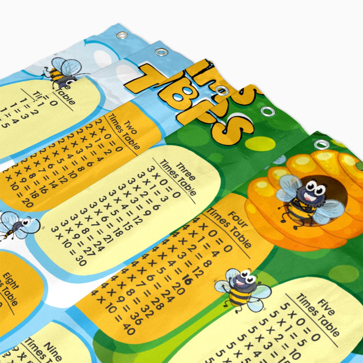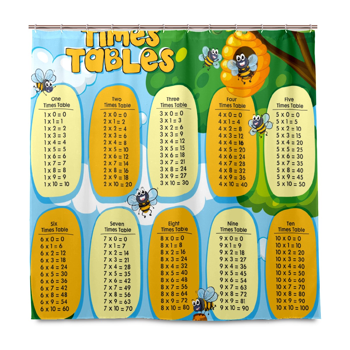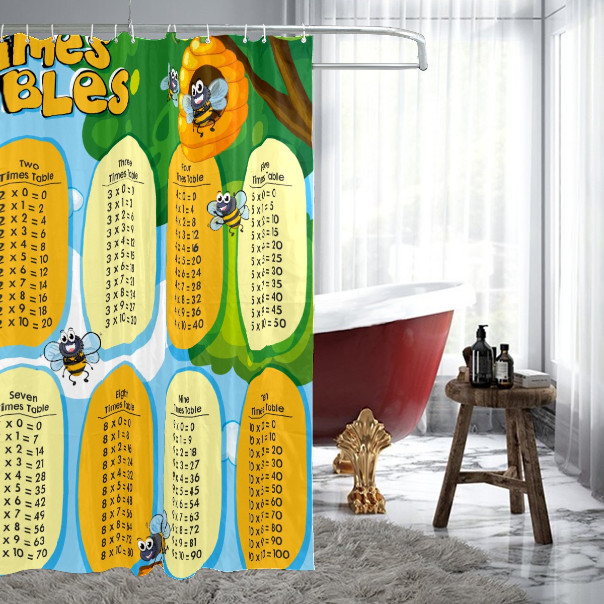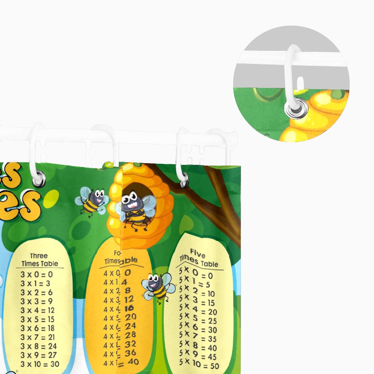Shower Curtains for Bathroom Educational Bee Multiplication Times Table Waterproof Polyester Fabric 60 x 72 inches Decor Bathroom Curtains for Girls Boys with 12 Hooks