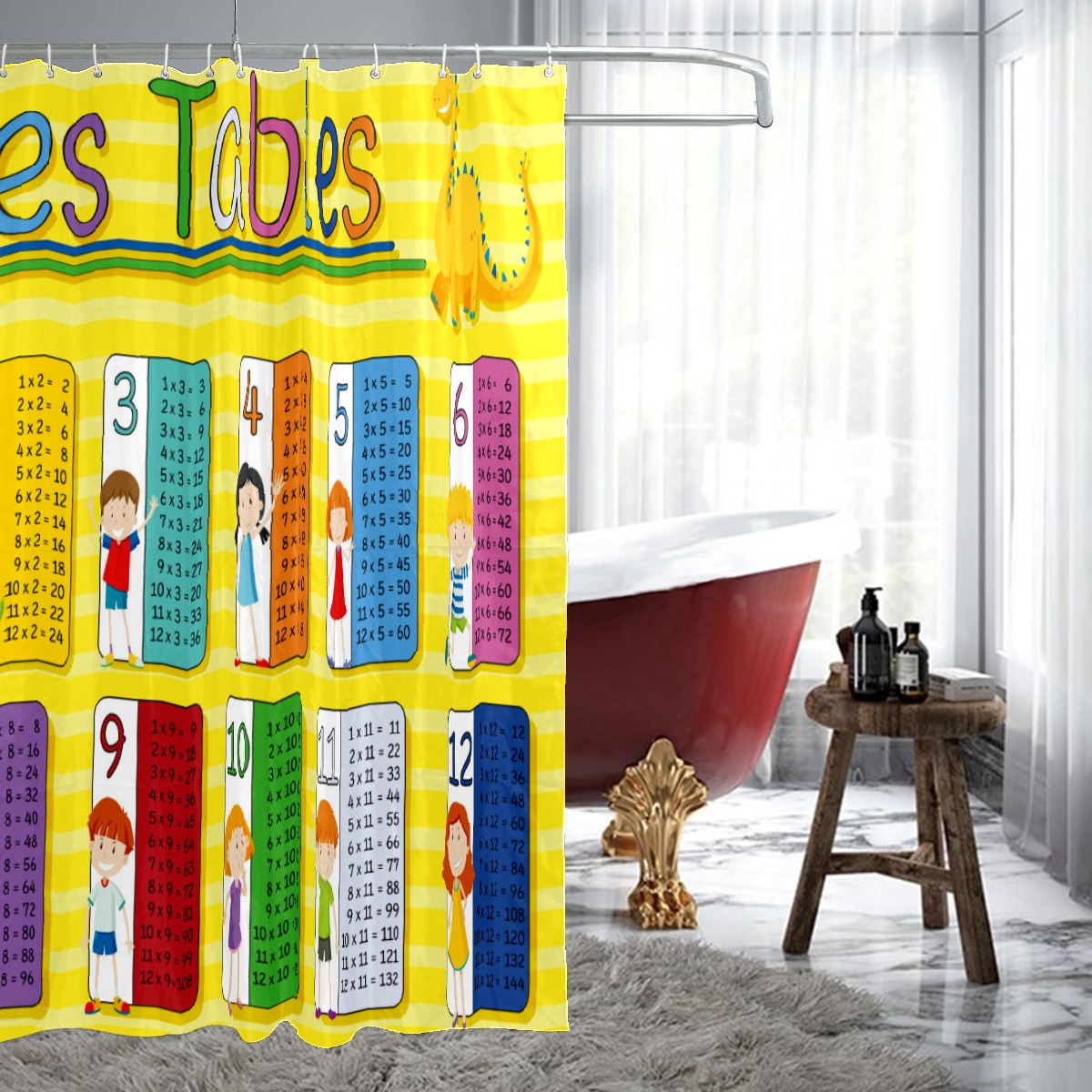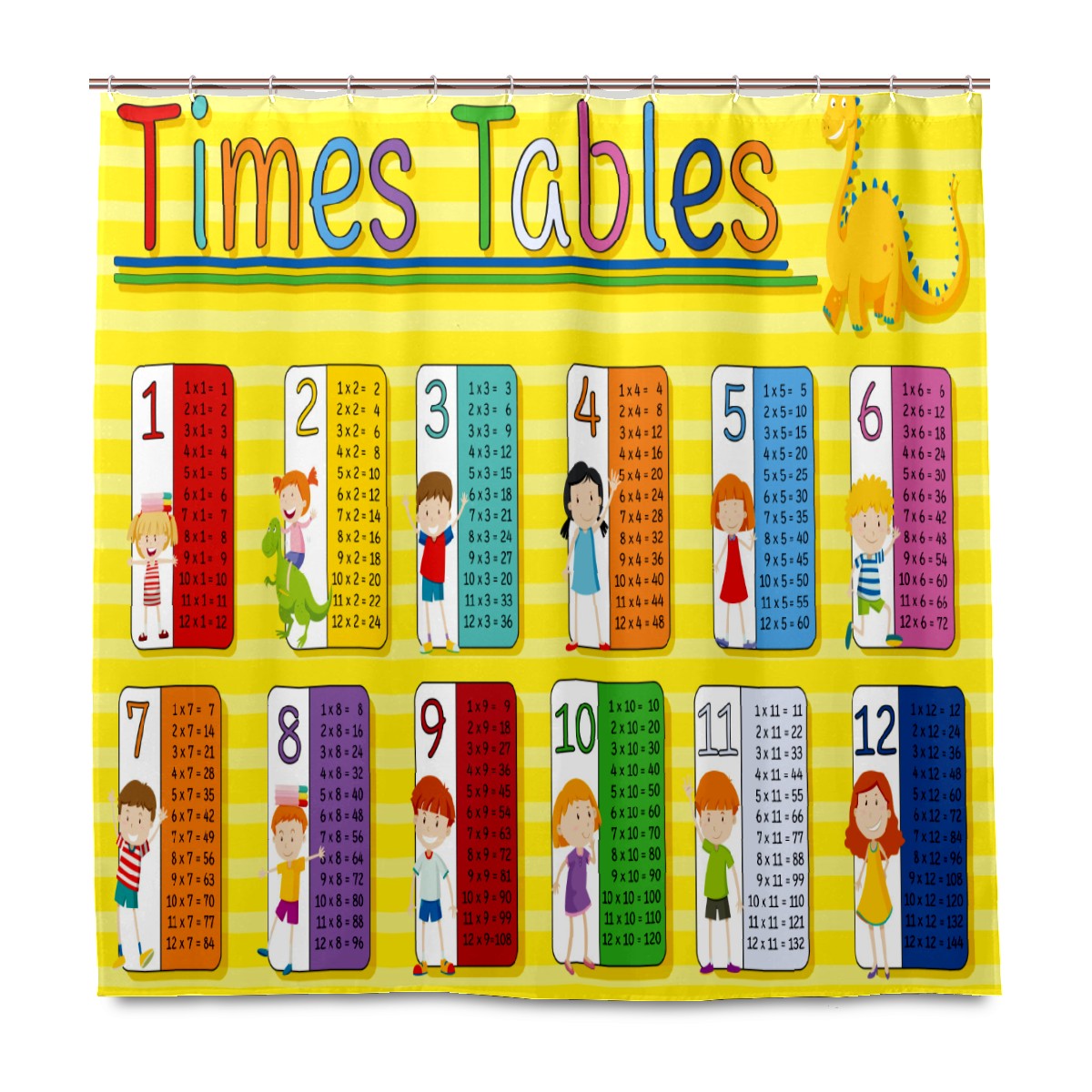 Shower Curtains for Bathroom Educational Multiplication Table Dinosaur Waterproof Polyester Fabric 60 x 72 inches Decor Bathroom Curtains for Girls Boys with 12 Hooks