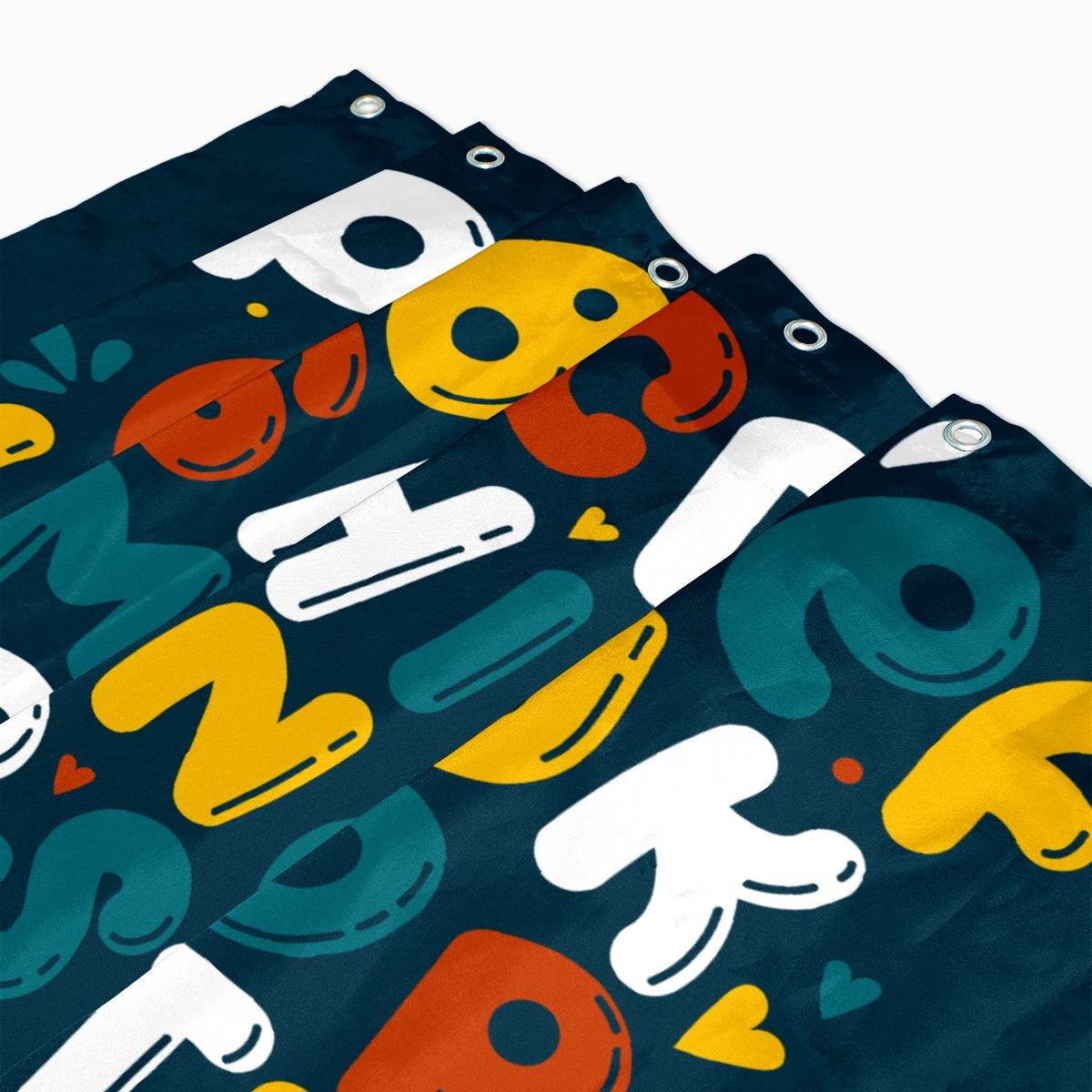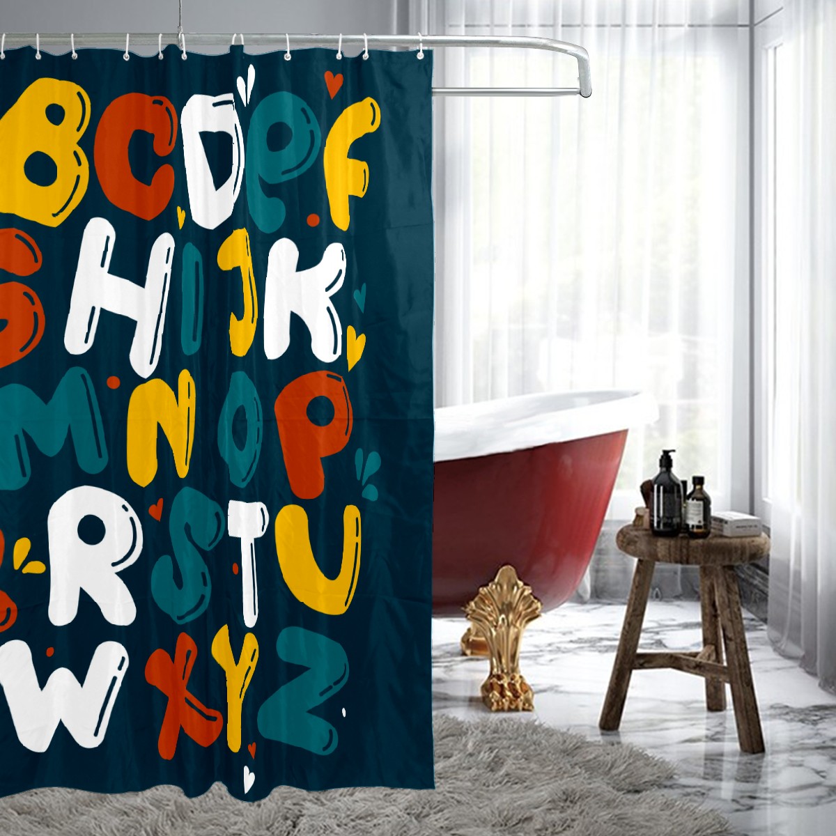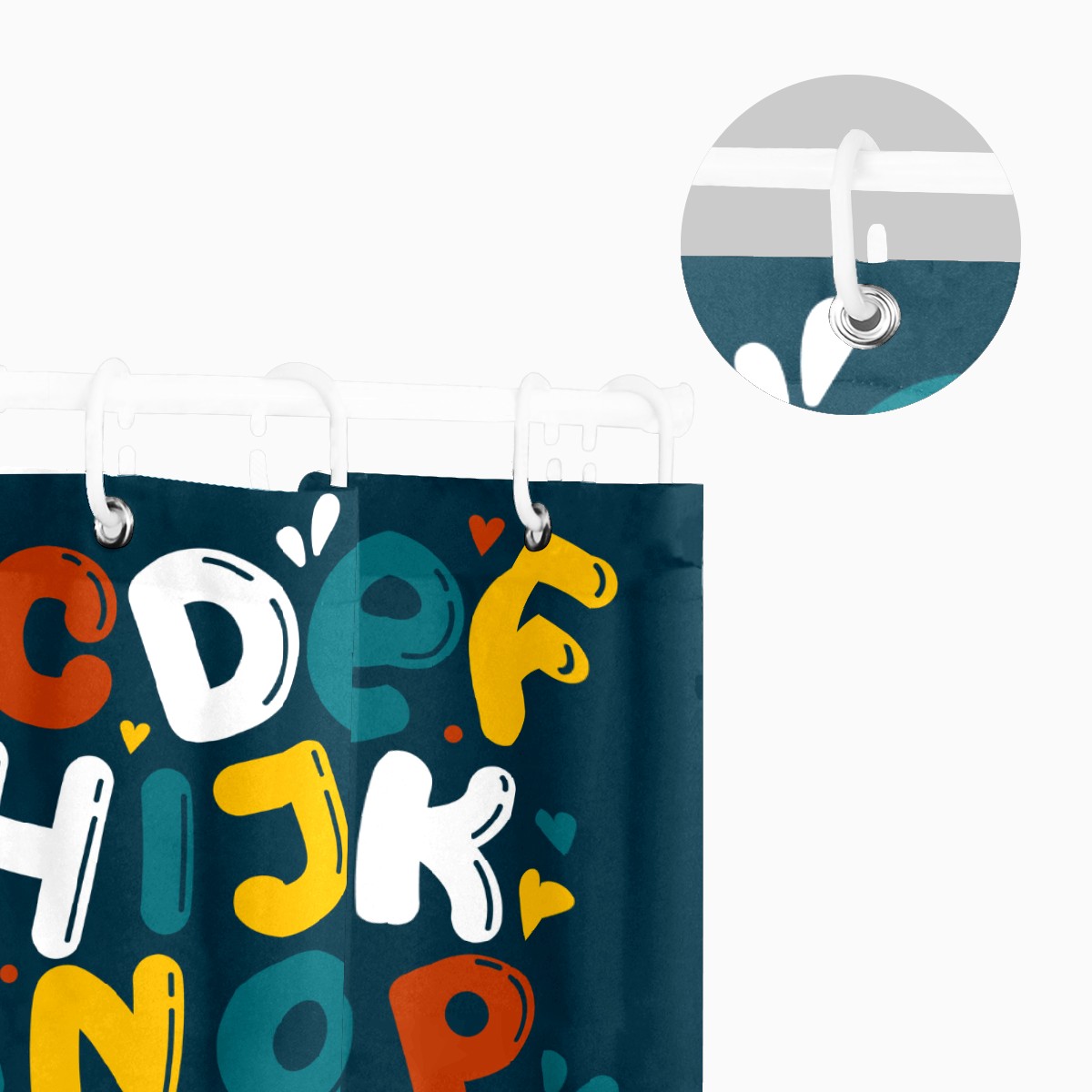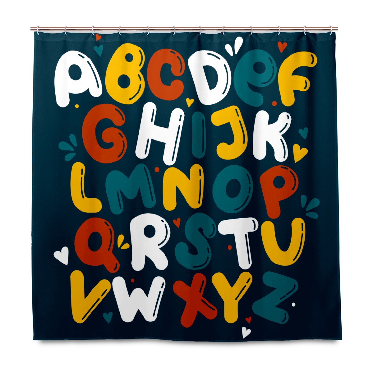 Shower Curtains for Bathroom Cartoon Kids Educational Alphabet Waterproof Polyester Fabric 60 x 72 inches Decor Bathroom Curtains for Girls Boys with 12 Hooks