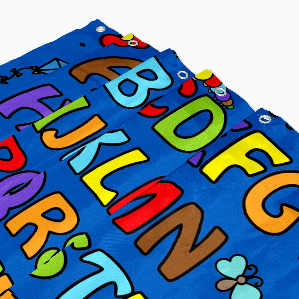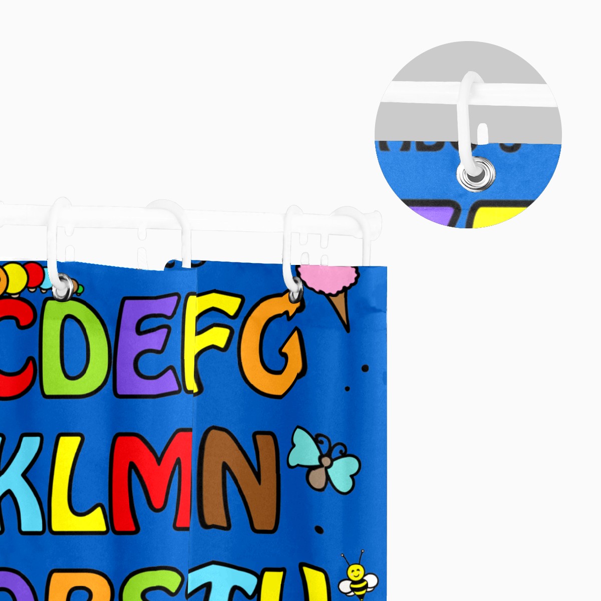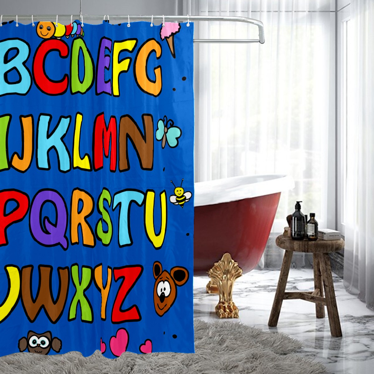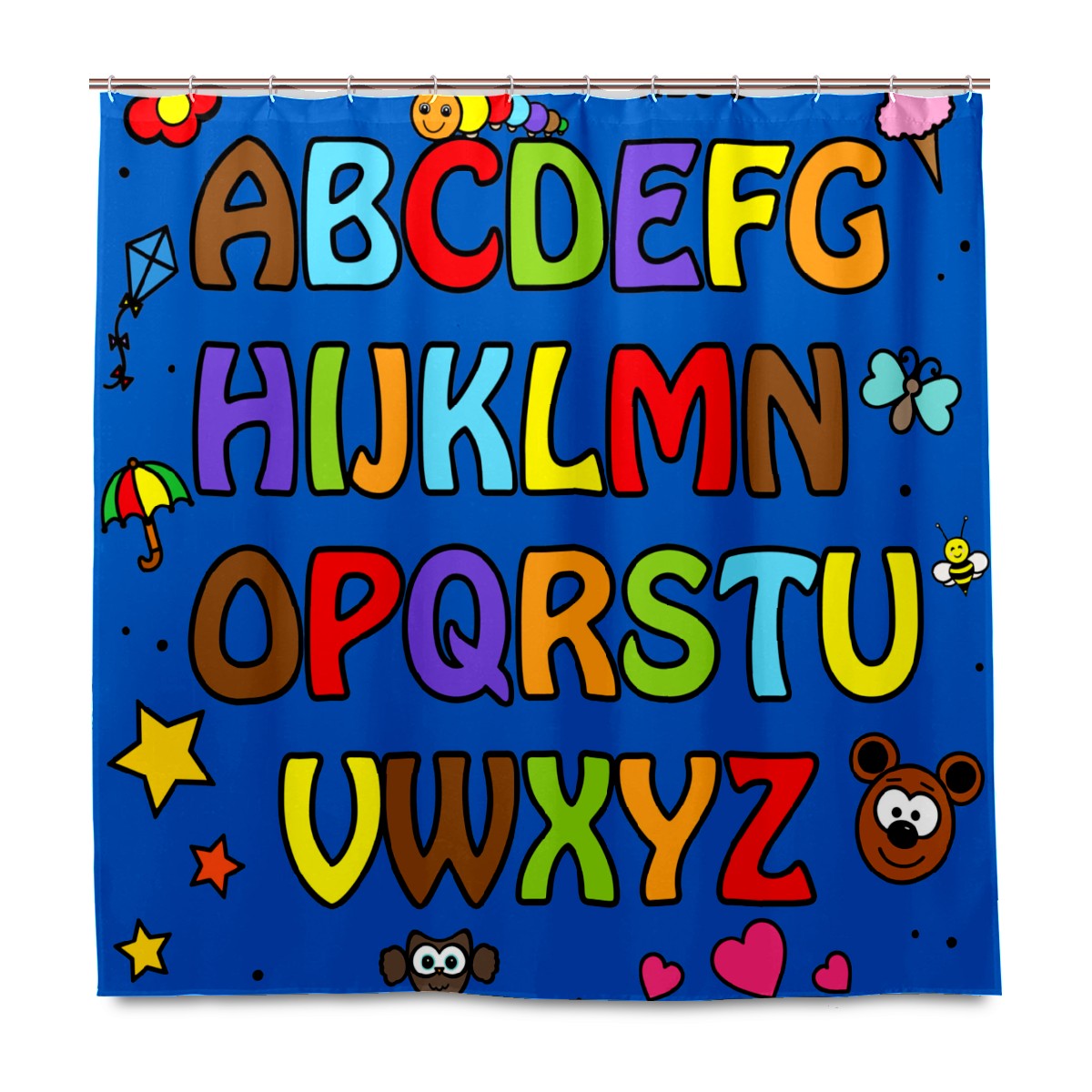 Shower Curtains for Bathroom Cartoon Blue Educational Alphabet Waterproof Polyester Fabric 60 x 72 inches Decor Bathroom Curtains for Girls Boys with 12 Hooks