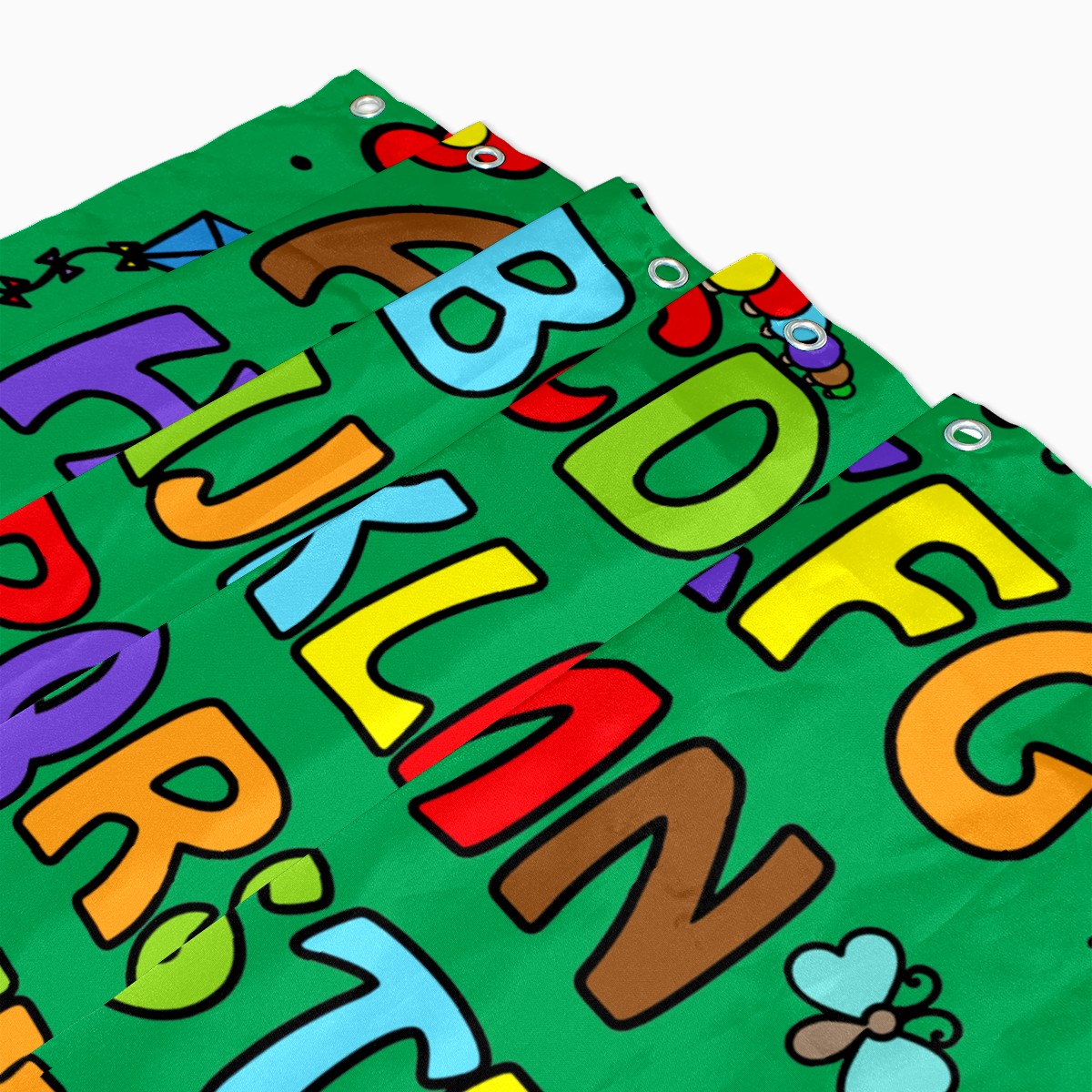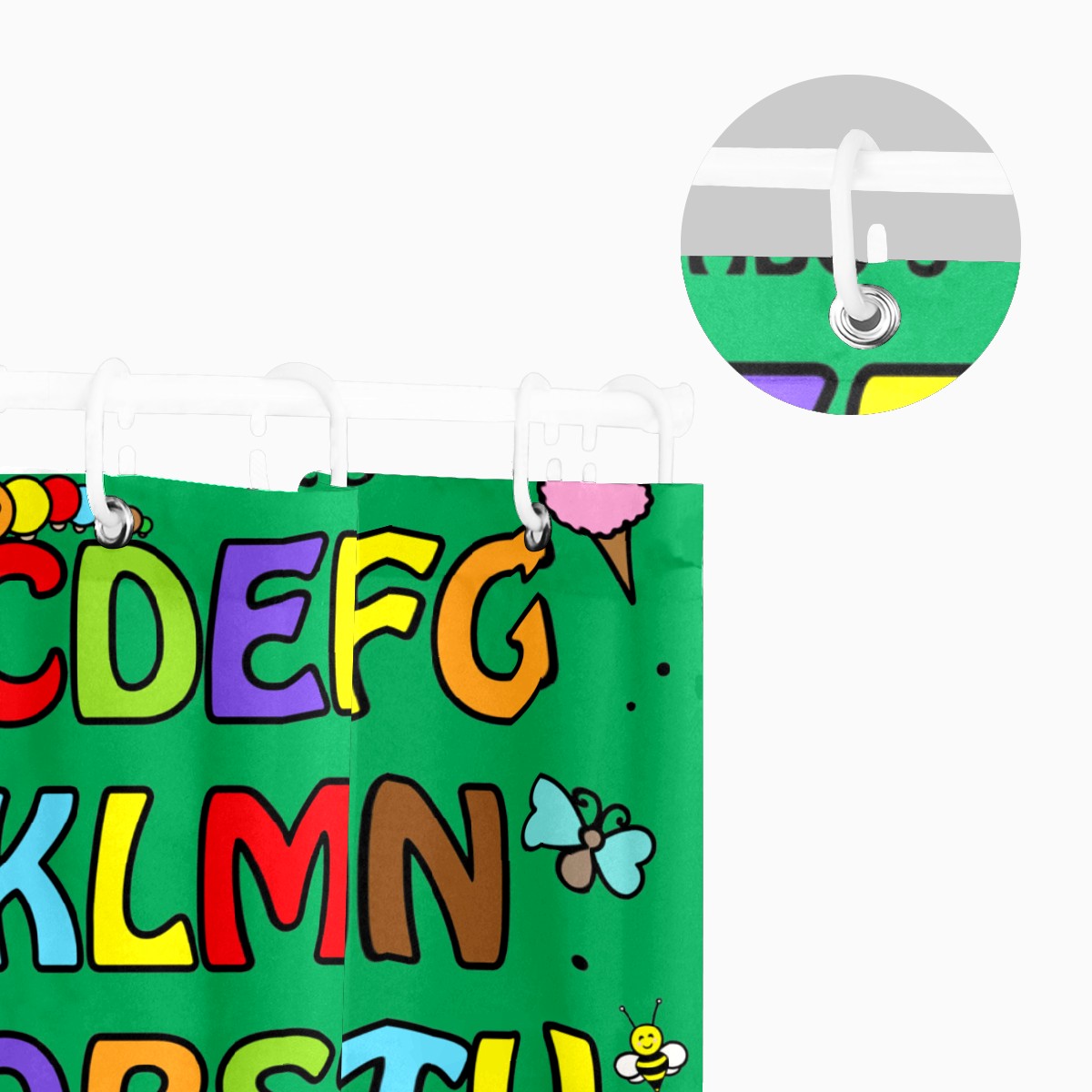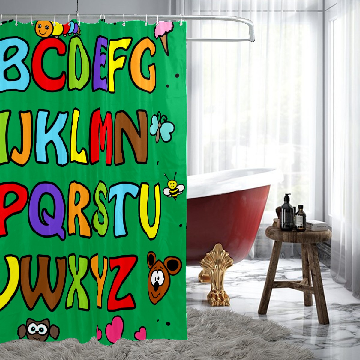 Shower Curtains for Bathroom Cartoon Green Educational Alphabet Waterproof Polyester Fabric 60 x 72 inches Decor Bathroom Curtains for Girls Boys with 12 Hooks