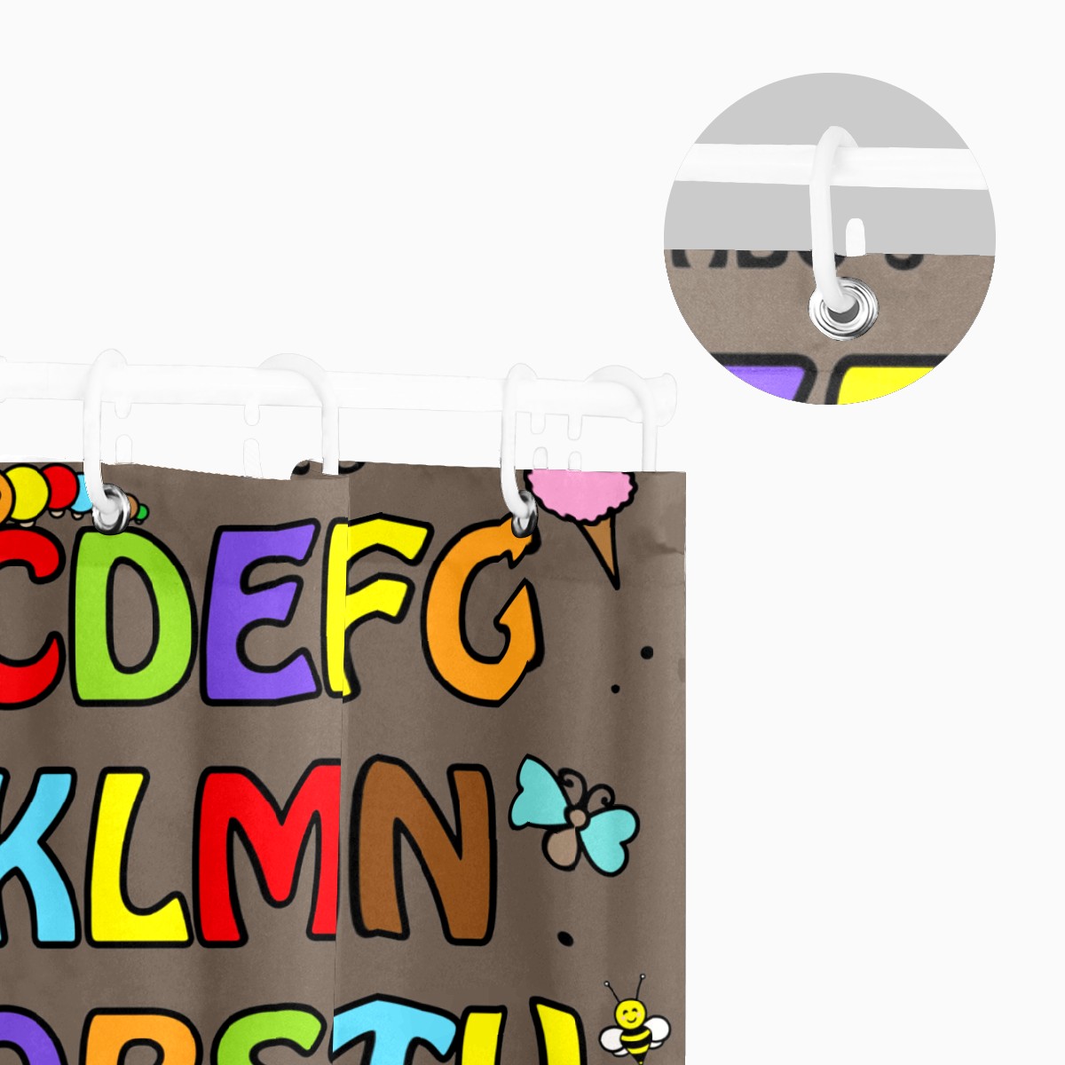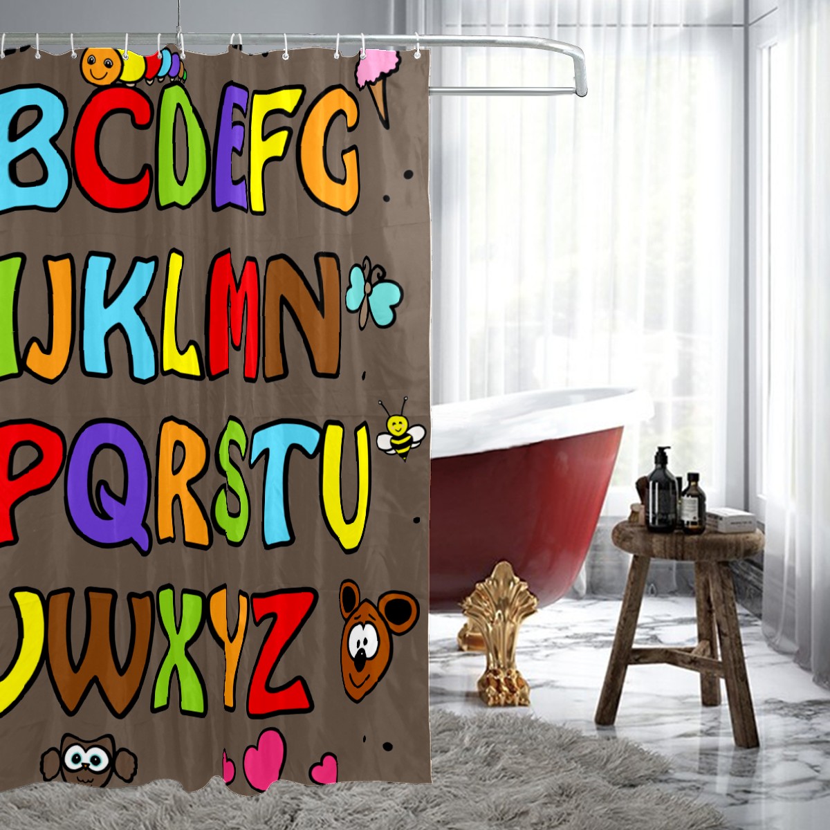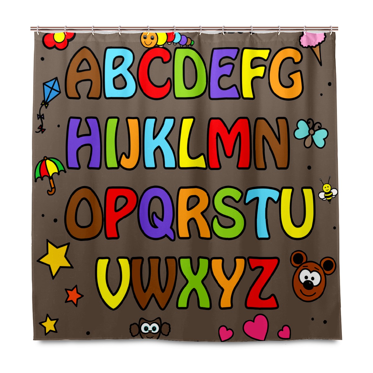 Shower Curtains for Bathroom Cartoon Educational Alphabet Waterproof Polyester Fabric 60 x 72 inches Decor Bathroom Curtains for Girls Boys with 12 Hooks