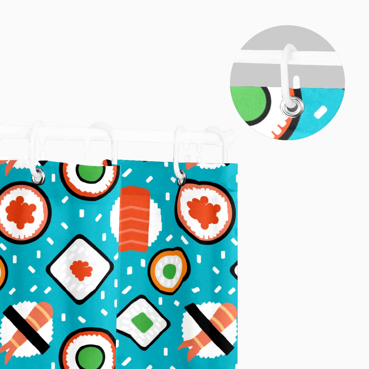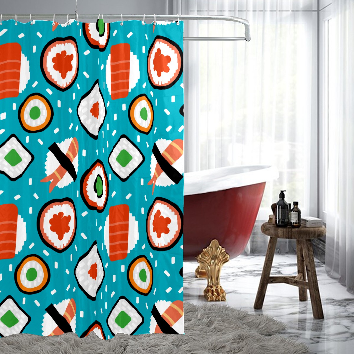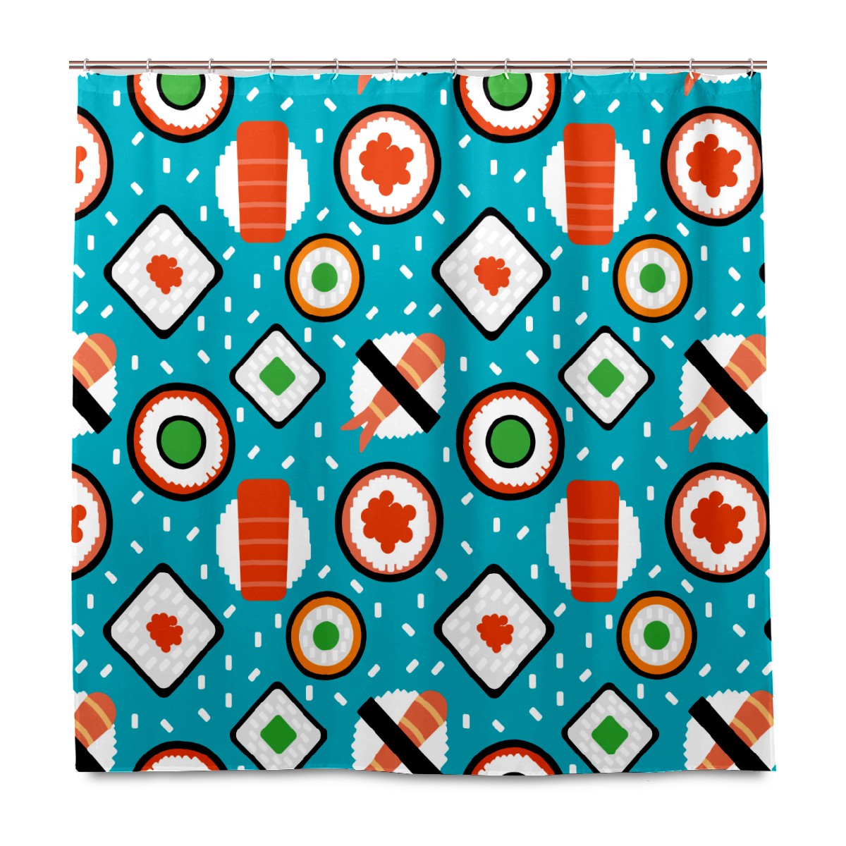 Shower Curtains for Bathroom Yummy Japanese Sushi Food Pattern Waterproof Polyester Fabric 60 x 72 inches Decor Bathroom Curtains for Girls Boys with 12 Hooks