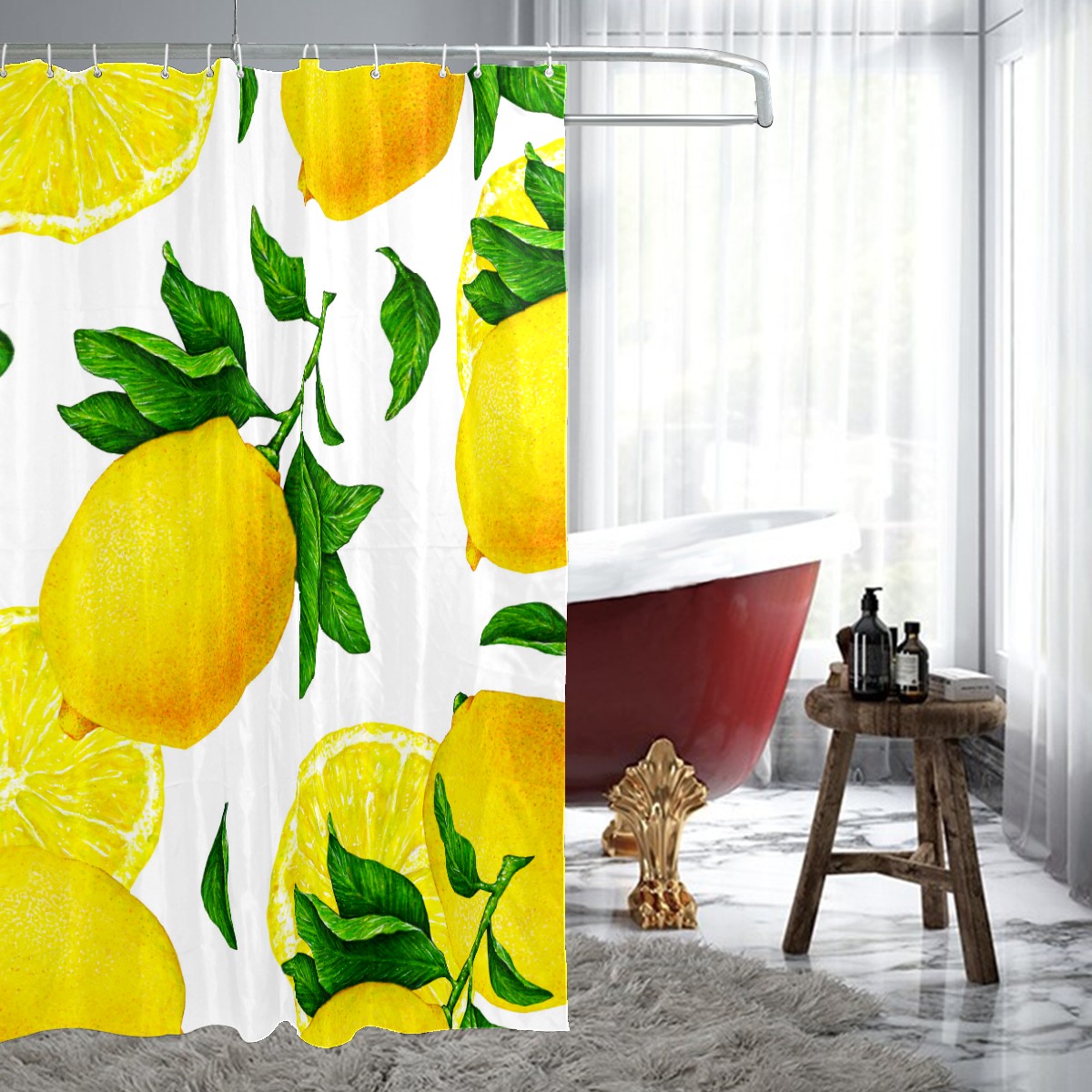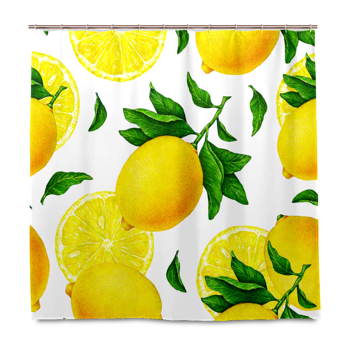 Shower Curtains for Bathroom Yellow Lemon Pattern Waterproof Polyester Fabric 60 x 72 inches Decor Bathroom Curtains for Girls Boys with 12 Hooks