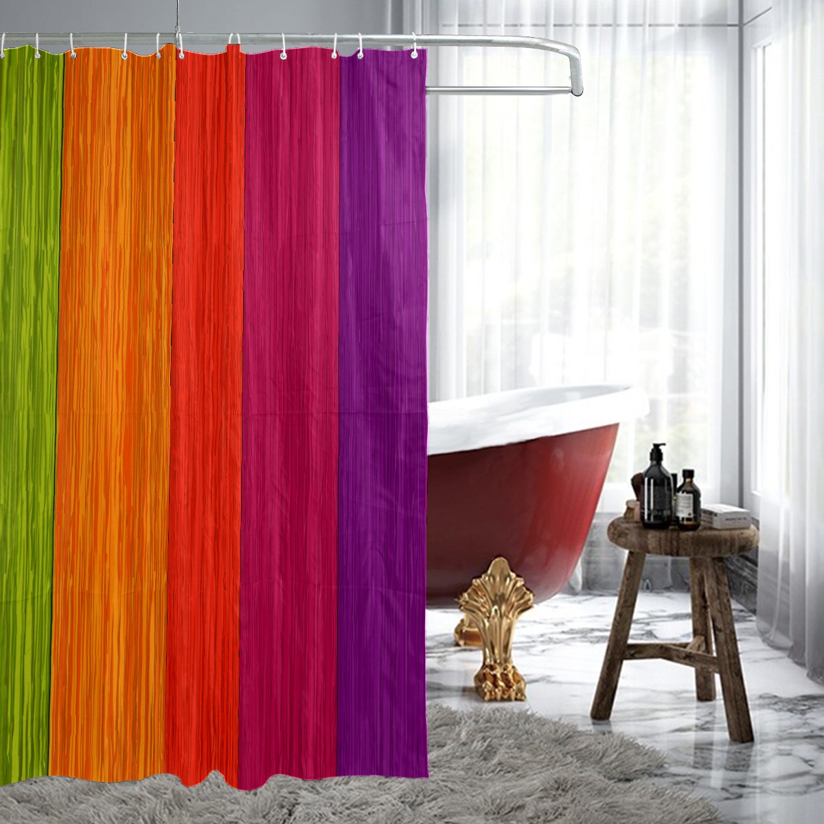 Shower Curtains for Bathroom Vintage Retro Colorful Wood Pattern Waterproof Polyester Fabric 60 x 72 inches Decor Bathroom Curtains for Girls Boys with 12 Hooks
