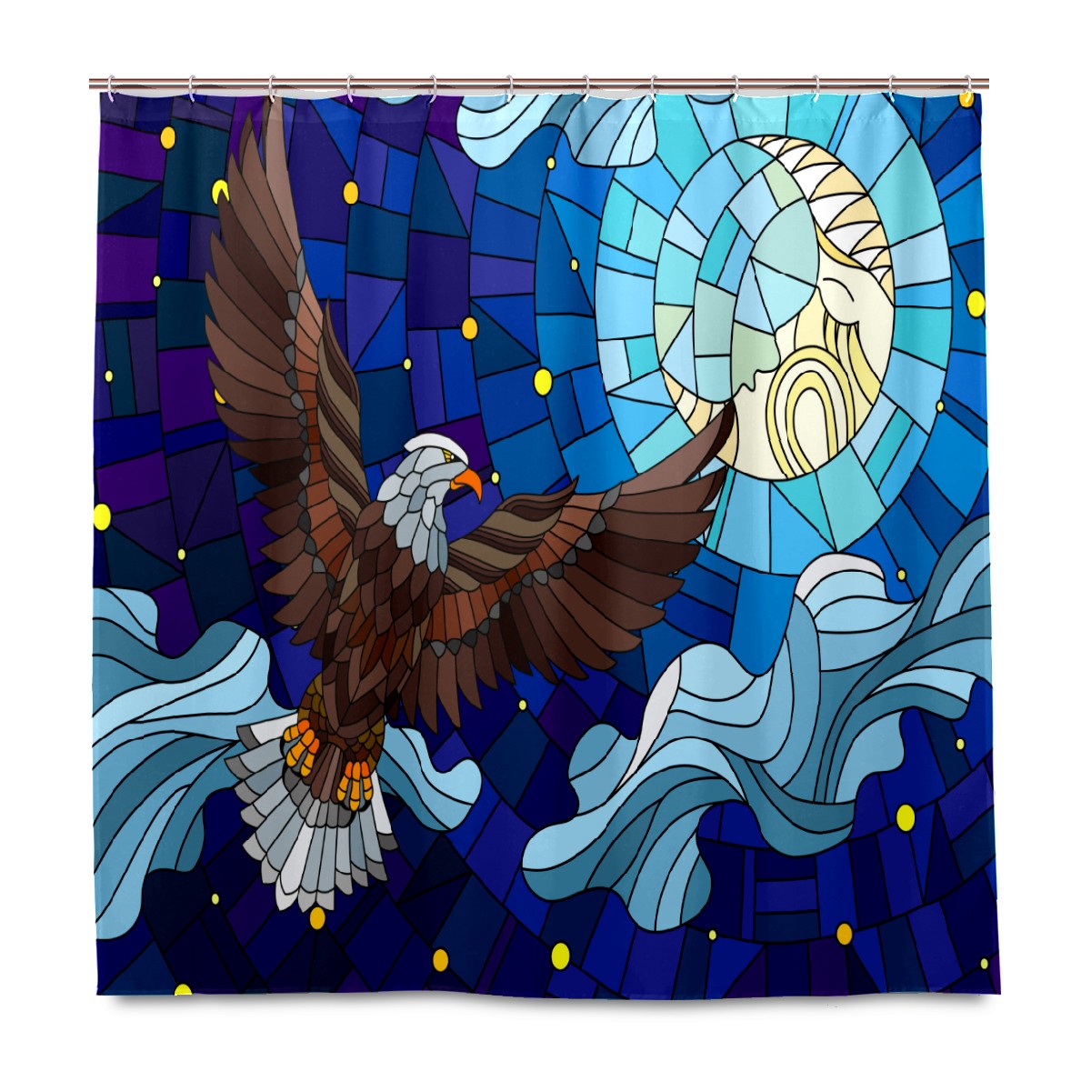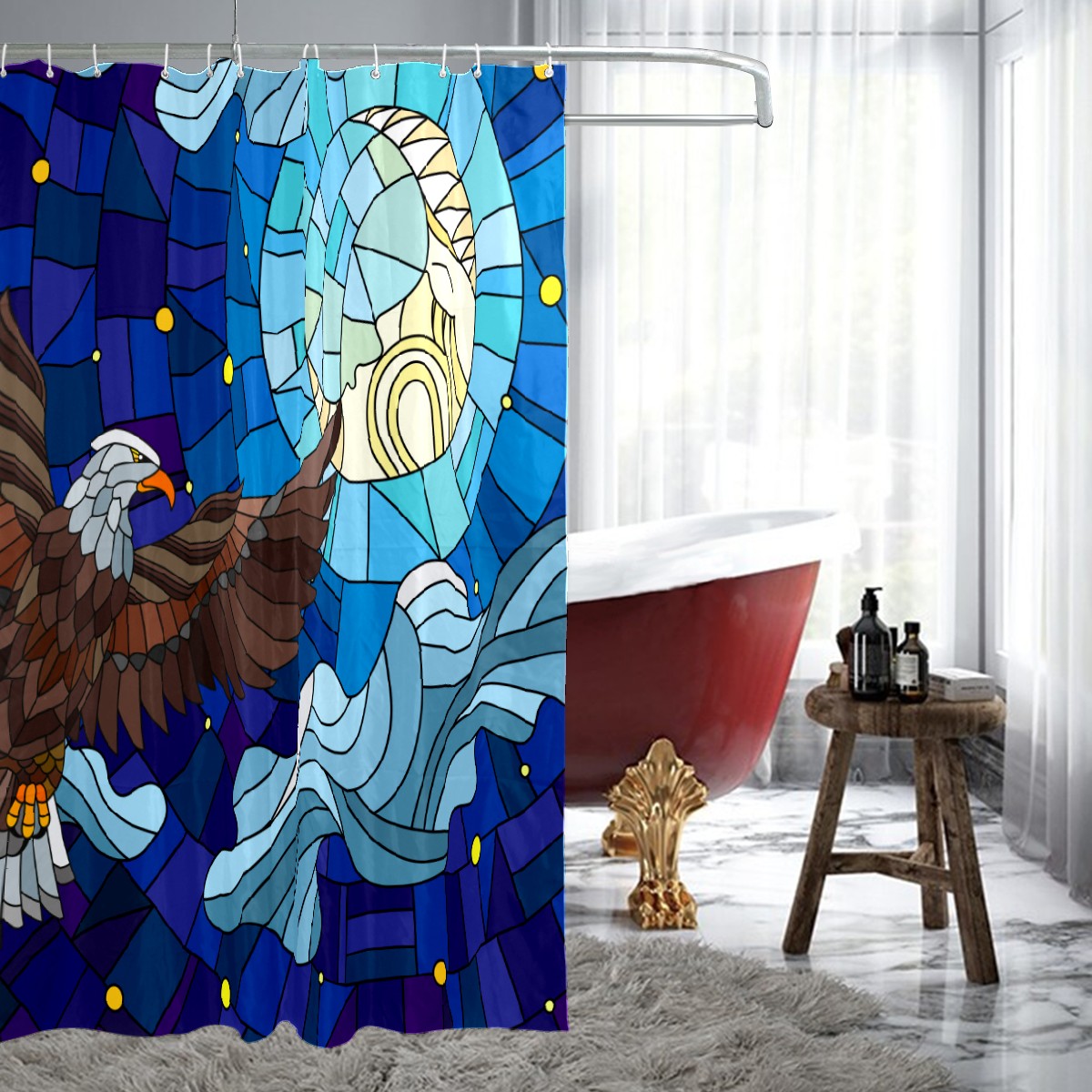Shower Curtains for Bathroom Vintage Eagle Stained Glass Waterproof Polyester Fabric 60 x 72 inches Decor Bathroom Curtains for Girls Boys with 12 Hooks