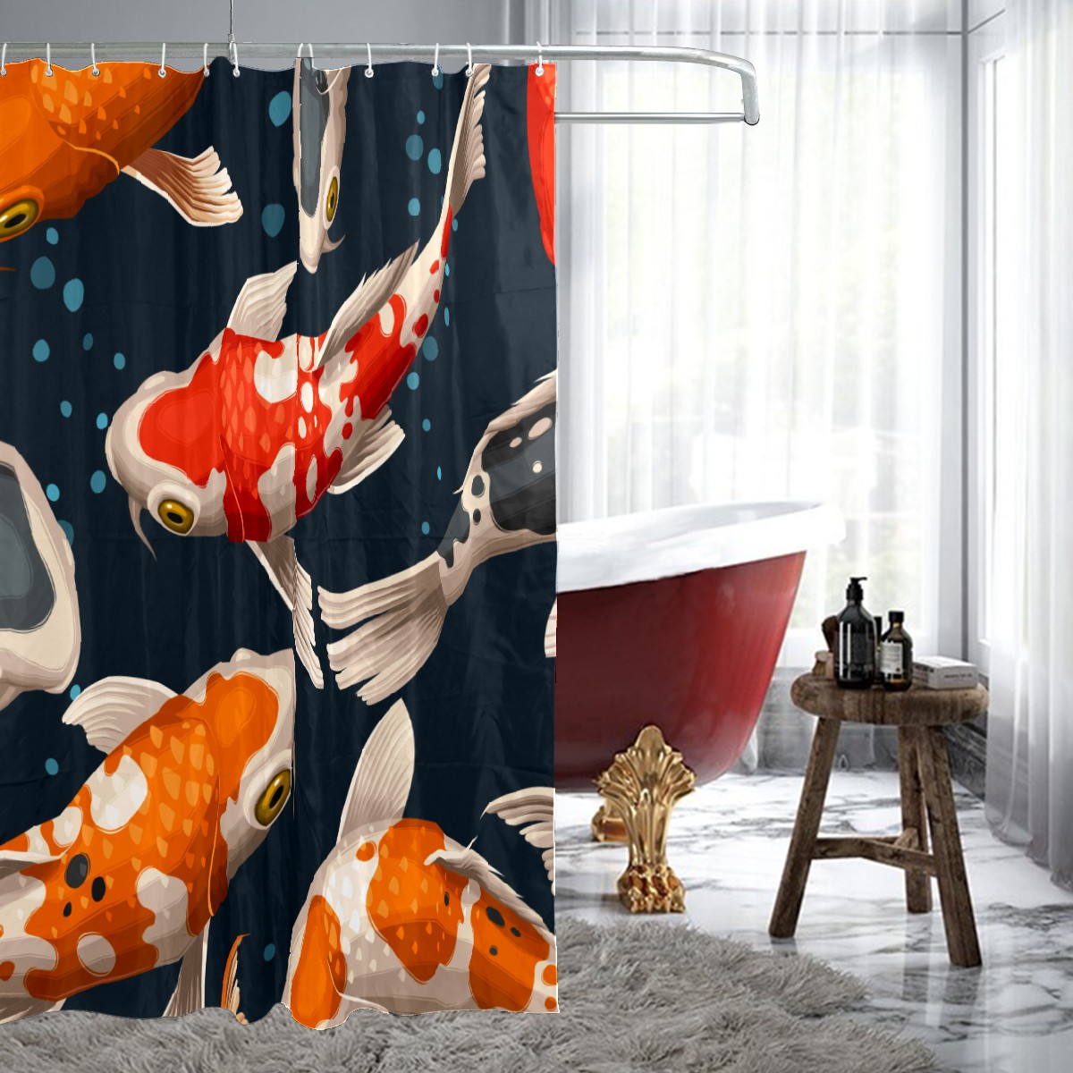 Shower Curtains for Bathroom Sea Japanese Koi Fish Pattern Waterproof Polyester Fabric 60 x 72 inches Decor Bathroom Curtains for Girls Boys with 12 Hooks