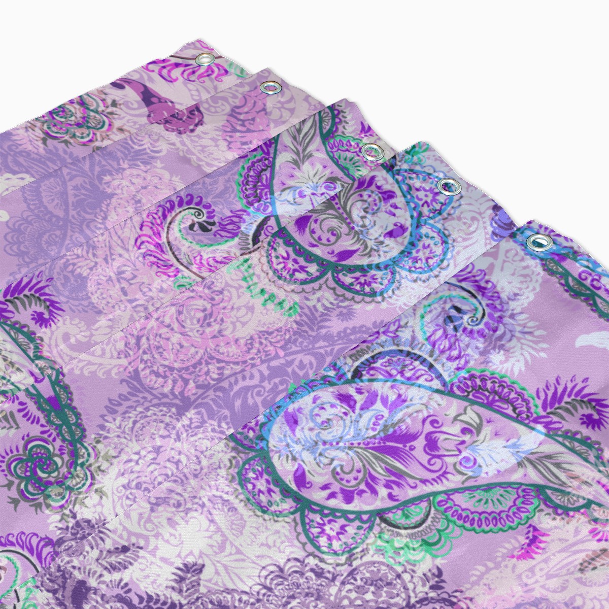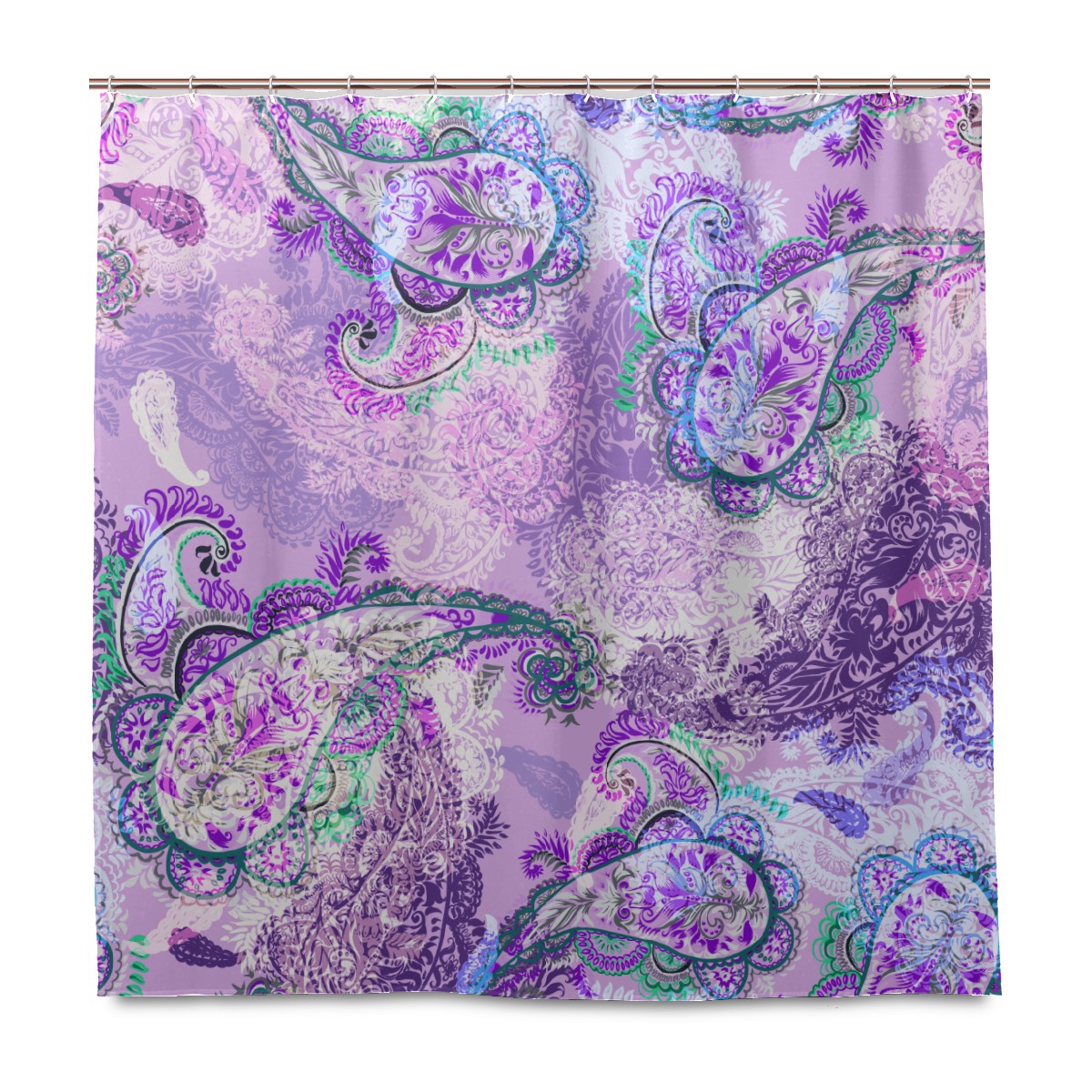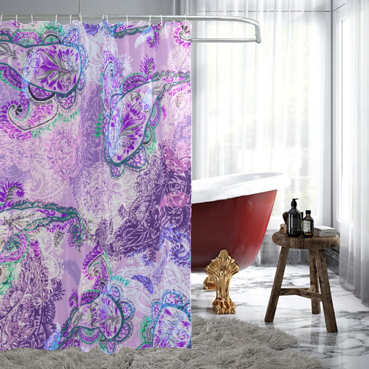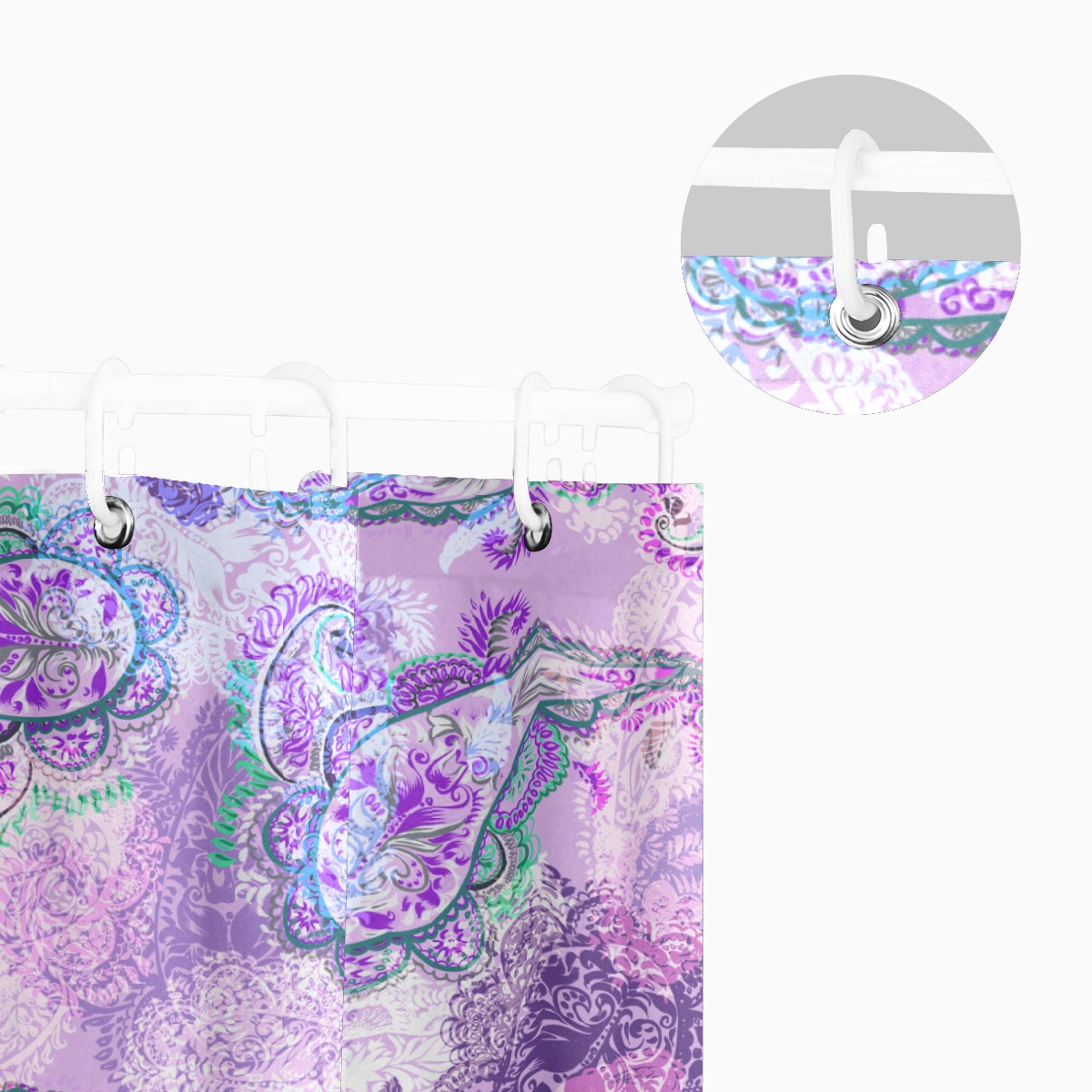 Shower Curtains for Bathroom Retro Paisley Purple Floral Waterproof Polyester Fabric 60 x 72 inches Decor Bathroom Curtains for Girls Boys with 12 Hooks