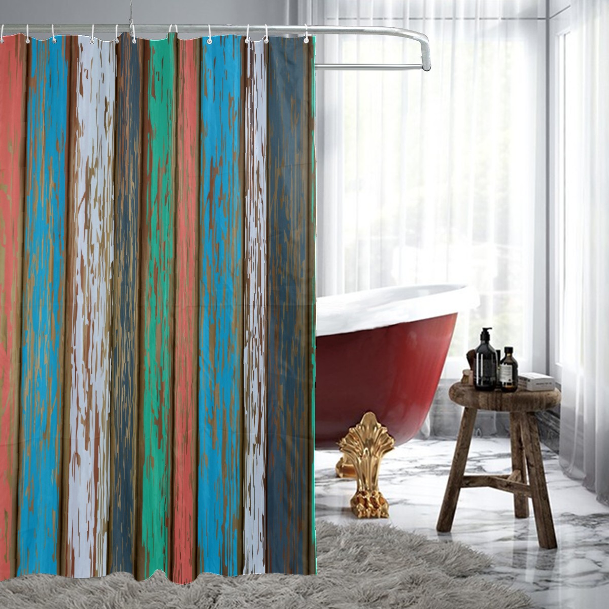 Shower Curtains for Bathroom Retro Colorful Wood Pattern Waterproof Polyester Fabric 60 x 72 inches Decor Bathroom Curtains for Girls Boys with 12 Hooks