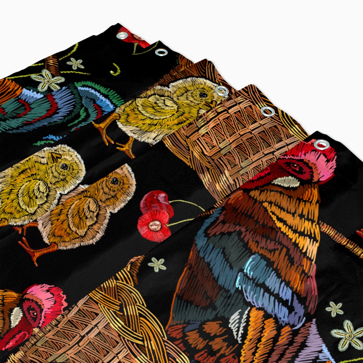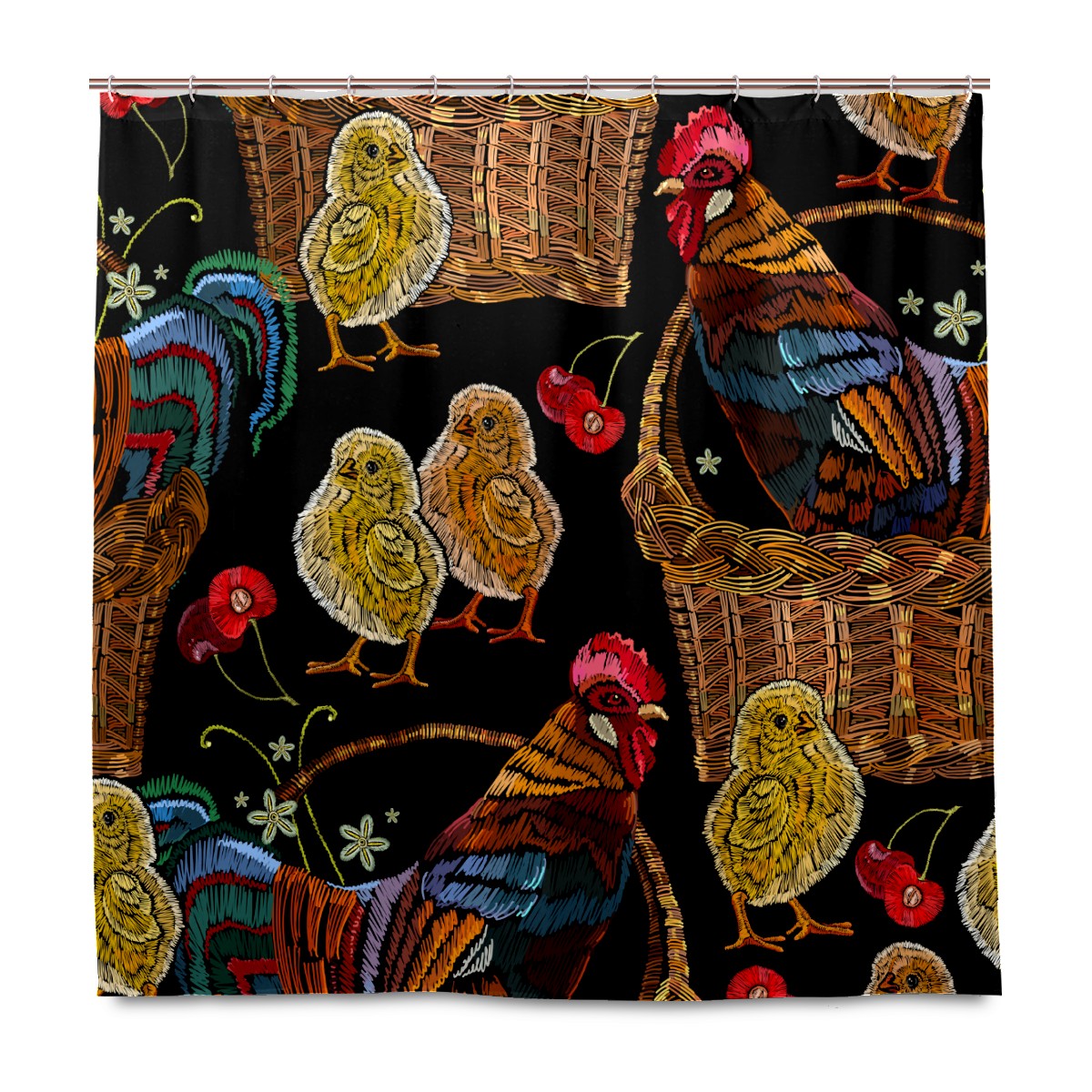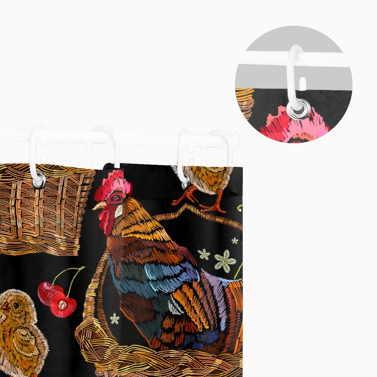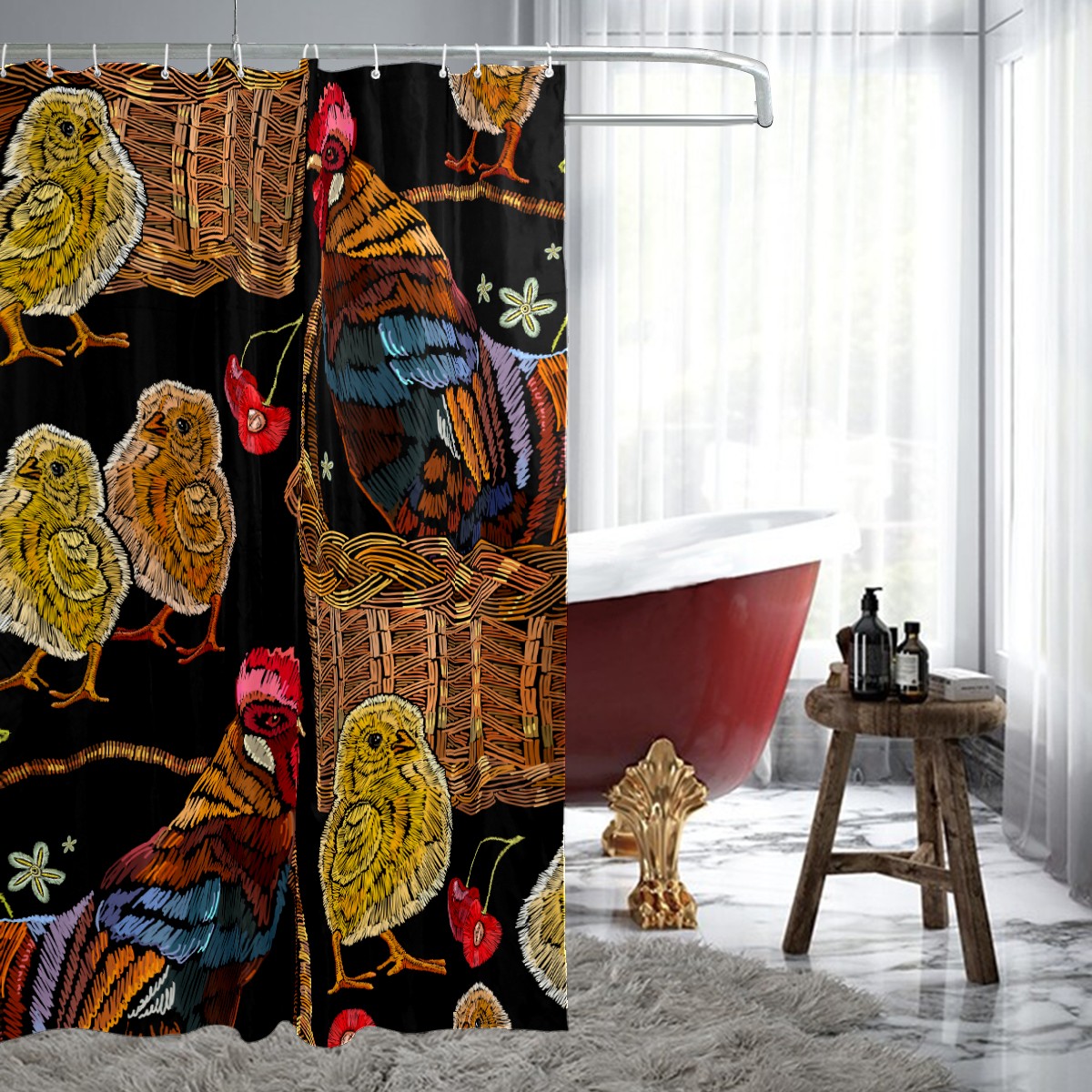 Shower Curtains for Bathroom Retro Colorful Rooster Chicken Floral Pattern Waterproof Polyester Fabric 60 x 72 inches Decor Bathroom Curtains for Girls Boys with 12 Hooks