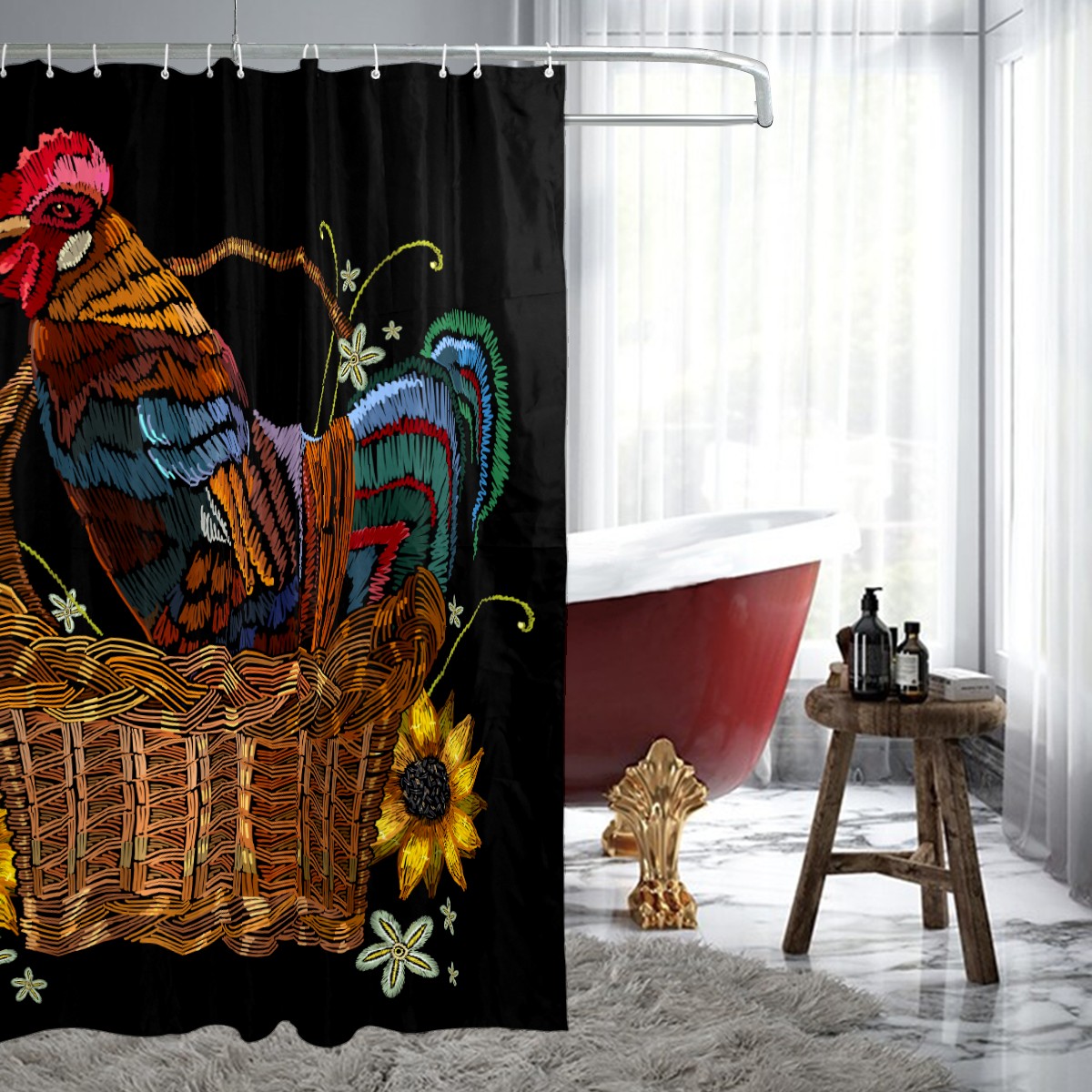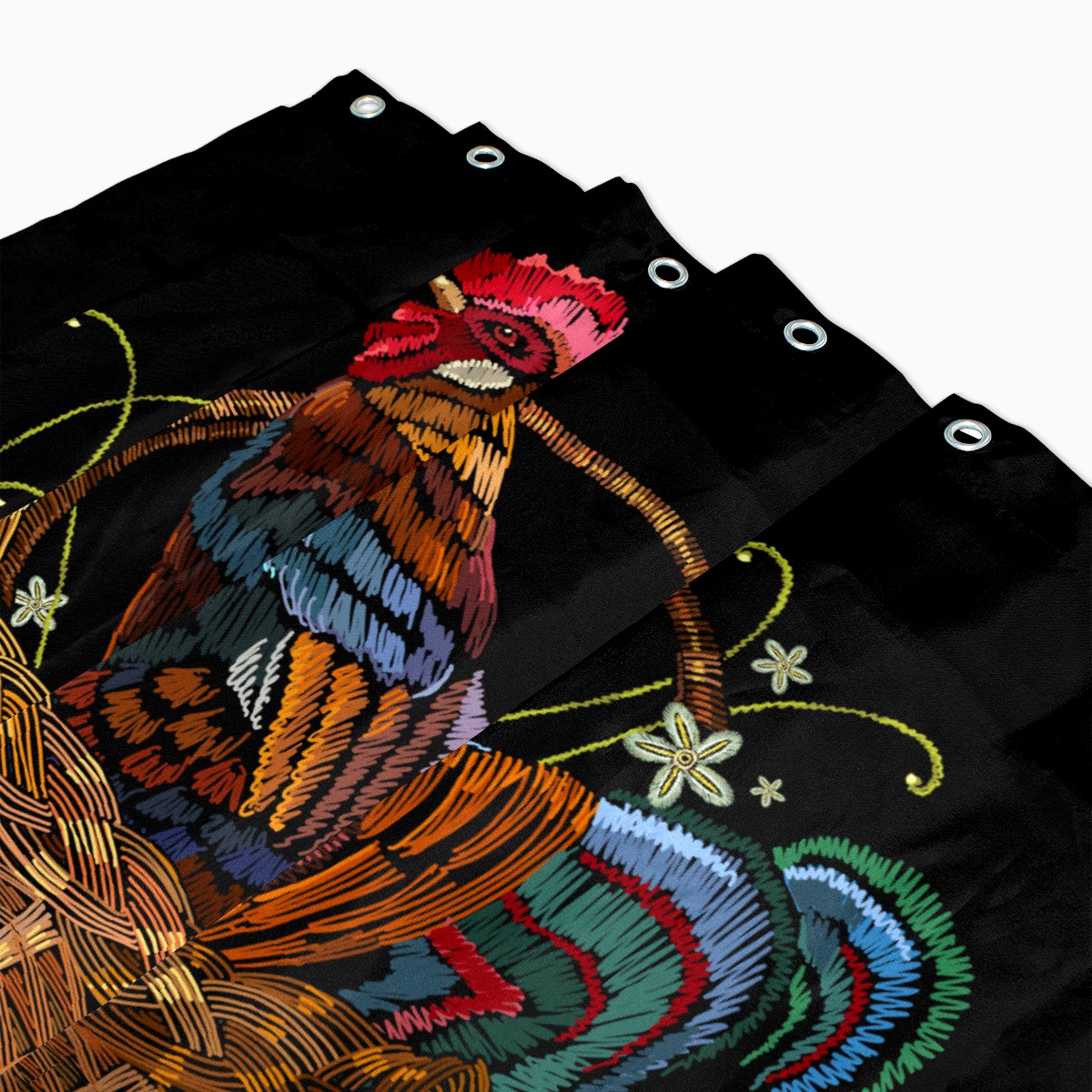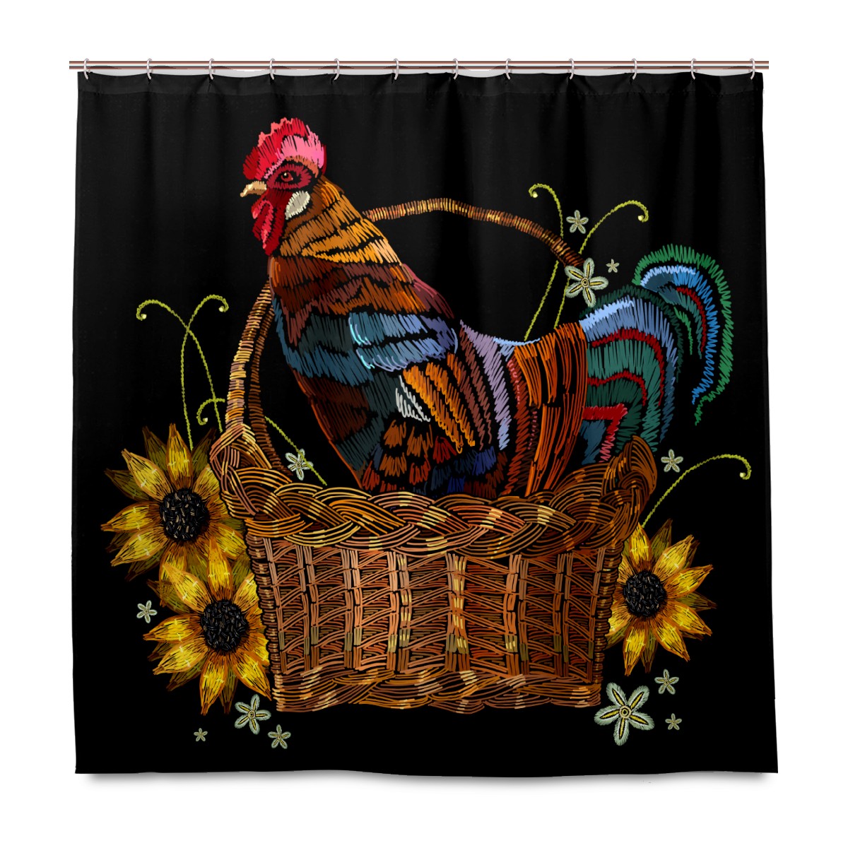 Shower Curtains for Bathroom Retro Colorful Rooster Embroidery Sunflower Waterproof Polyester Fabric 60 x 72 inches Decor Bathroom Curtains for Girls Boys with 12 Hooks