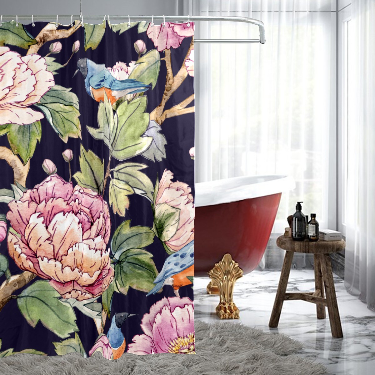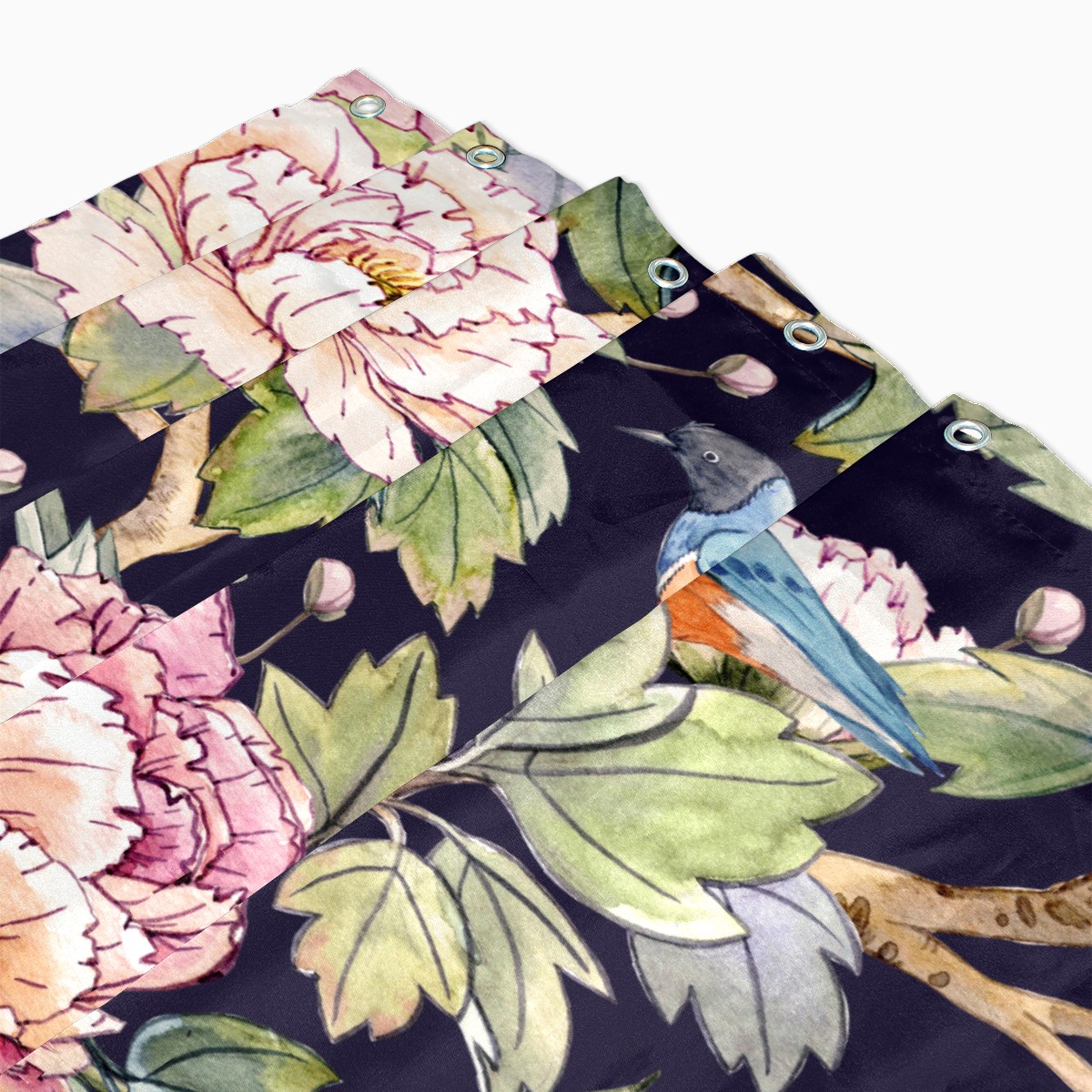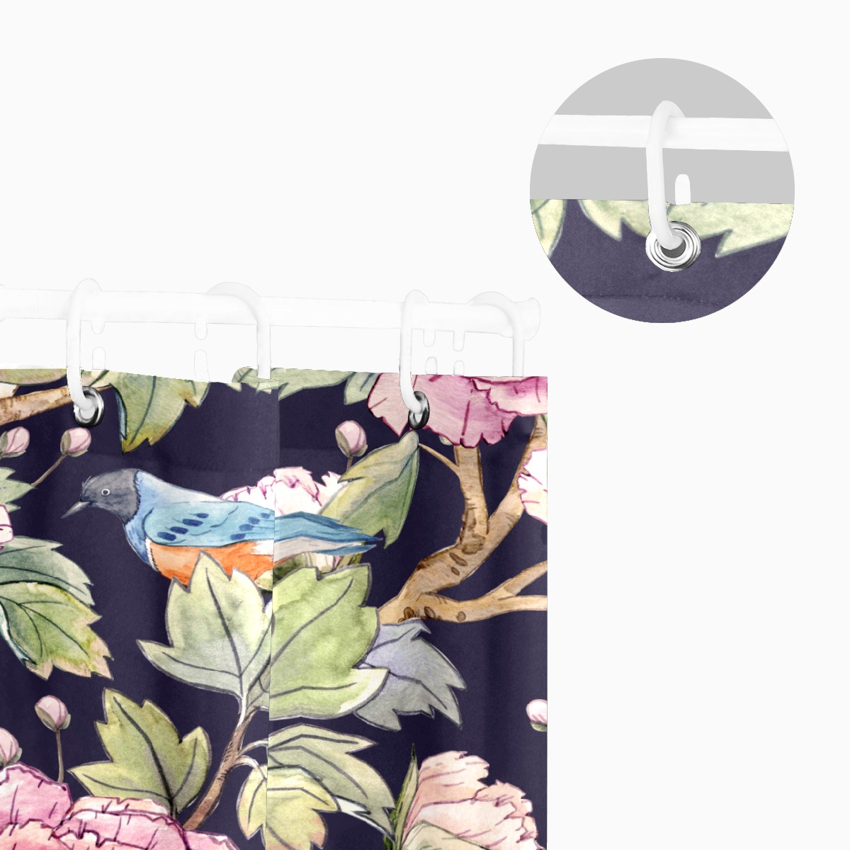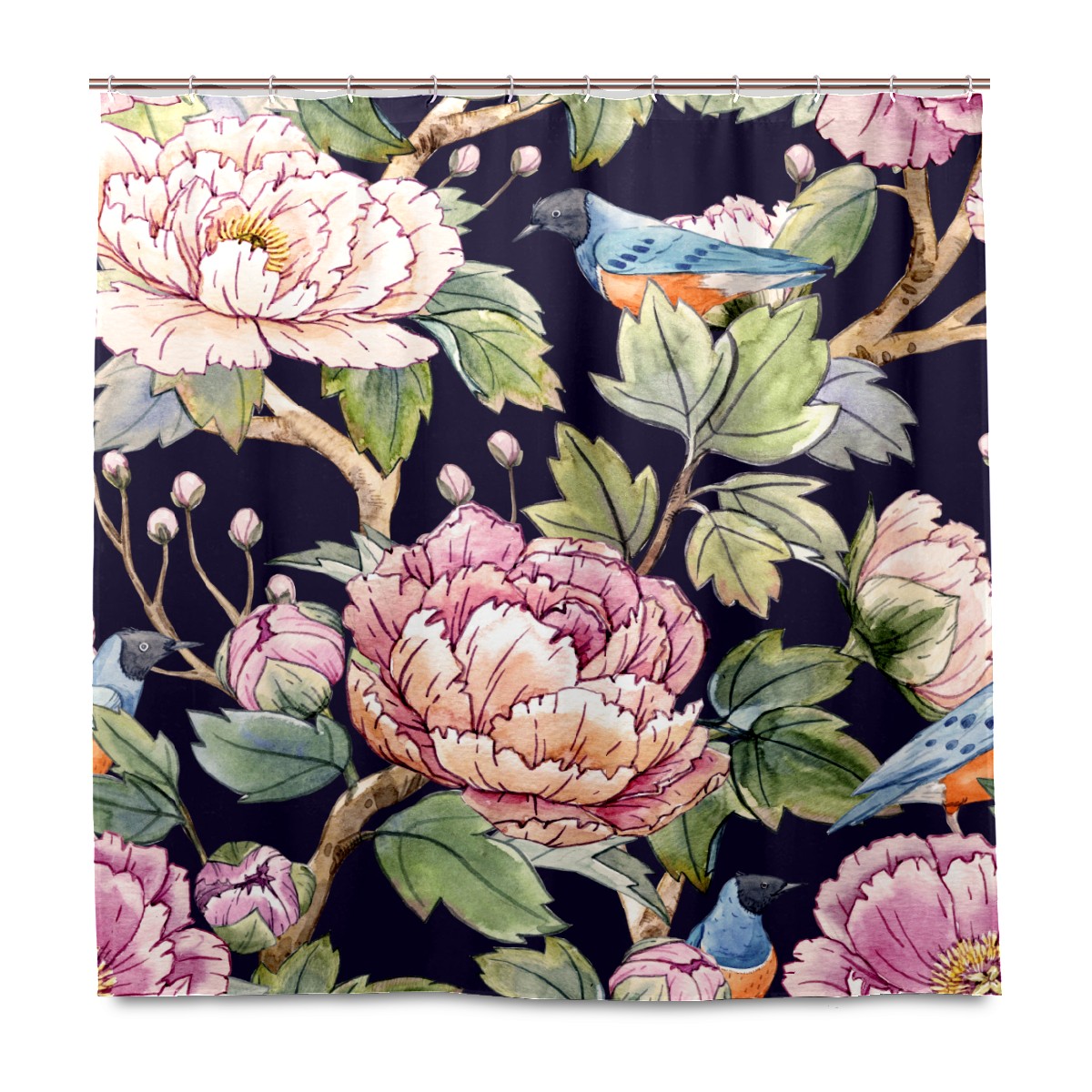Shower Curtains for Bathroom Retro Chinese Peony Roses Bird Flowers Waterproof Polyester Fabric 60 x 72 inches Decor Bathroom Curtains for Girls Boys with 12 Hooks