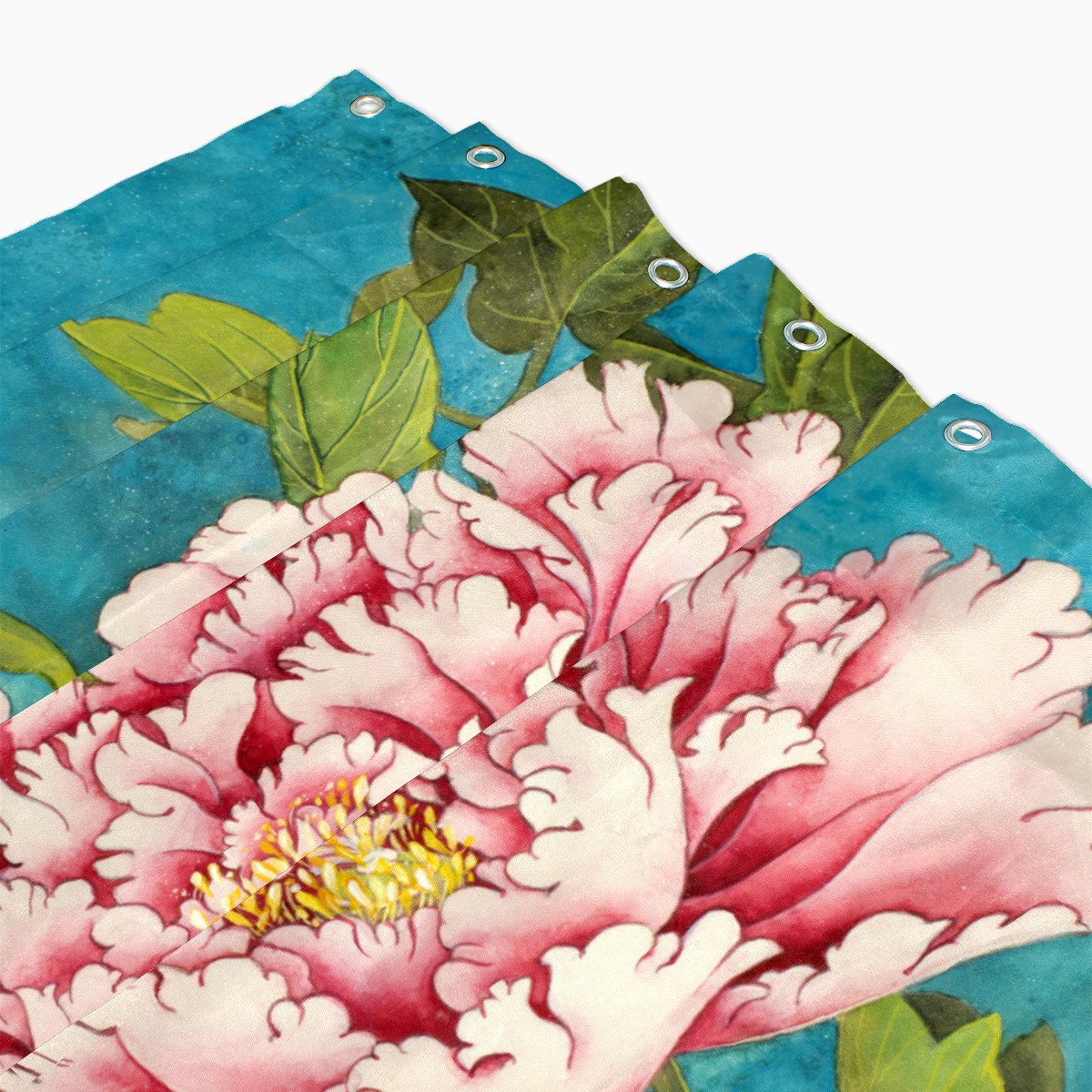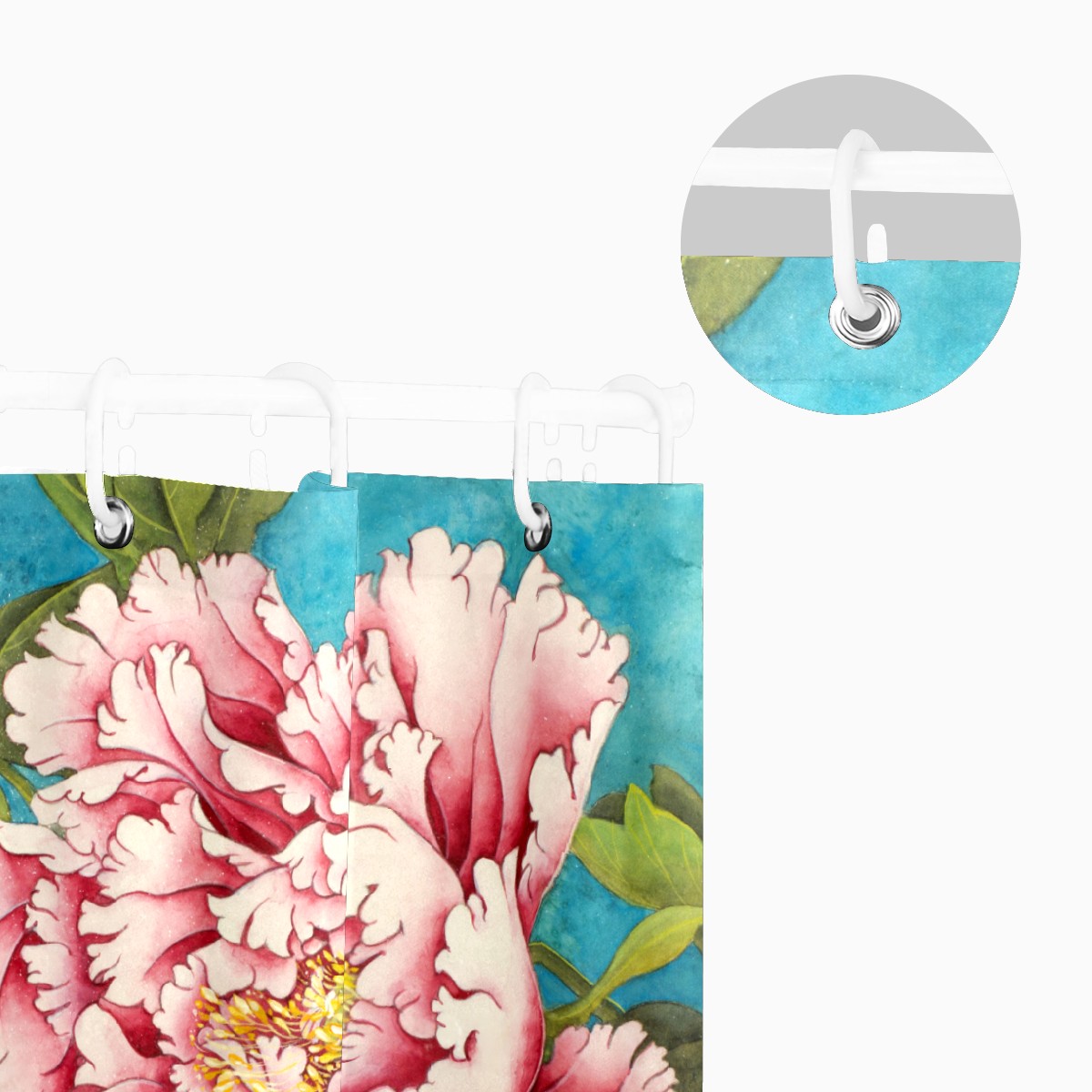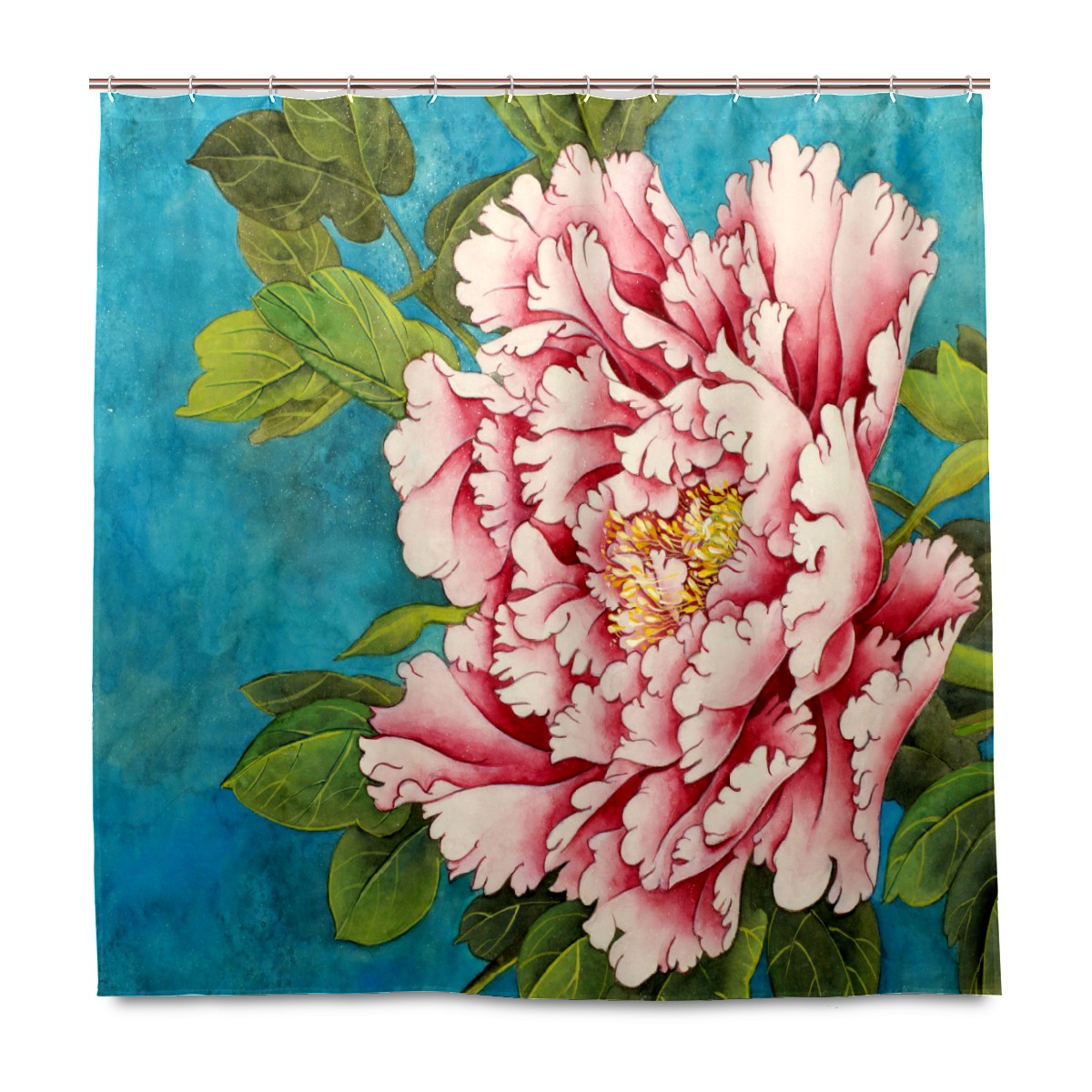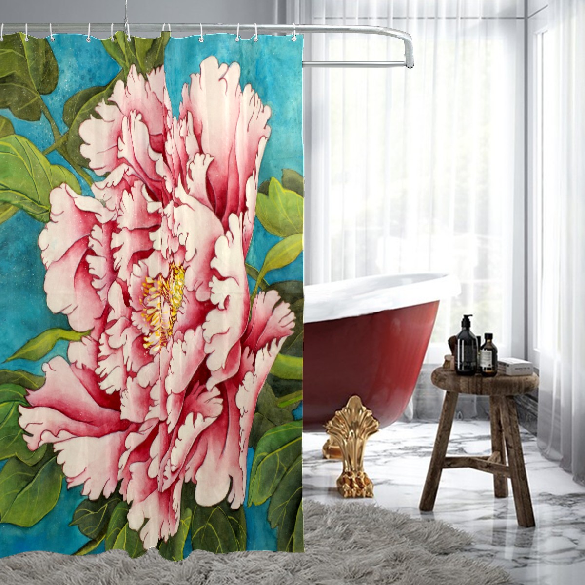 Shower Curtains for Bathroom Retro Chinese Peony Roses Flower Waterproof Polyester Fabric 60 x 72 inches Decor Bathroom Curtains for Girls Boys with 12 Hooks