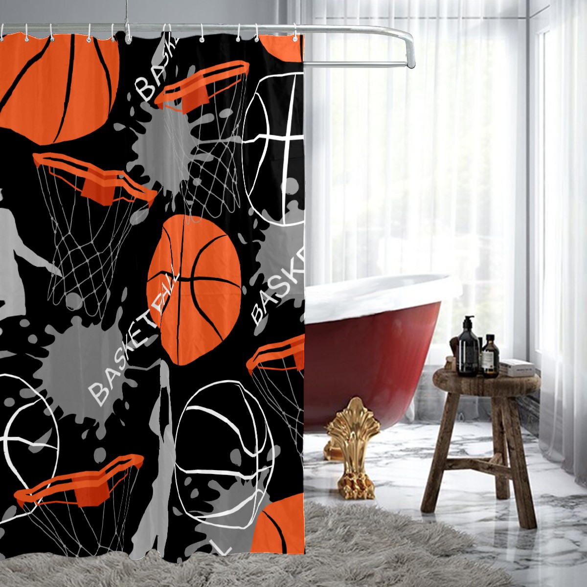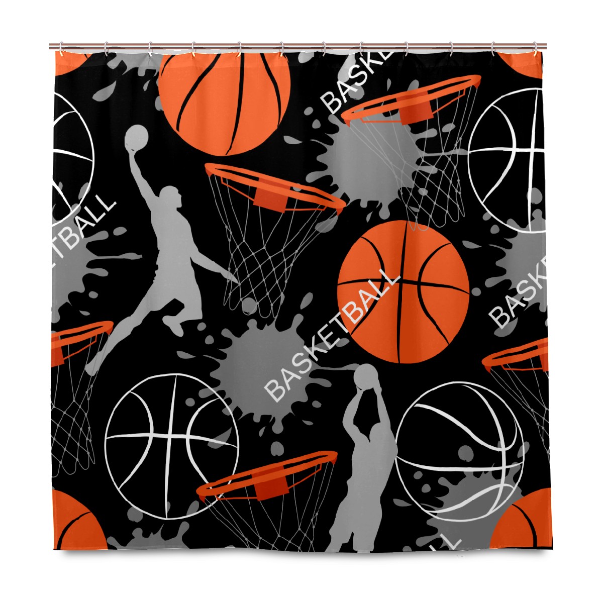 Shower Curtains for Bathroom Play Basketball Sport Game Waterproof Polyester Fabric 60 x 72 inches Decor Bathroom Curtains for Girls Boys with 12 Hooks