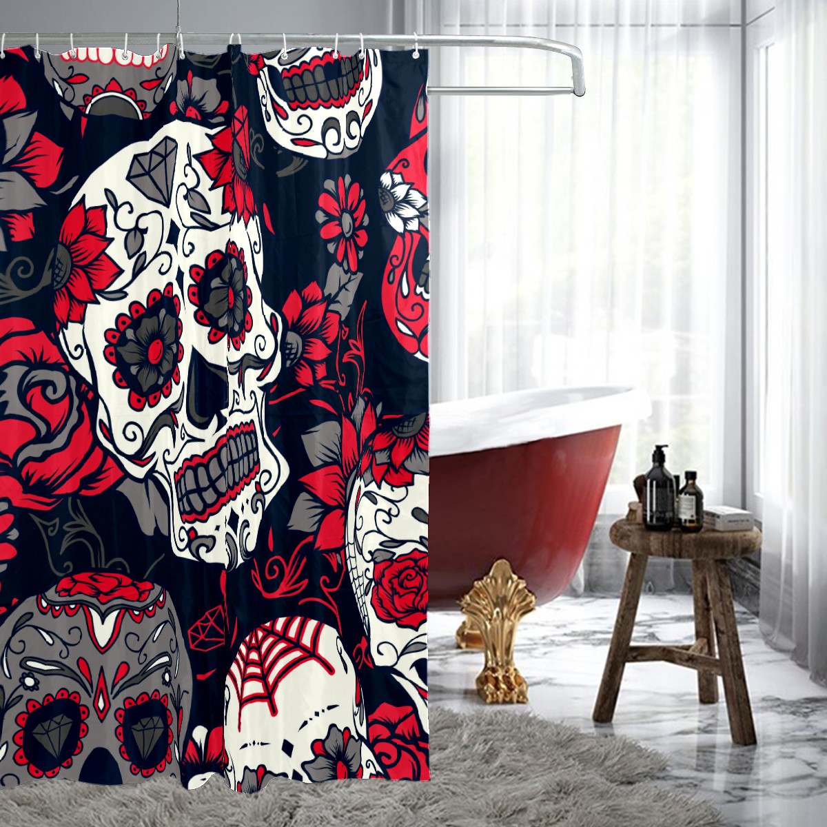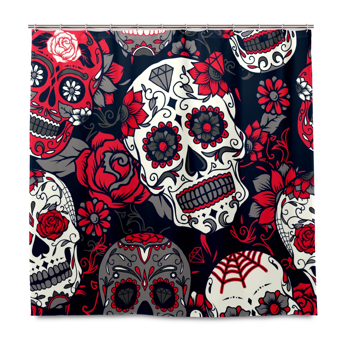 Shower Curtains for Bathroom Mexico Sugar Skull Rose Waterproof Polyester Fabric 60 x 72 inches Decor Bathroom Curtains for Girls Boys with 12 Hooks