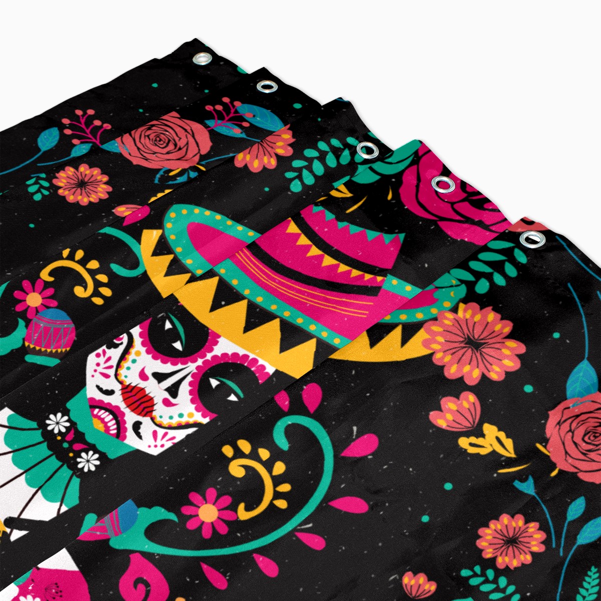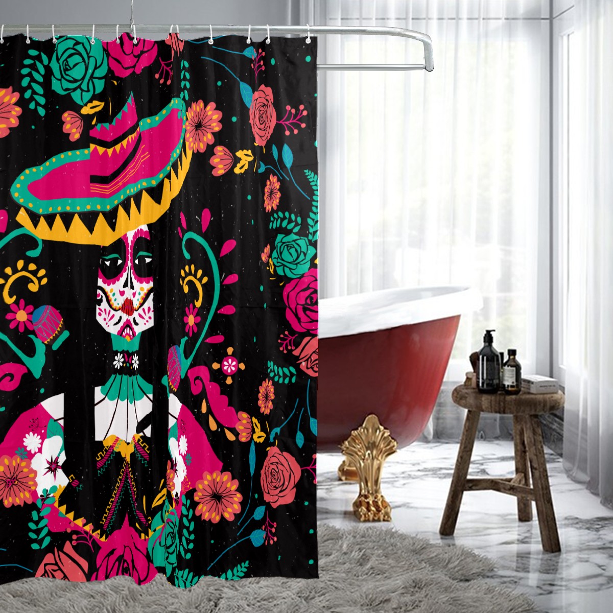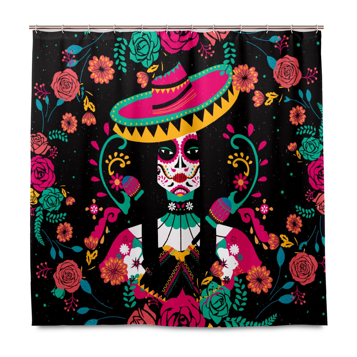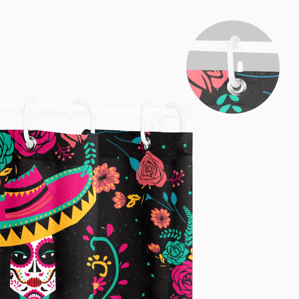 Shower Curtains for Bathroom Mexico Sugar Skull Floral Waterproof Polyester Fabric 60 x 72 inches Decor Bathroom Curtains for Girls Boys with 12 Hooks