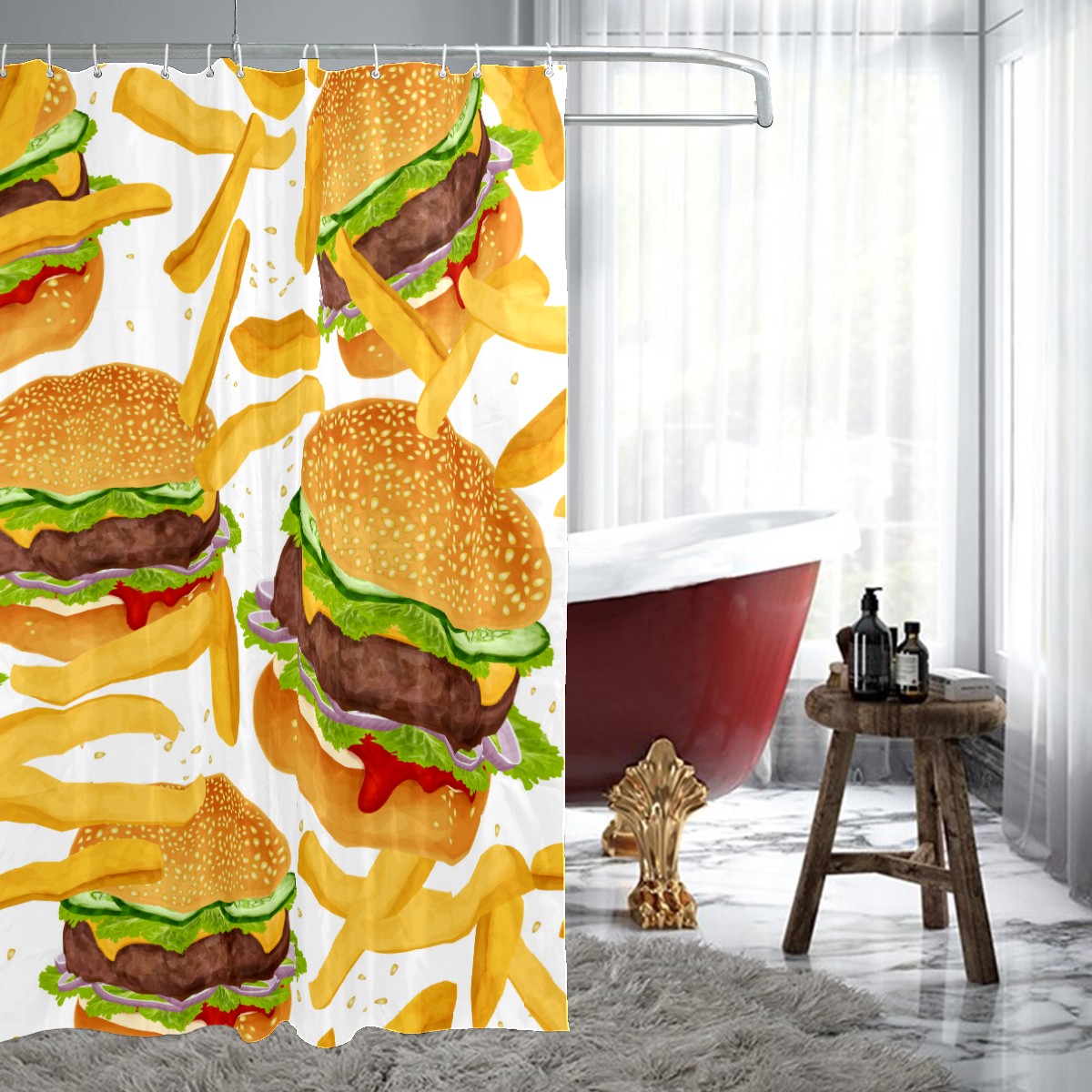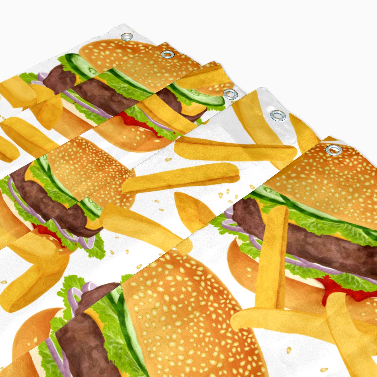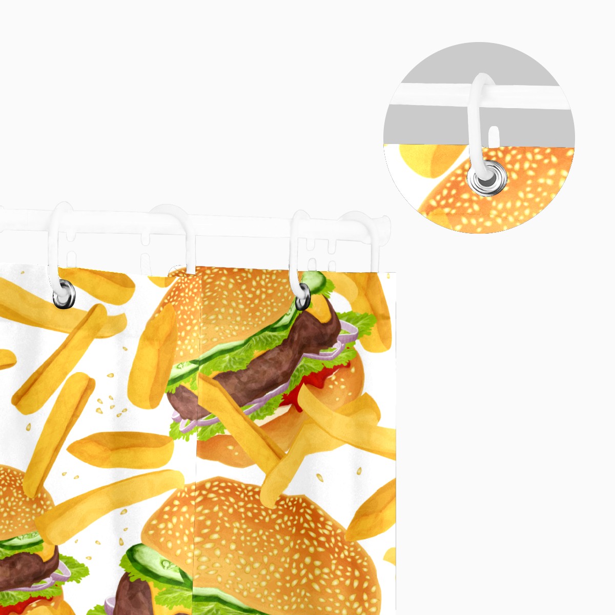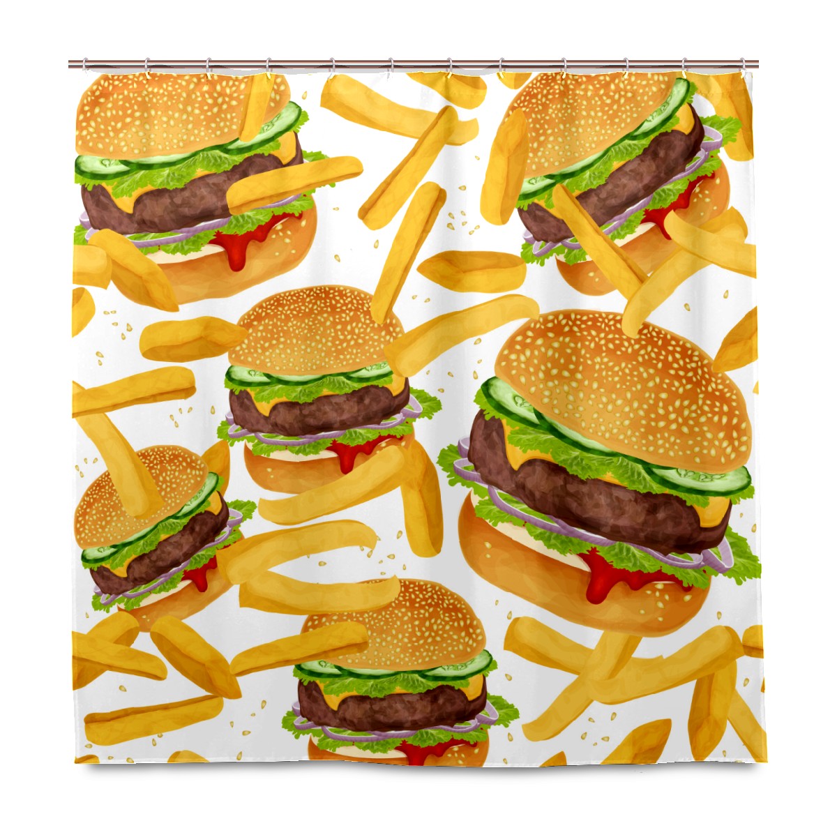 Shower Curtains for Bathroom Hamburger French Fries Pattern Waterproof Polyester Fabric 60 x 72 inches Decor Bathroom Curtains for Girls Boys with 12 Hooks