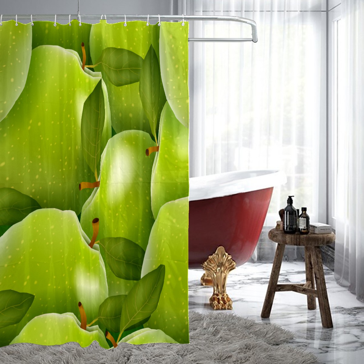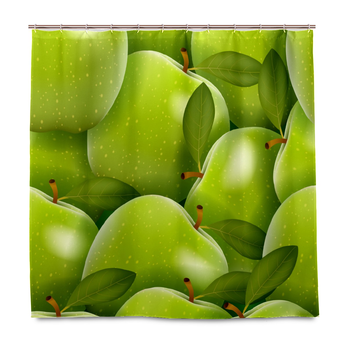 Shower Curtains for Bathroom Green Apple Fruits Pattern Waterproof Polyester Fabric 60 x 72 inches Decor Bathroom Curtains for Girls Boys with 12 Hooks