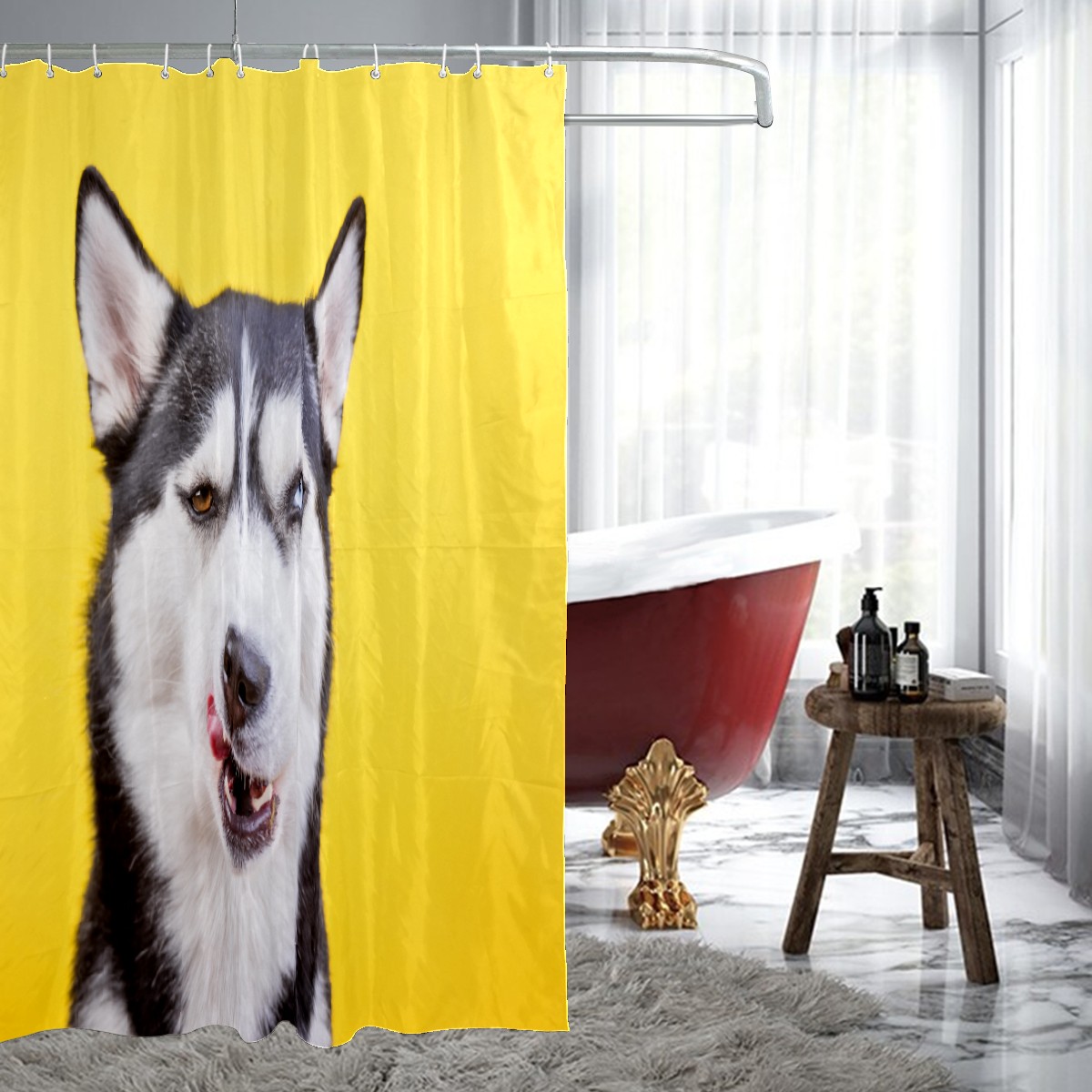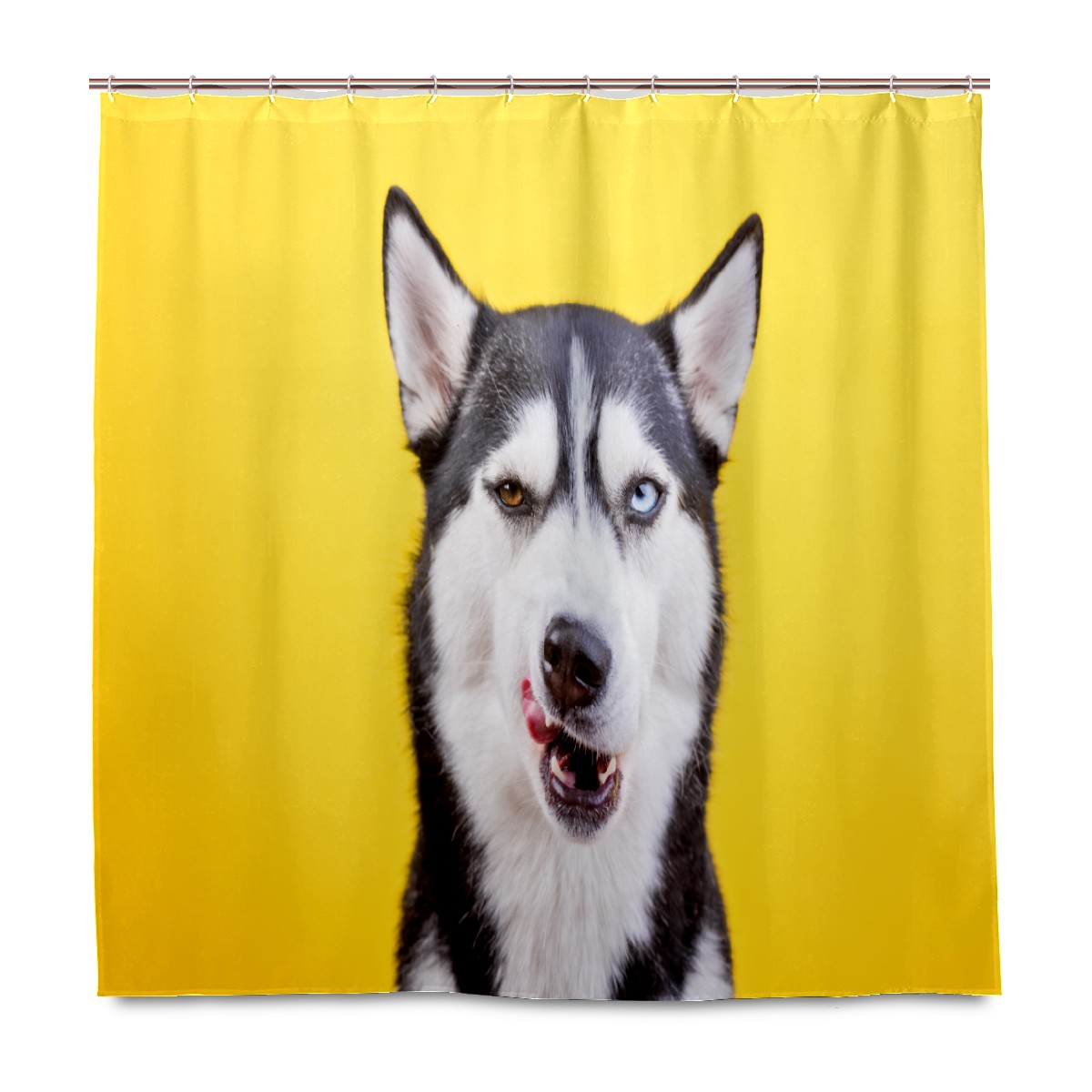 Shower Curtains for Bathroom Funny Husky Waterproof Polyester Fabric 60 x 72 inches Decor Bathroom Curtains for Girls Boys with 12 Hooks