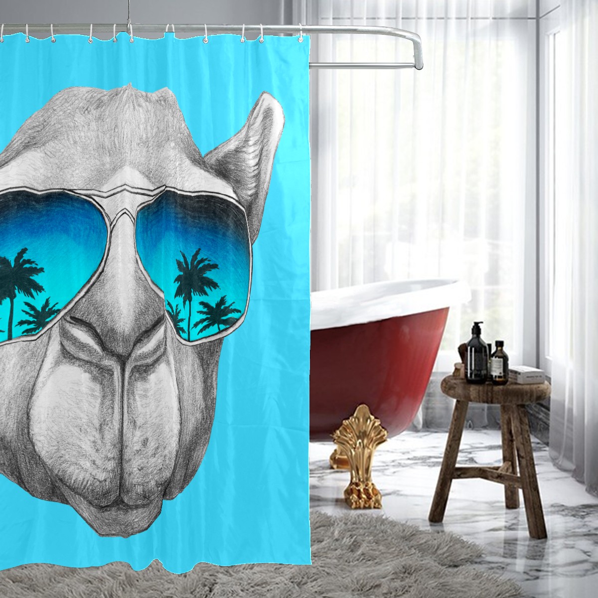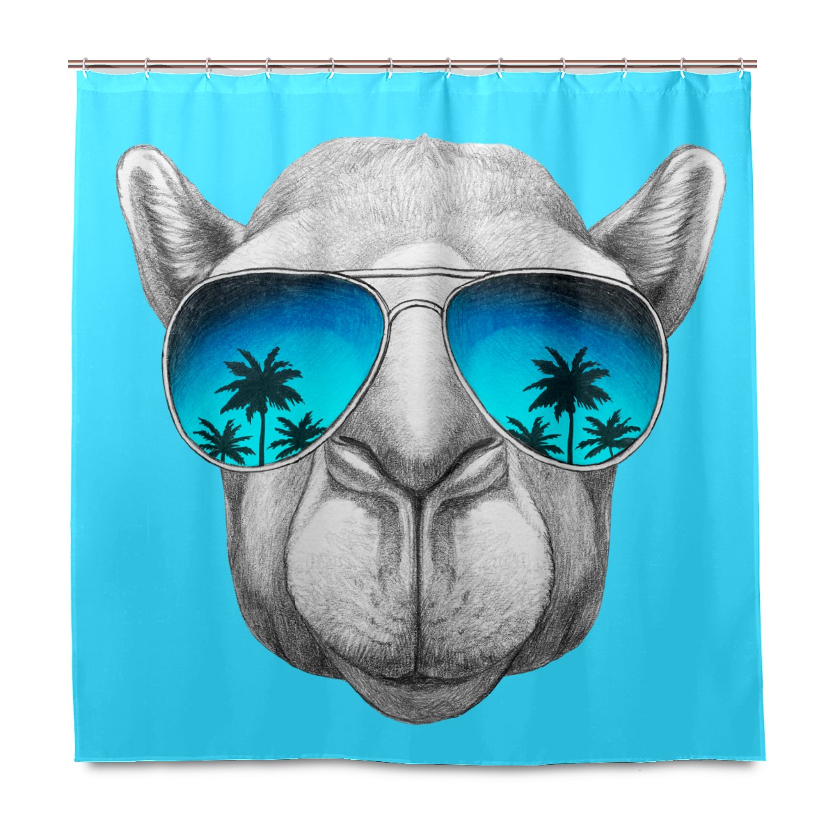 Shower Curtains for Bathroom Funny Alpaca Llama With Glasses Waterproof Polyester Fabric 60 x 72 inches Decor Bathroom Curtains for Girls Boys with 12 Hooks