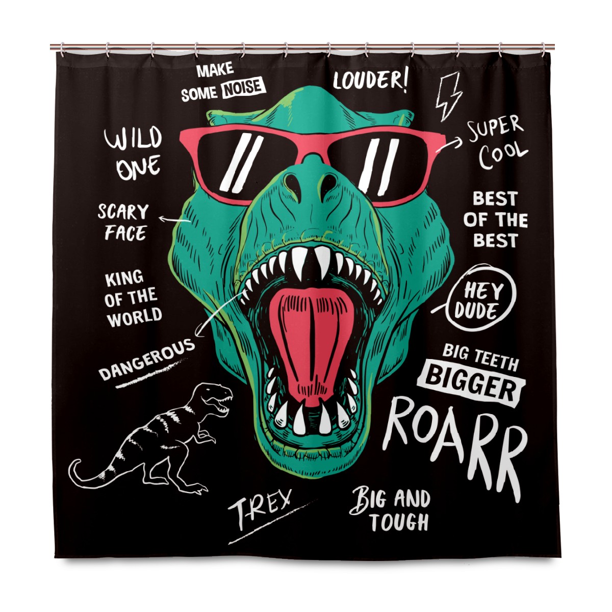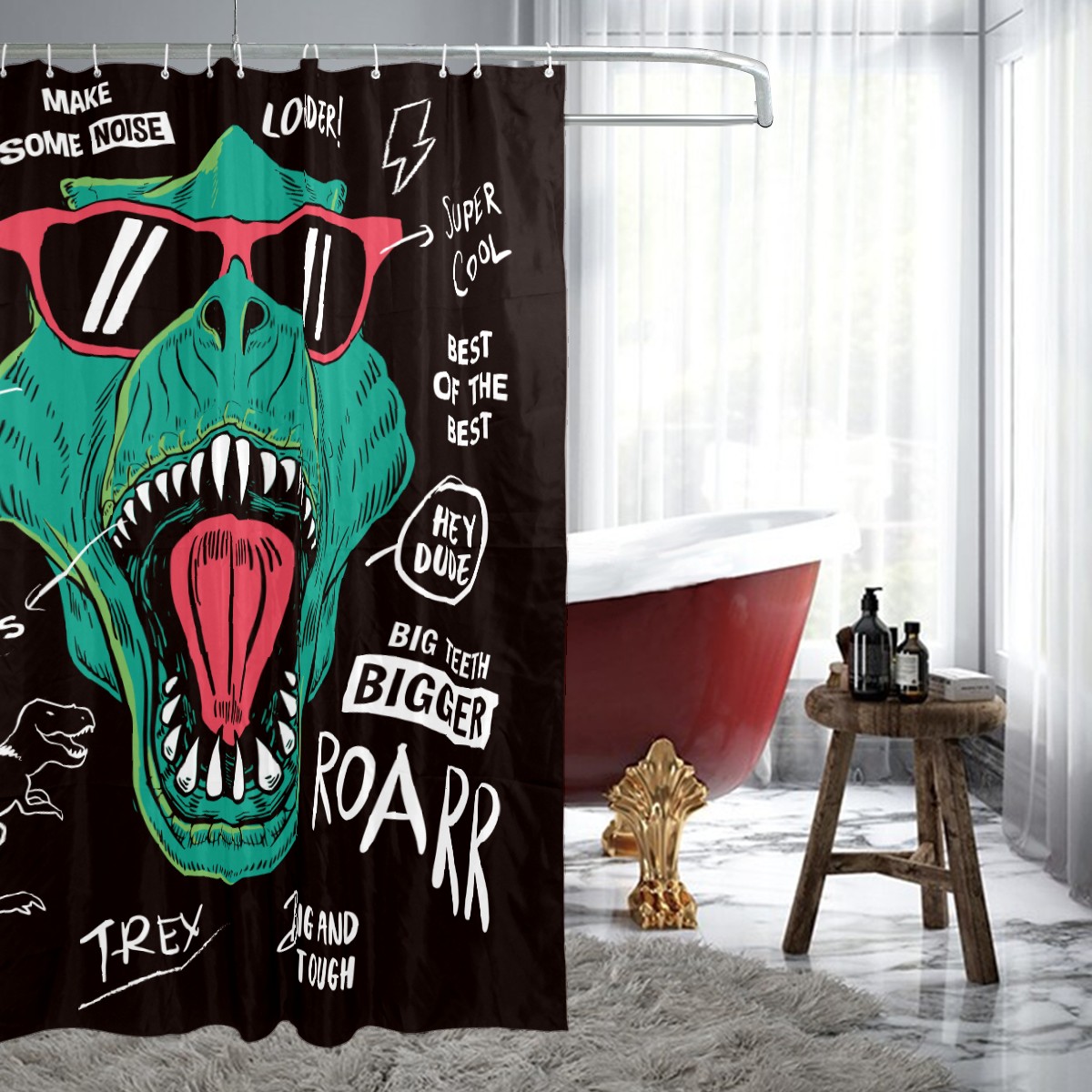 Shower Curtains for Bathroom Funny Cartoon Dinosaur Waterproof Polyester Fabric 60 x 72 inches Decor Bathroom Curtains for Girls Boys with 12 Hooks