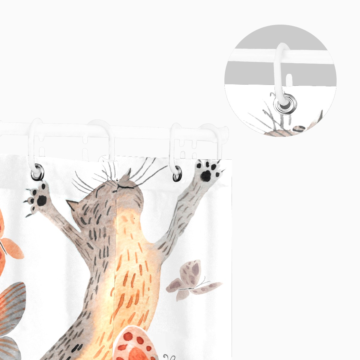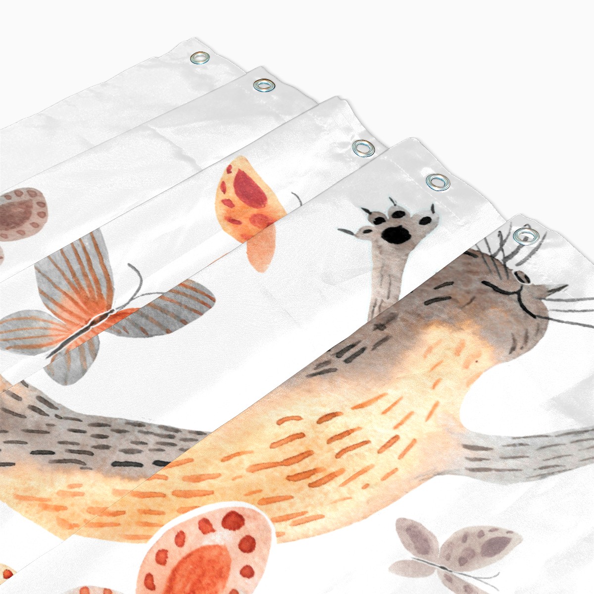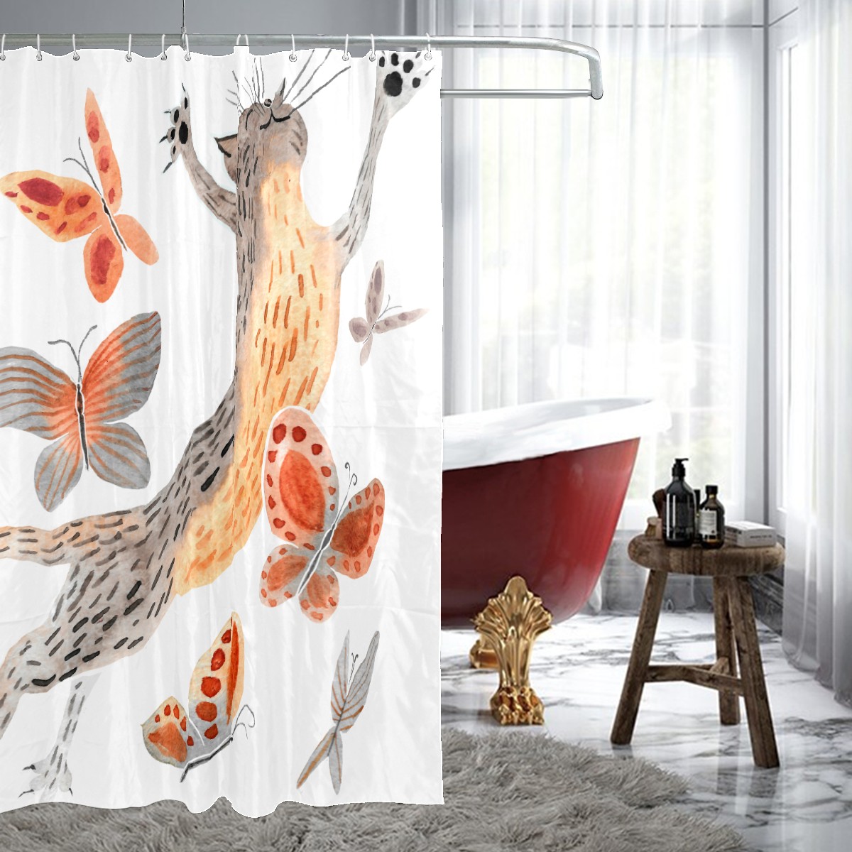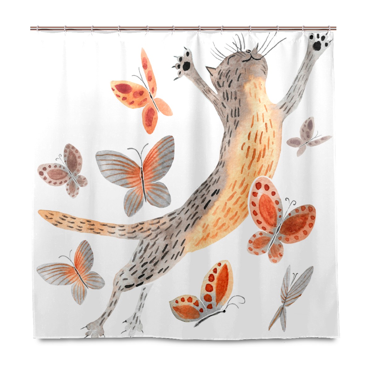 Shower Curtains for Bathroom Funny Cat With Butterfly Waterproof Polyester Fabric 60 x 72 inches Decor Bathroom Curtains for Girls Boys with 12 Hooks
