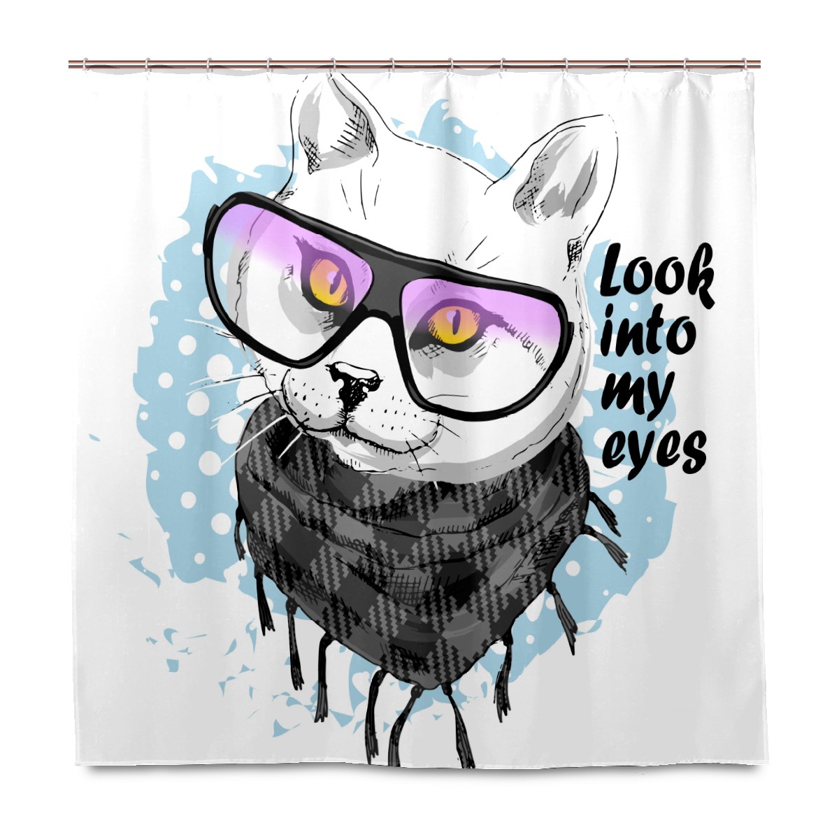 Shower Curtains for Bathroom Funny Cat With Scarf Glasses Waterproof Polyester Fabric 60 x 72 inches Decor Bathroom Curtains for Girls Boys with 12 Hooks