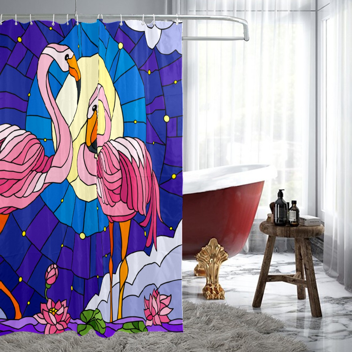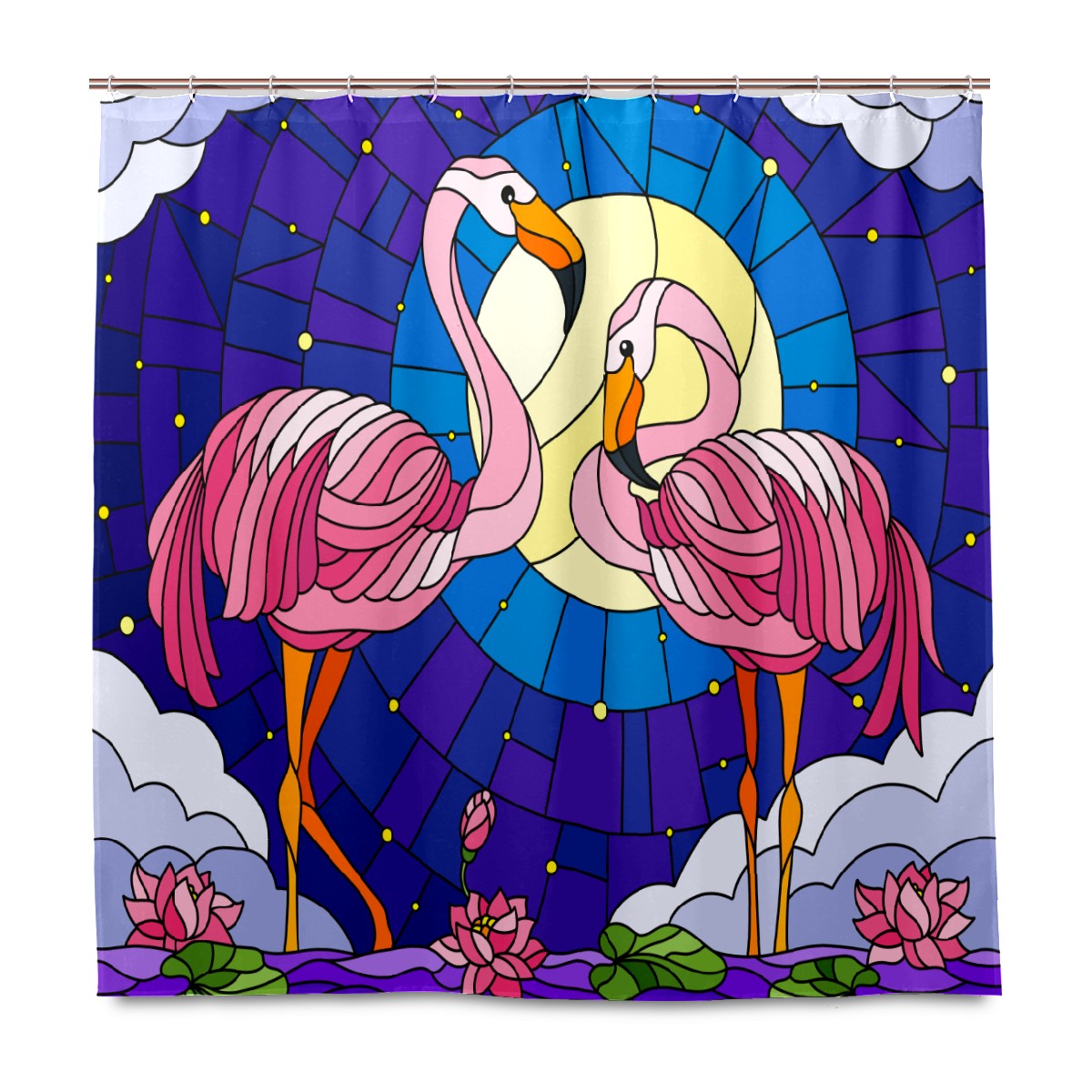 Shower Curtains for Bathroom Flamingo With Lotus Floral Waterproof Polyester Fabric 60 x 72 inches Decor Bathroom Curtains for Girls Boys with 12 Hooks