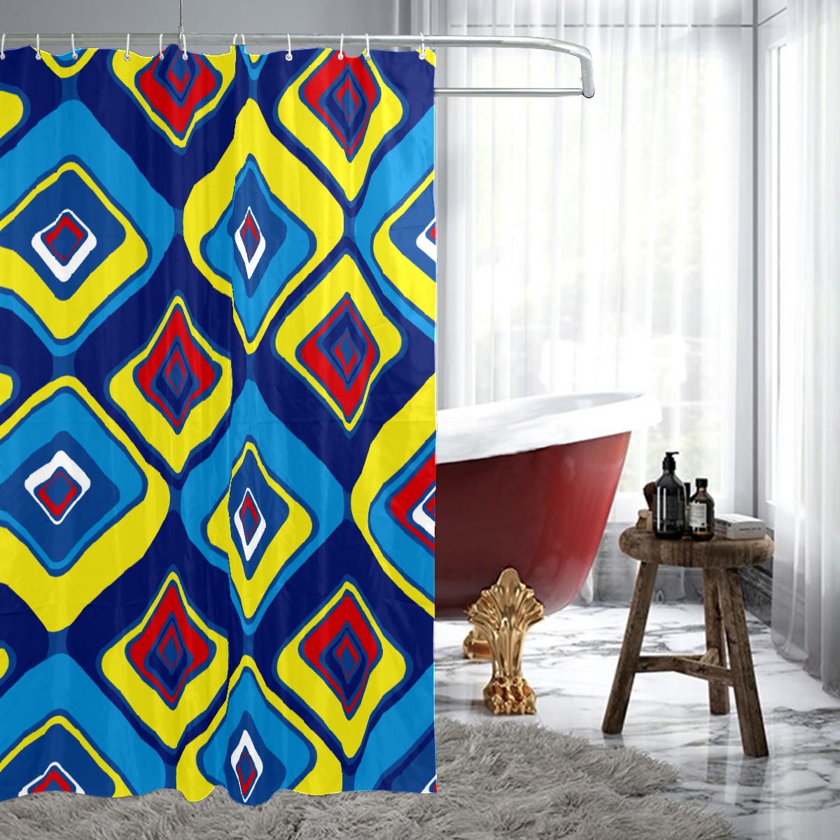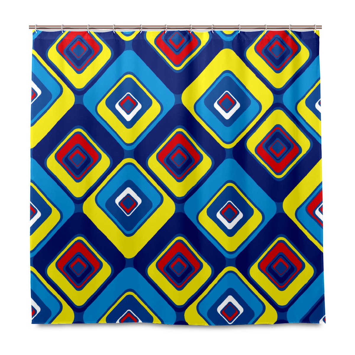 Shower Curtains for Bathroom Colorful Yellow Blue Geometric Print Waterproof Polyester Fabric 60 x 72 inches Decor Bathroom Curtains for Girls Boys with 12 Hooks