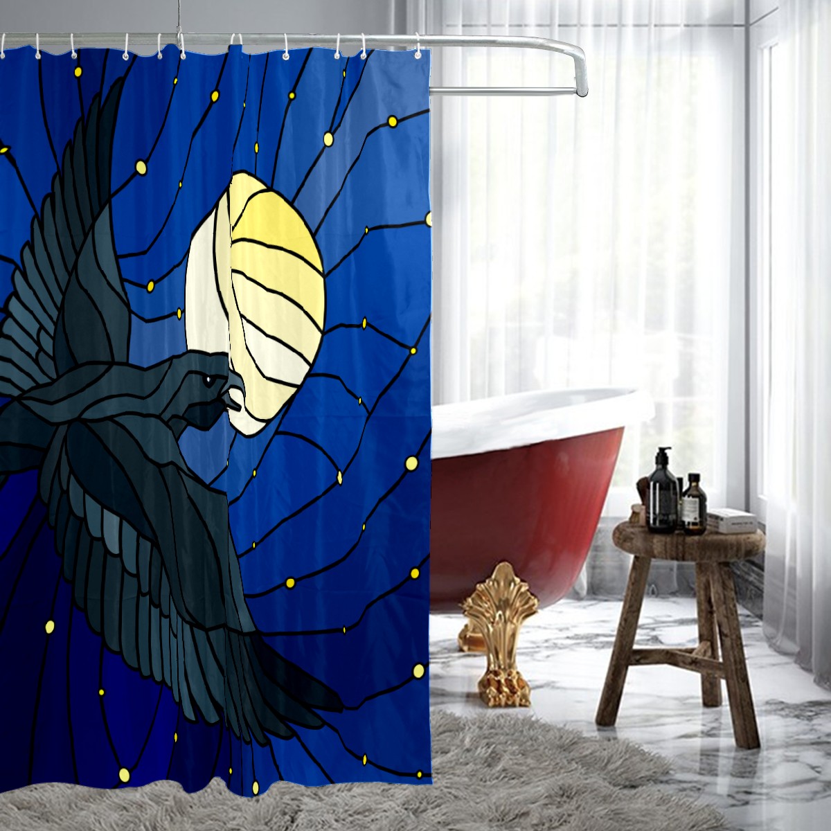 Shower Curtains for Bathroom Eagle With Moon Glasses Waterproof Polyester Fabric 60 x 72 inches Decor Bathroom Curtains for Girls Boys with 12 Hooks