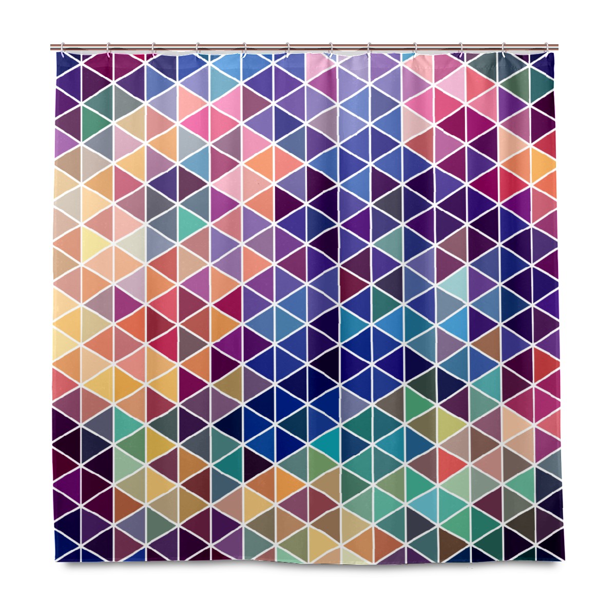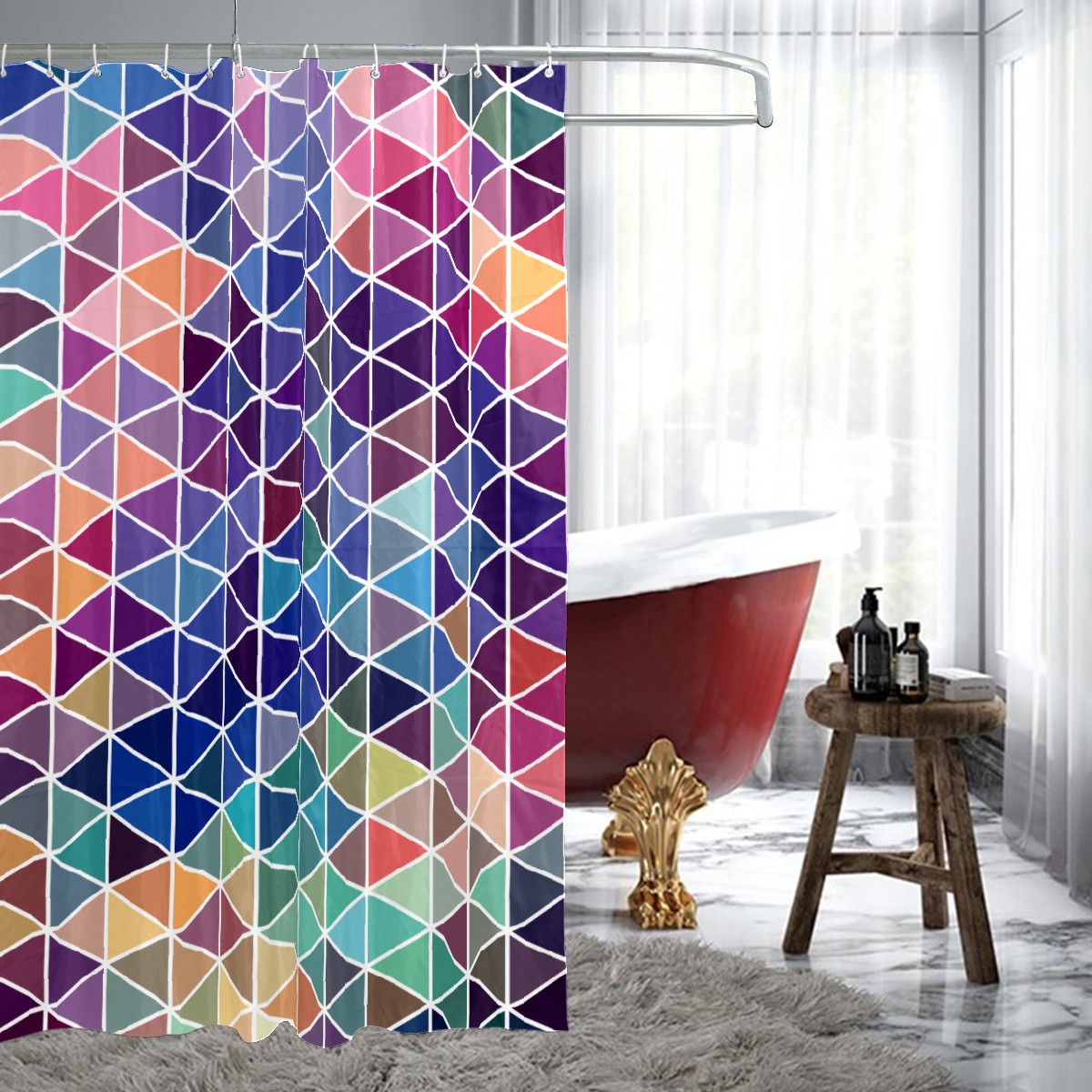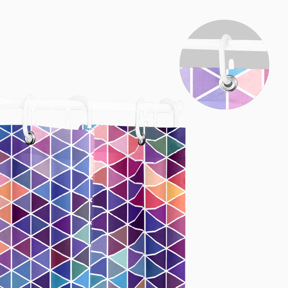 Shower Curtains for Bathroom Colorful Triangle Purple Geometric Print Waterproof Polyester Fabric 60 x 72 inches Decor Bathroom Curtains for Girls Boys with 12 Hooks
