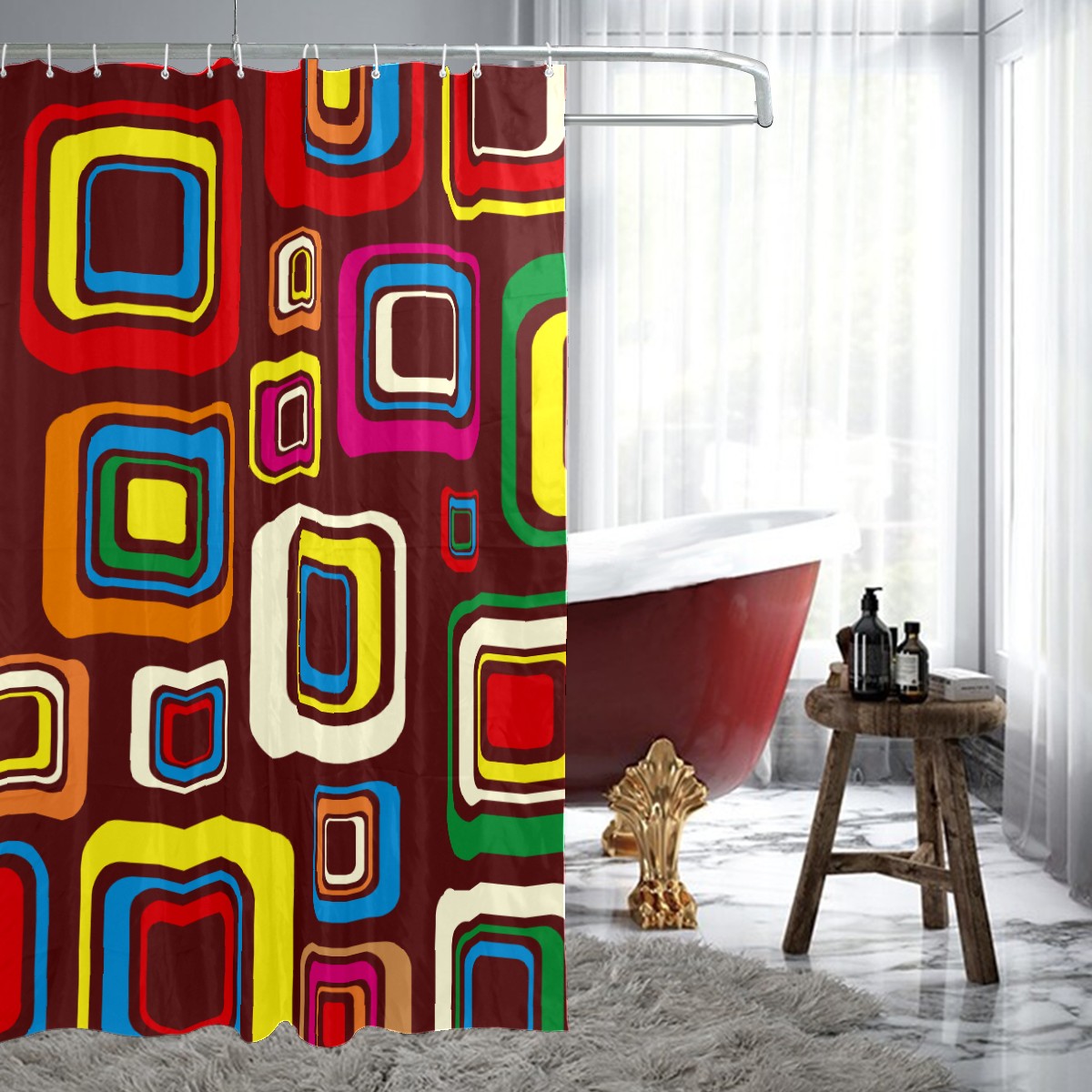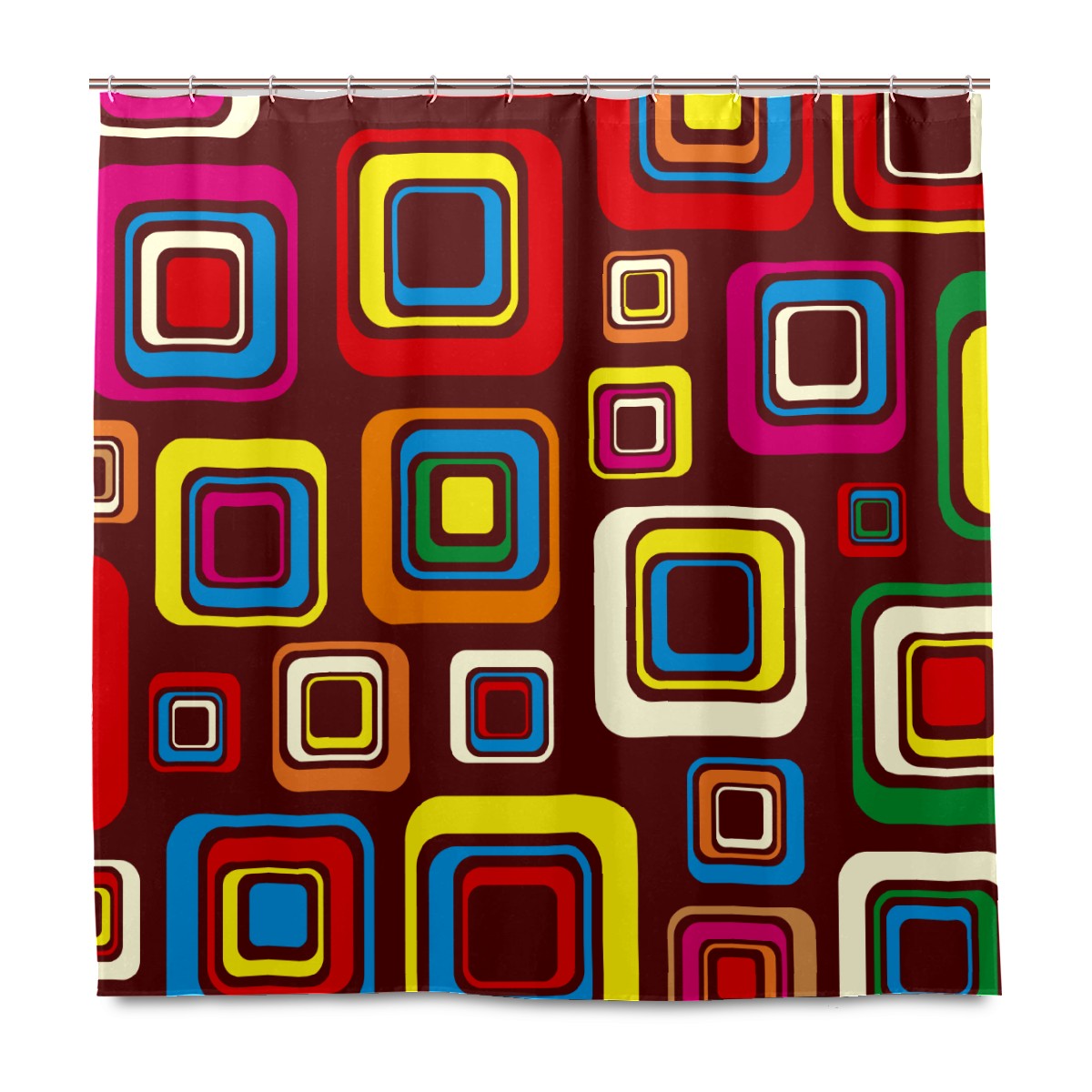 Shower Curtains for Bathroom Colorful Geometric Square Print Waterproof Polyester Fabric 60 x 72 inches Decor Bathroom Curtains for Girls Boys with 12 Hooks
