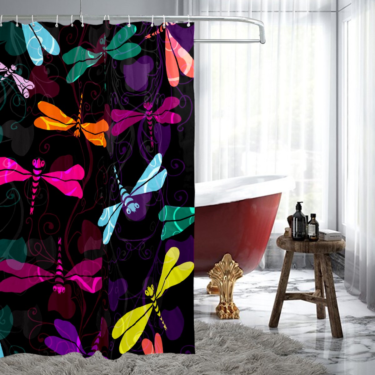 Shower Curtains for Bathroom Colorful Insect Dragonfly Pattern Waterproof Polyester Fabric 60 x 72 inches Decor Bathroom Curtains for Girls Boys with 12 Hooks