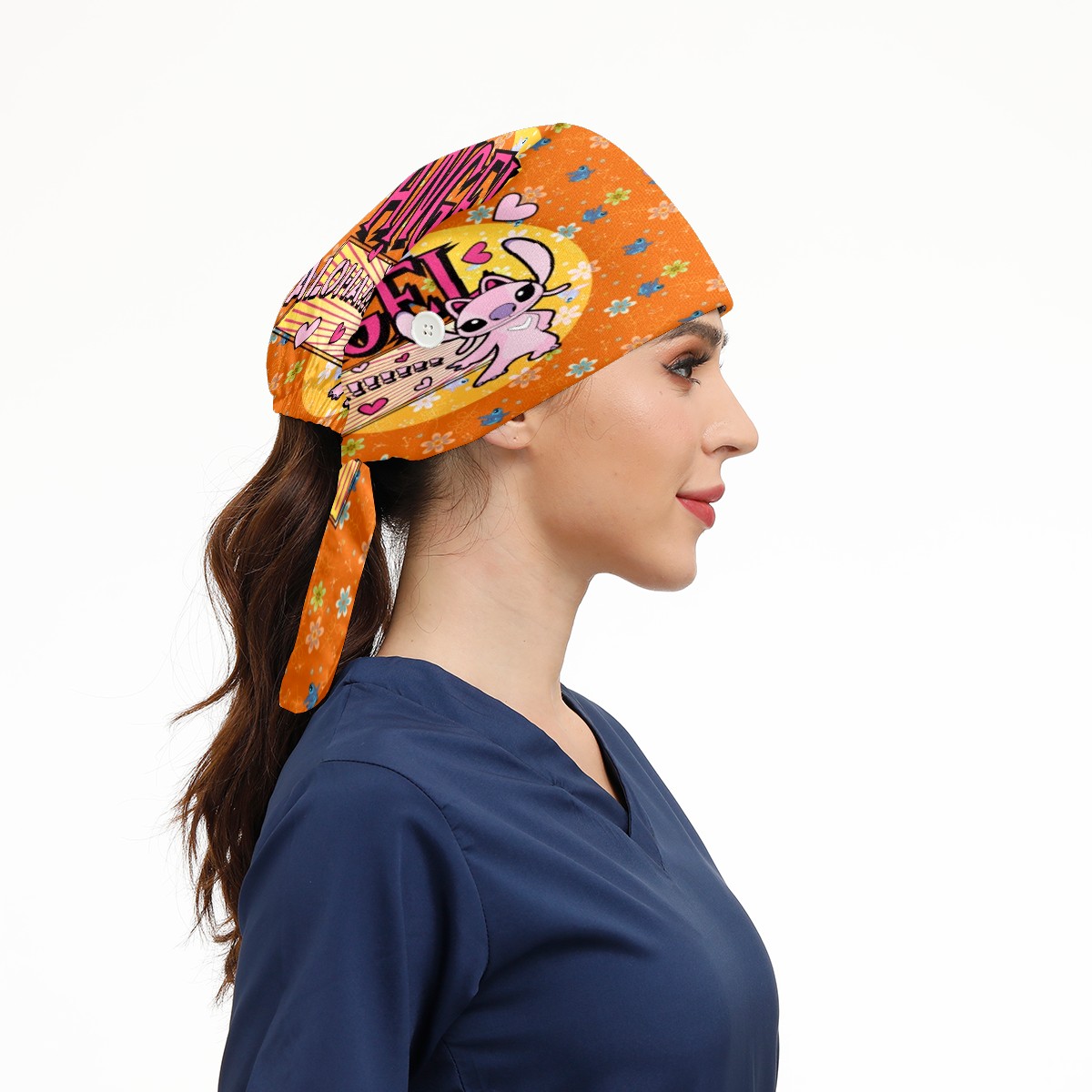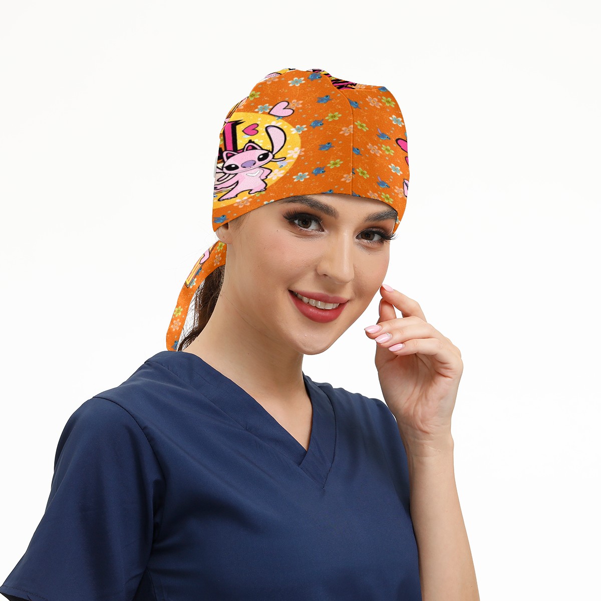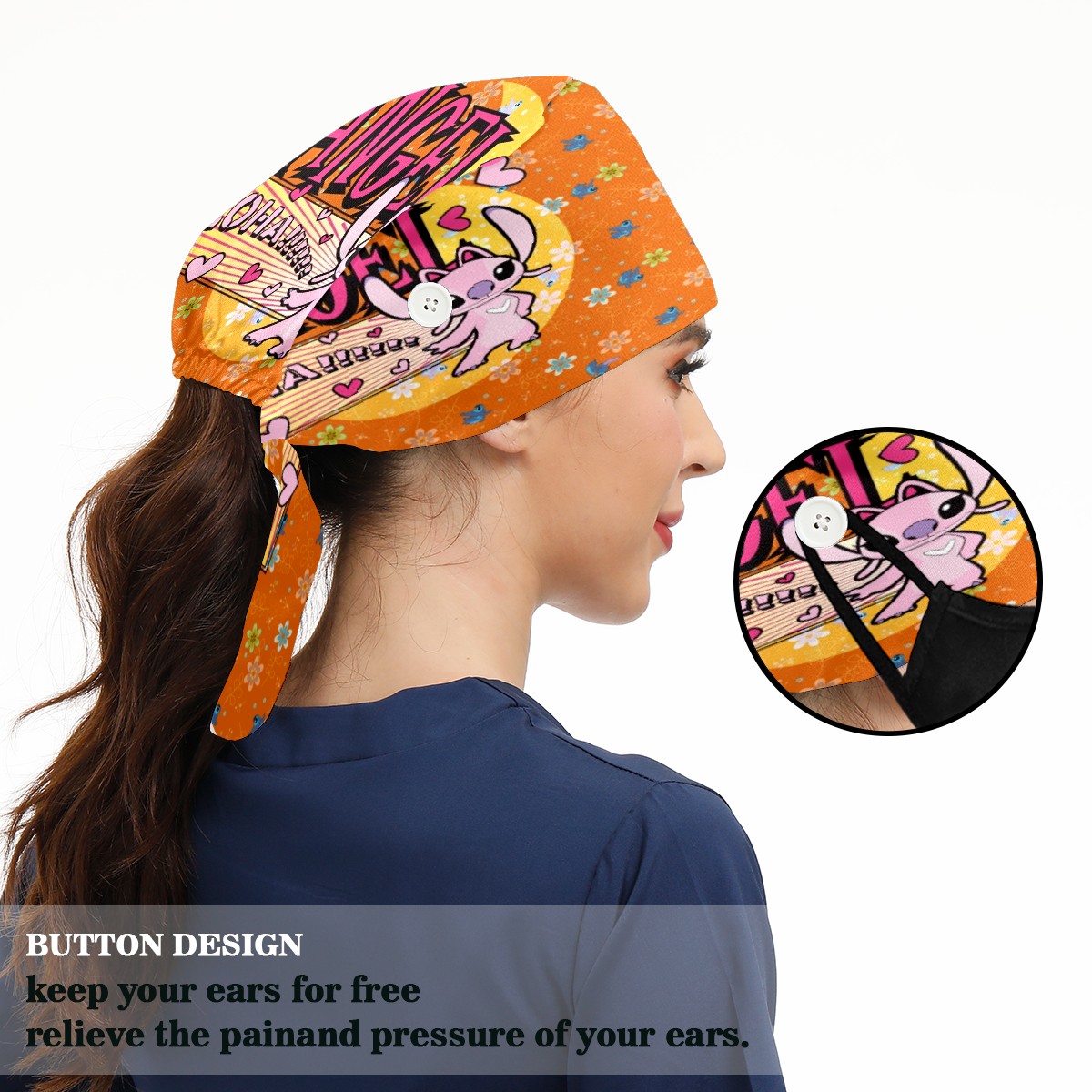 Fashion Working Cap Button and Sweatband Adjustable Elastic Cute Pink Lilo Stitch Head Cover Hair Tie Back Work Hats for Women Men