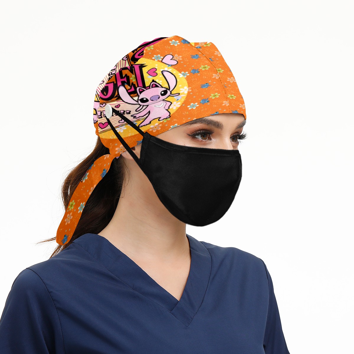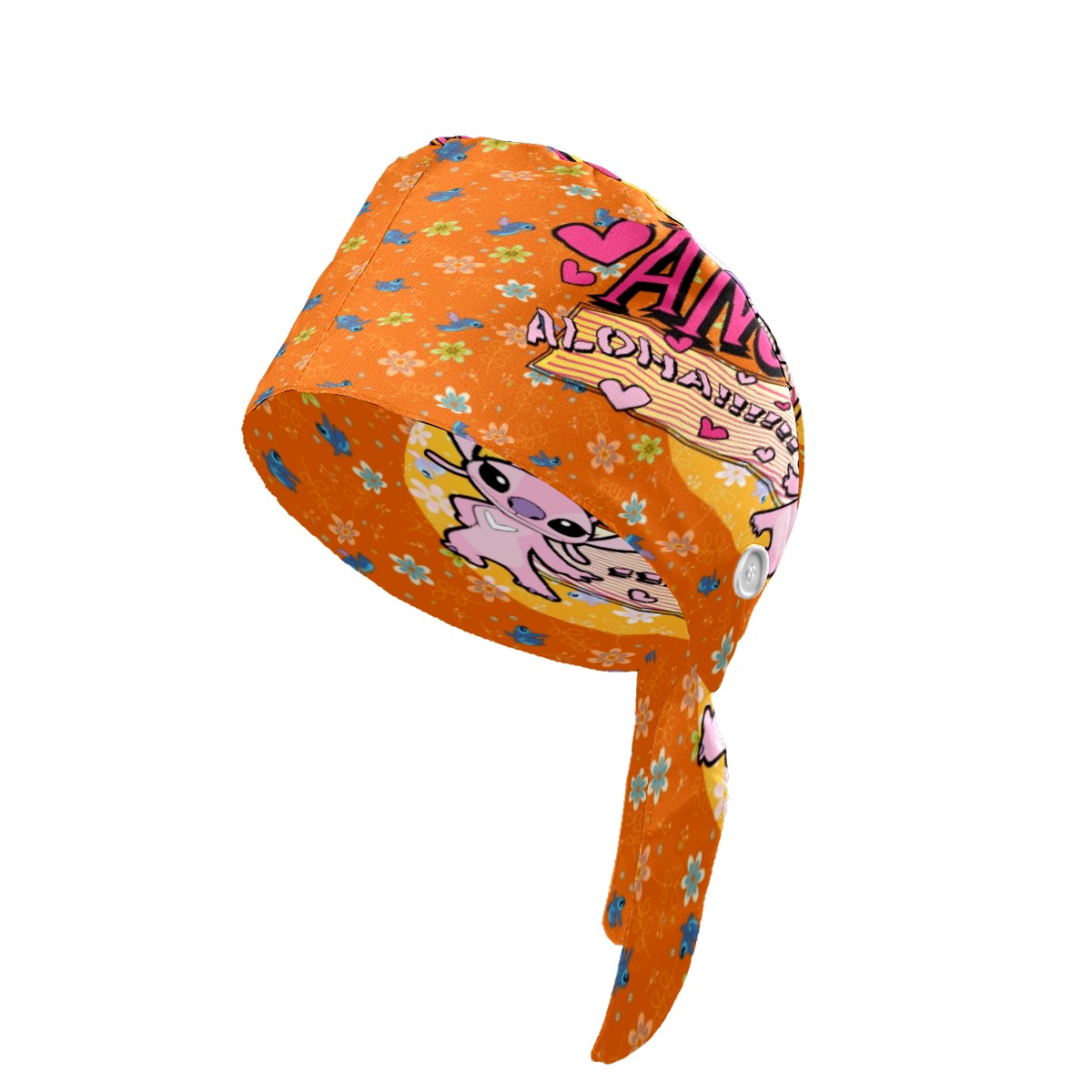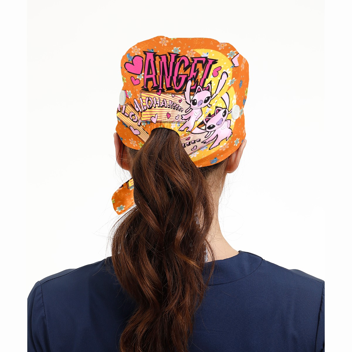 Fashion Working Cap Button and Sweatband Adjustable Elastic Cute Pink Lilo Stitch Head Cover Hair Tie Back Work Hats for Women Men