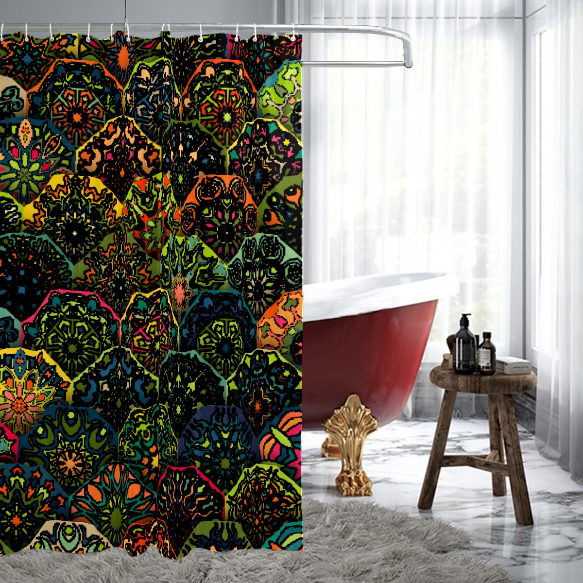 Shower Curtains for Bathroom Vintage Ethnic Boho Floral Print Waterproof Polyester Fabric 60 x 72 inches Decor Bathroom Curtains for Girls Boys with 12 Hooks