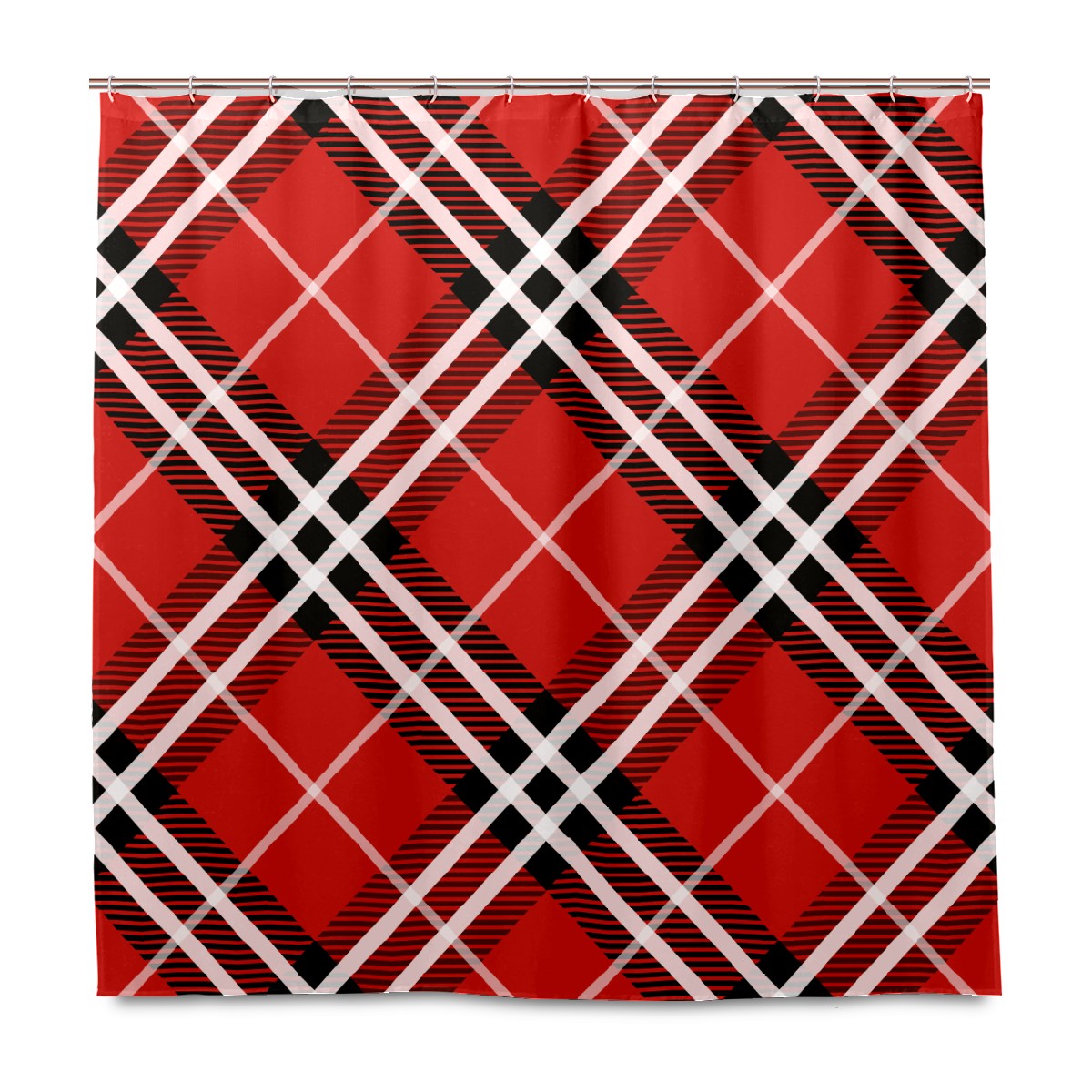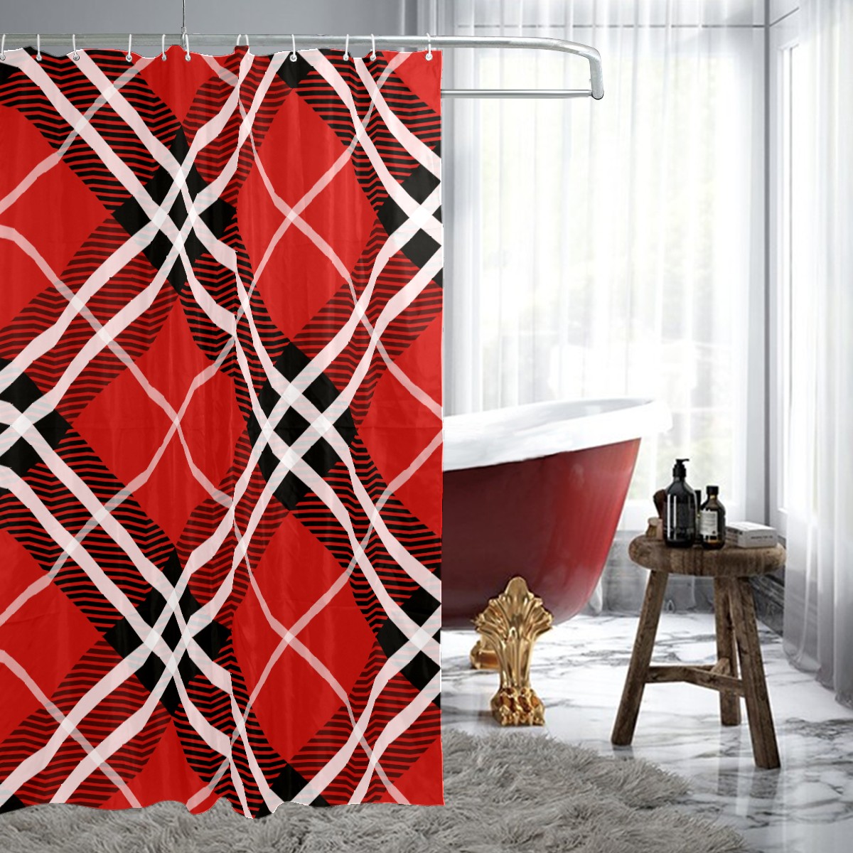 Shower Curtains for Bathroom Vintage Christmas Red Plaid Waterproof Polyester Fabric 60 x 72 inches Decor Bathroom Curtains for Girls Boys with 12 Hooks