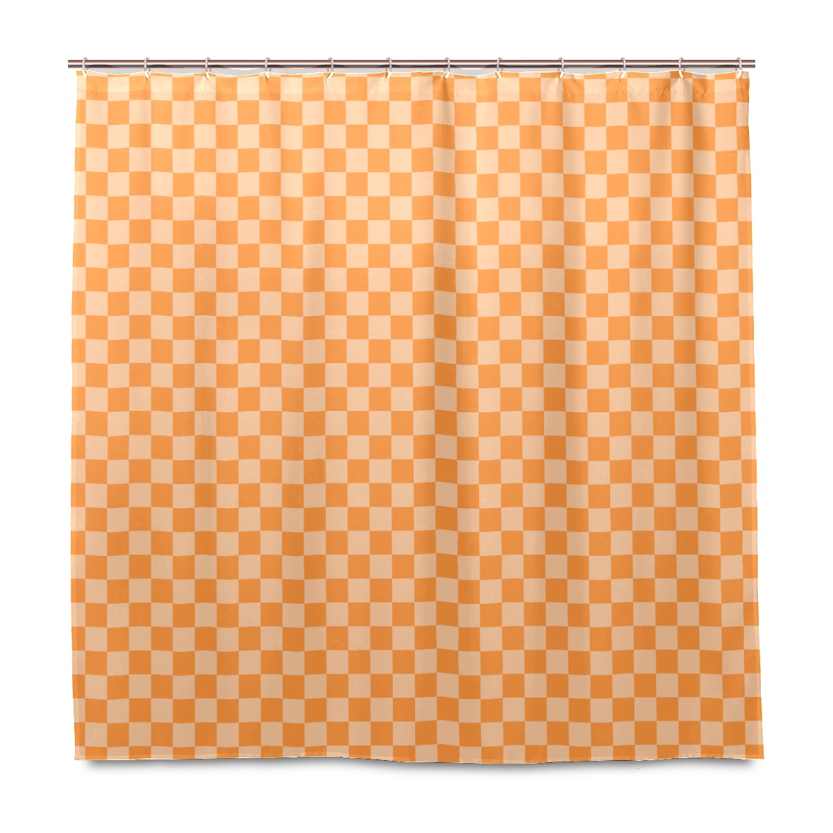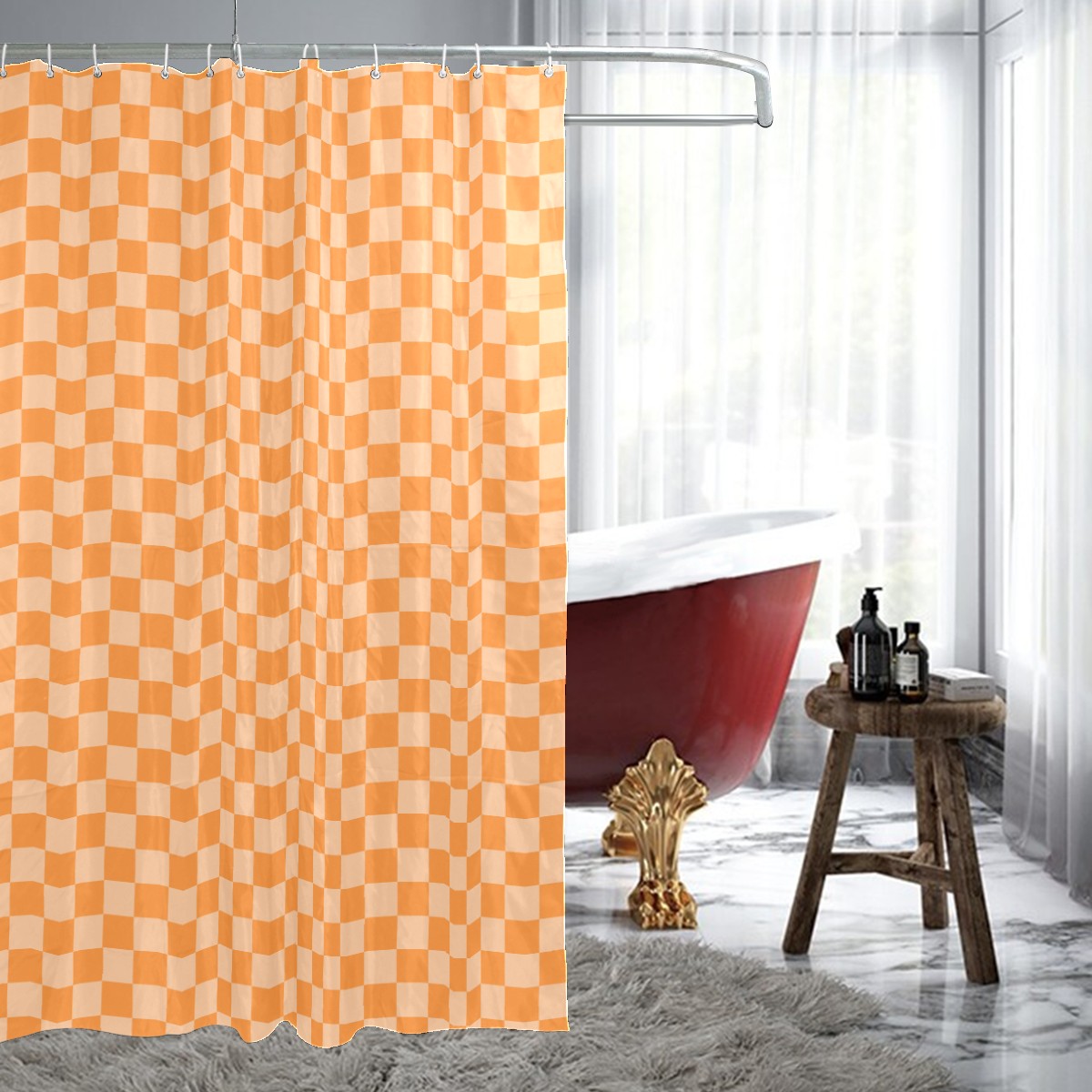 Shower Curtains for Bathroom Retro Orange White Plaid Waterproof Polyester Fabric 60 x 72 inches Decor Bathroom Curtains for Girls Boys with 12 Hooks