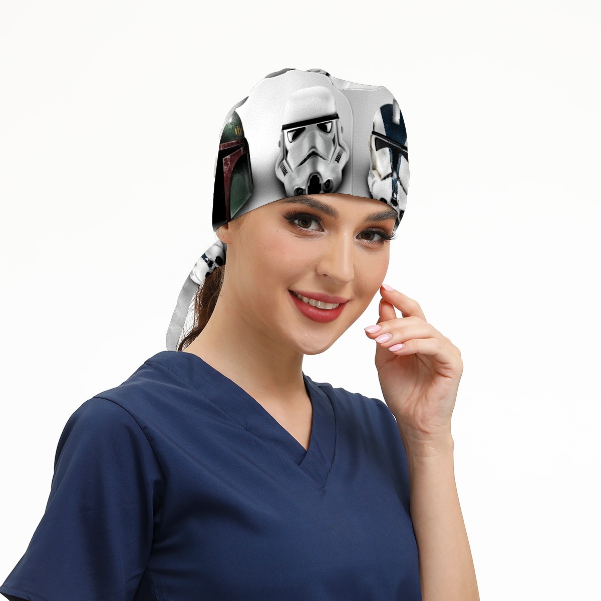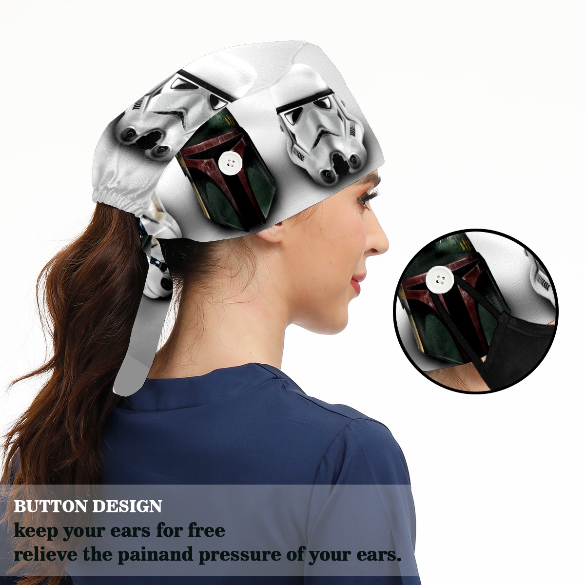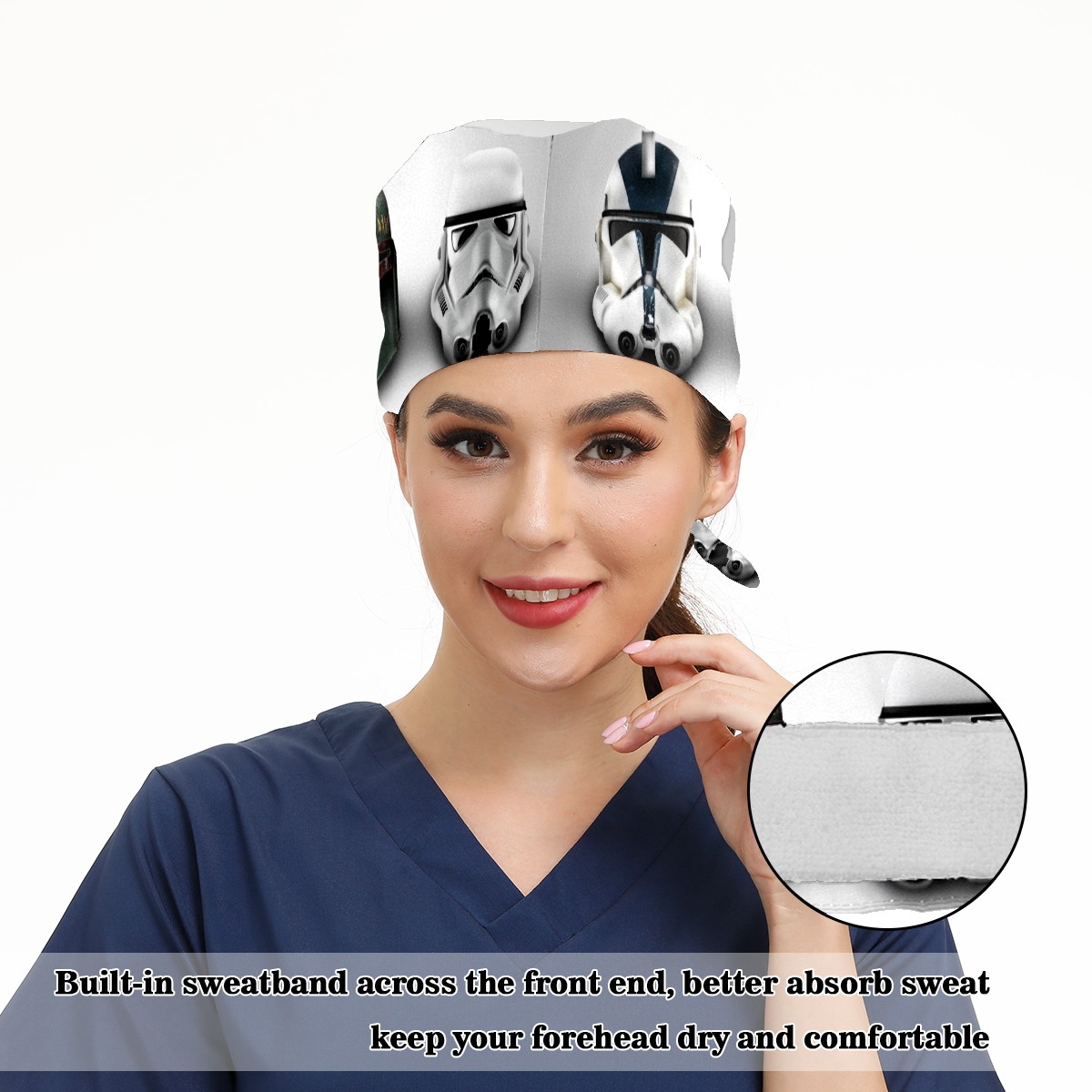 Fashion Working Cap Button and Sweatband Adjustable Elastic Star Wars Darth Vader Head Cover Hair Tie Back Work Hats for Women Men