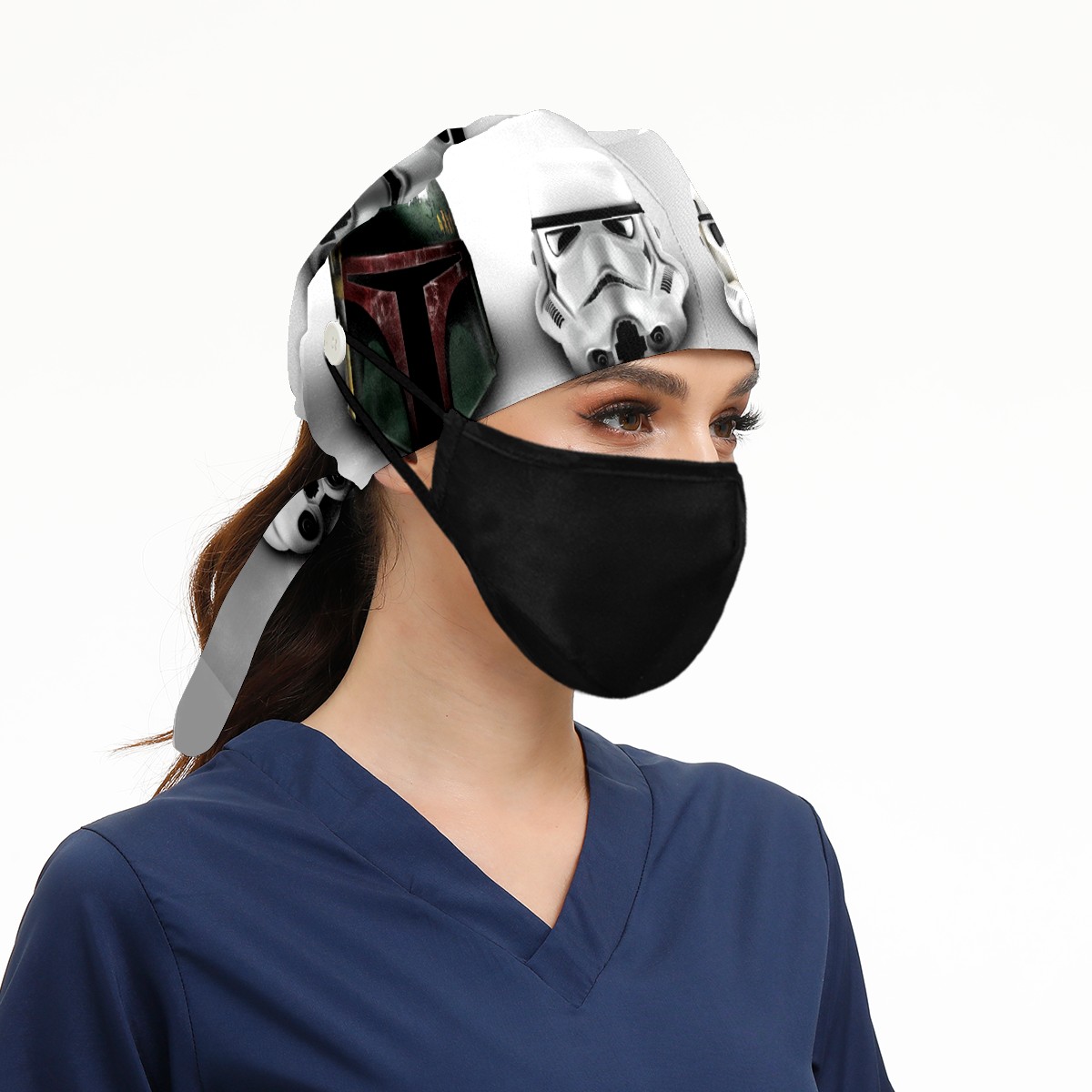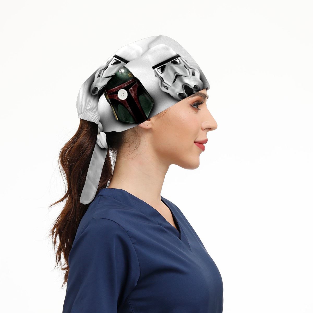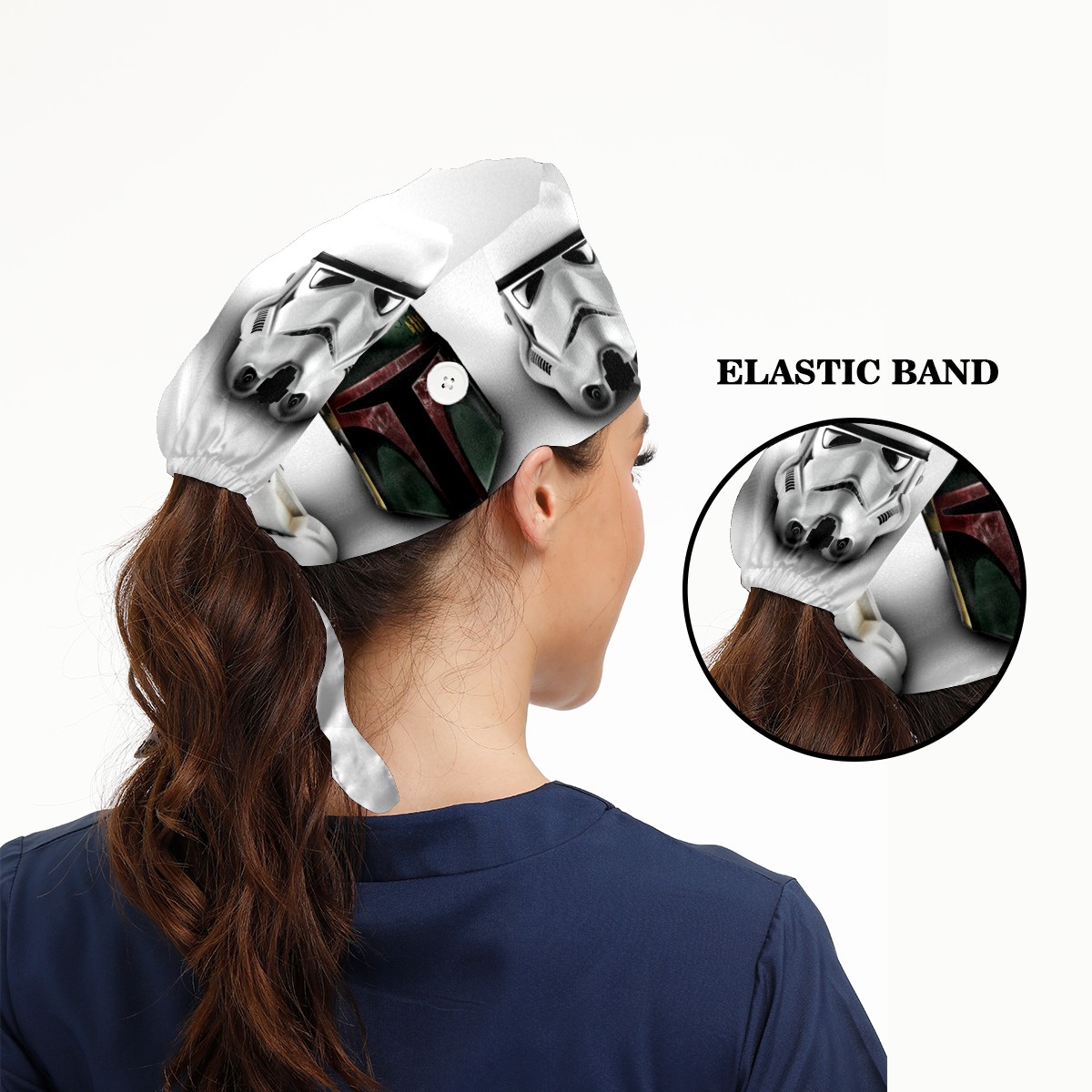 Fashion Working Cap Button and Sweatband Adjustable Elastic Star Wars Darth Vader Head Cover Hair Tie Back Work Hats for Women Men