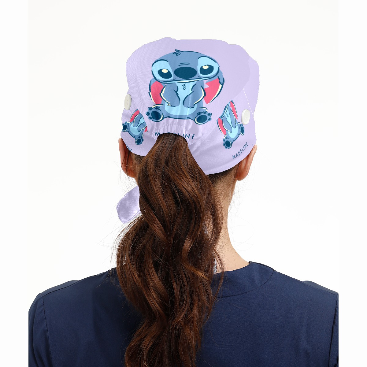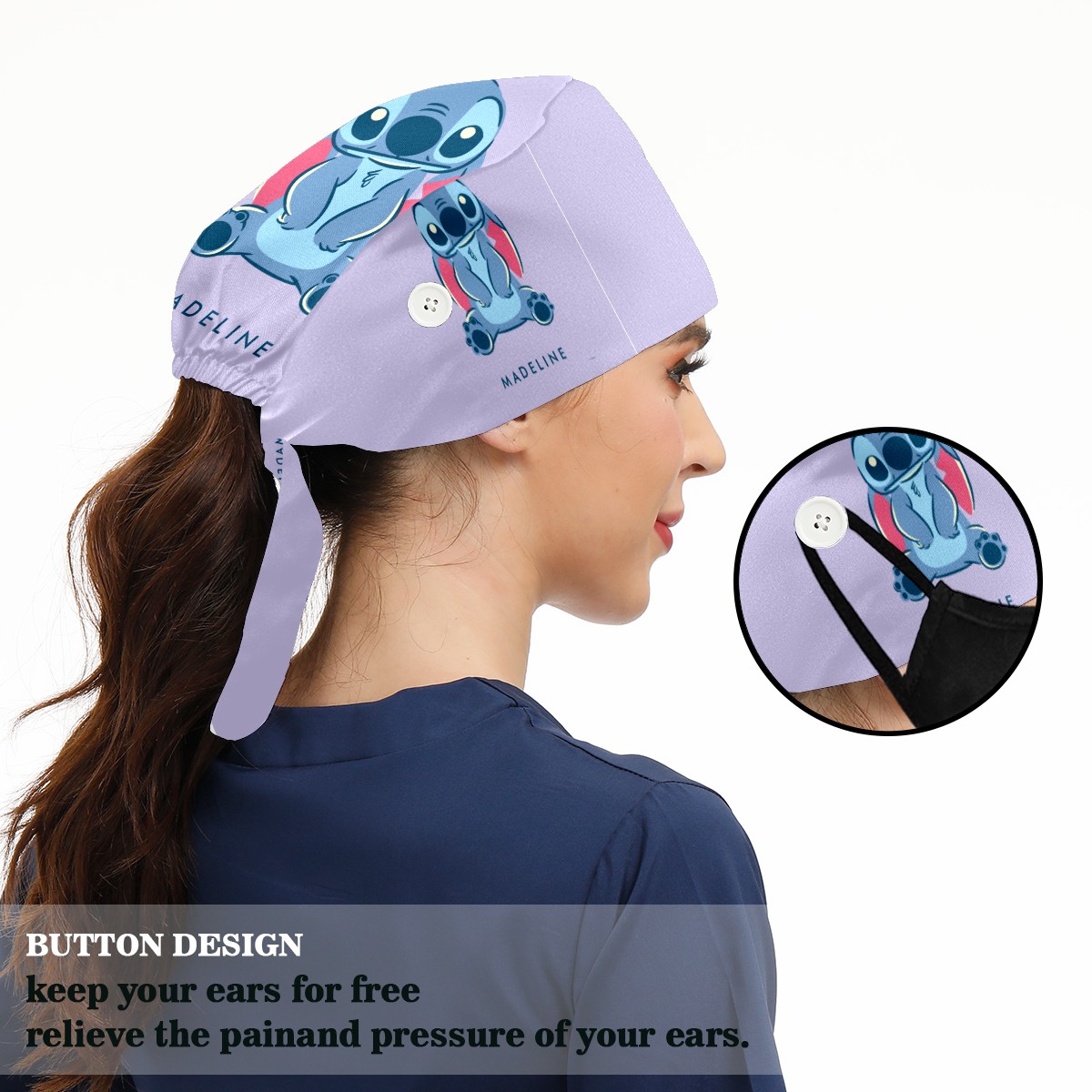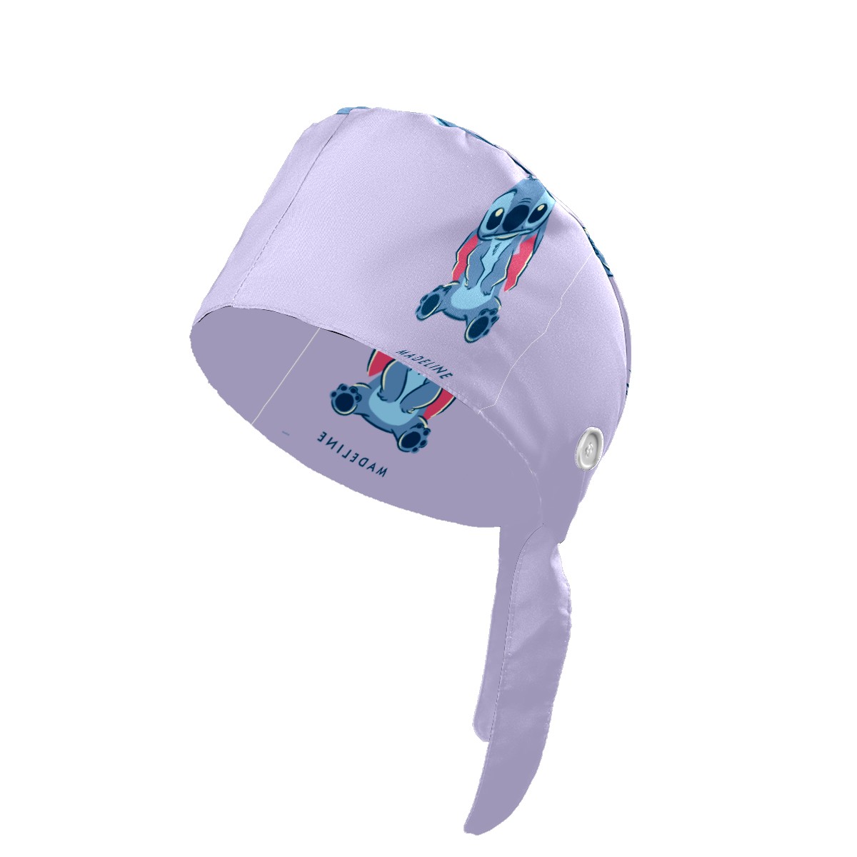 Fashion Working Cap Button and Sweatband Adjustable Elastic Lilo Stich Stitch Purple Background Head Cover Hair Tie Back Work Hats for Women Men