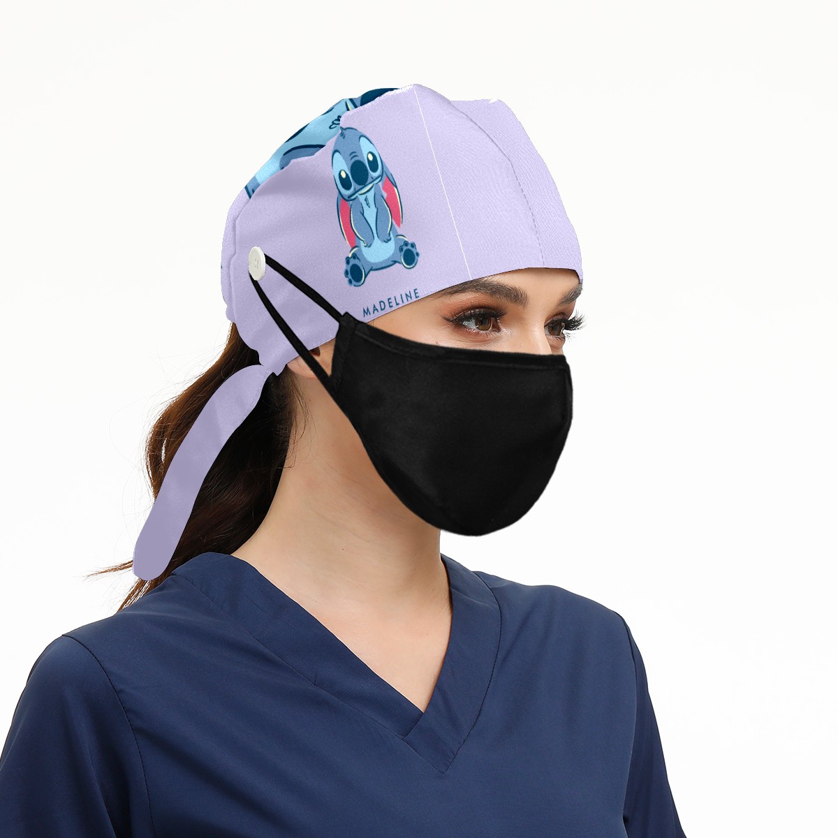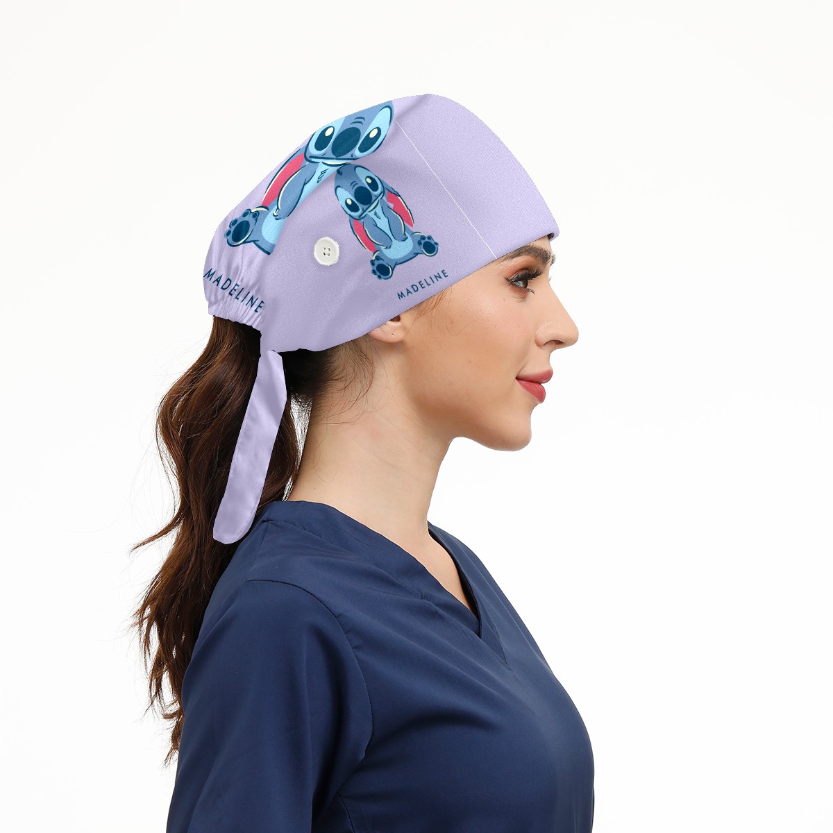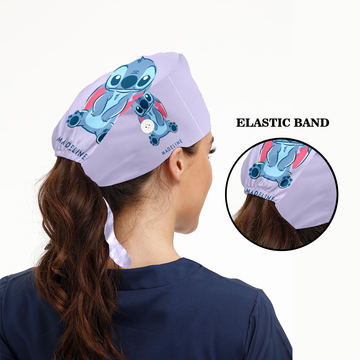 Fashion Working Cap Button and Sweatband Adjustable Elastic Lilo Stich Stitch Purple Background Head Cover Hair Tie Back Work Hats for Women Men