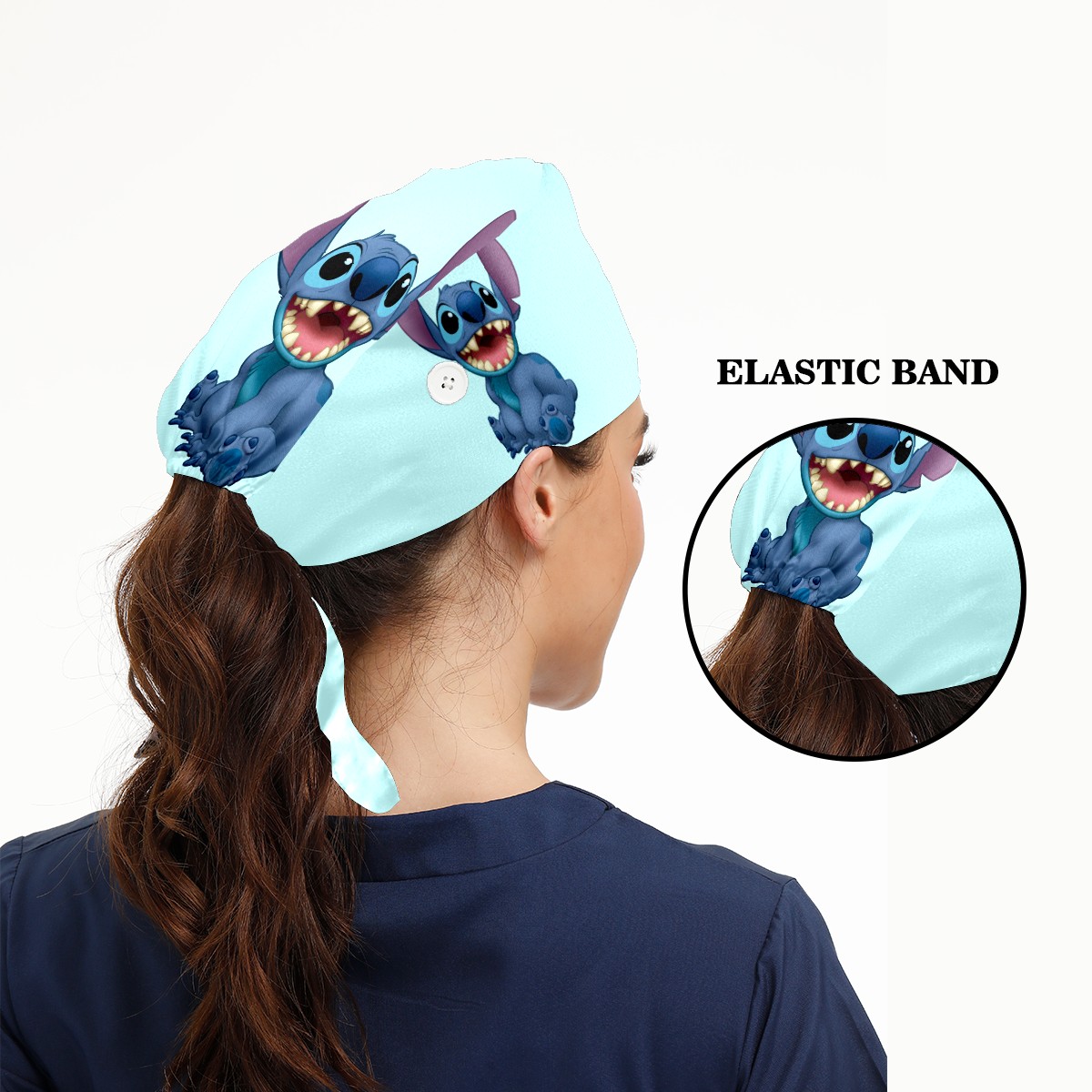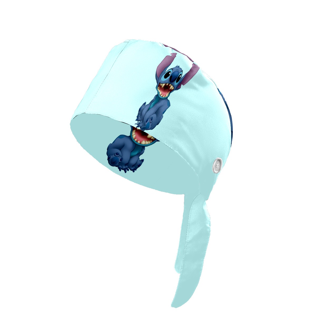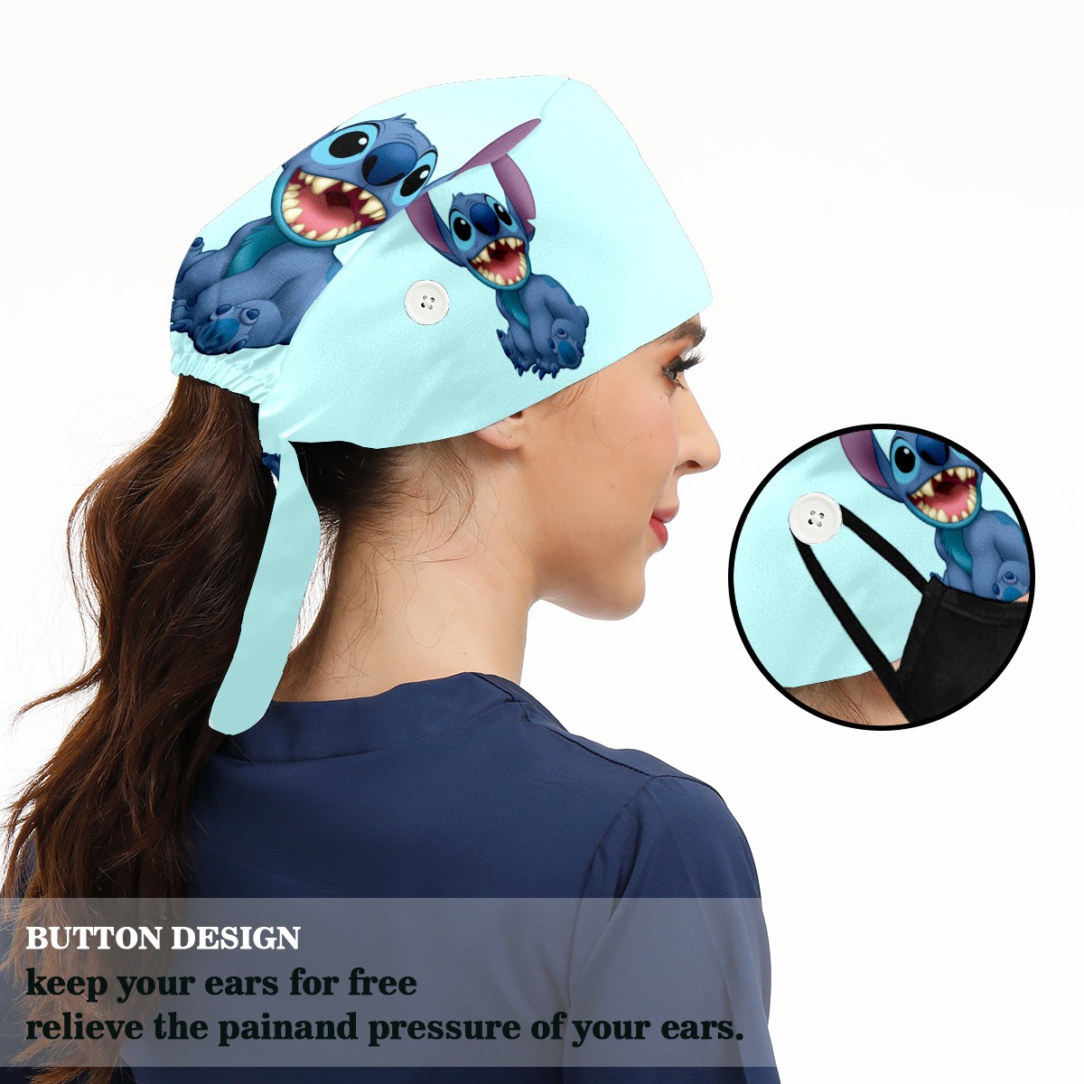 Fashion Working Cap Button and Sweatband Adjustable Elastic Lilo Stitch Head Cover Hair Tie Back Work Hats for Women Men