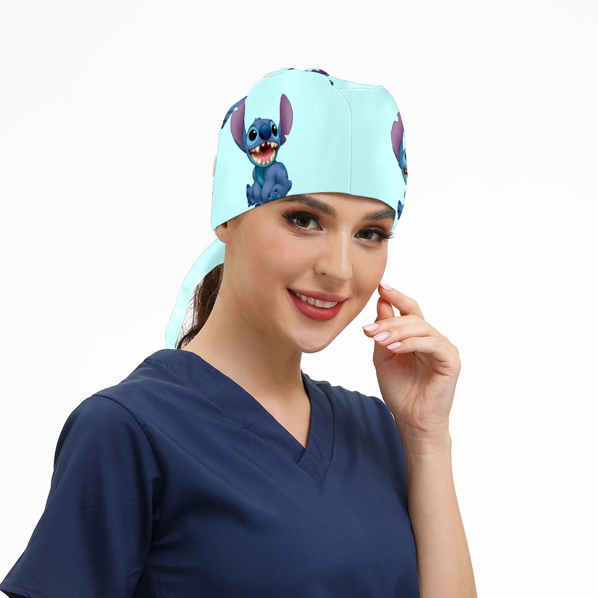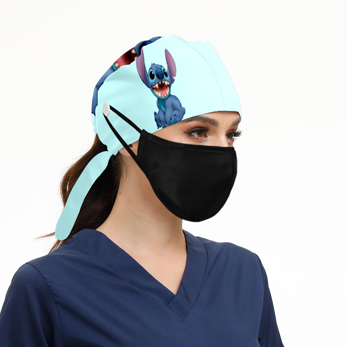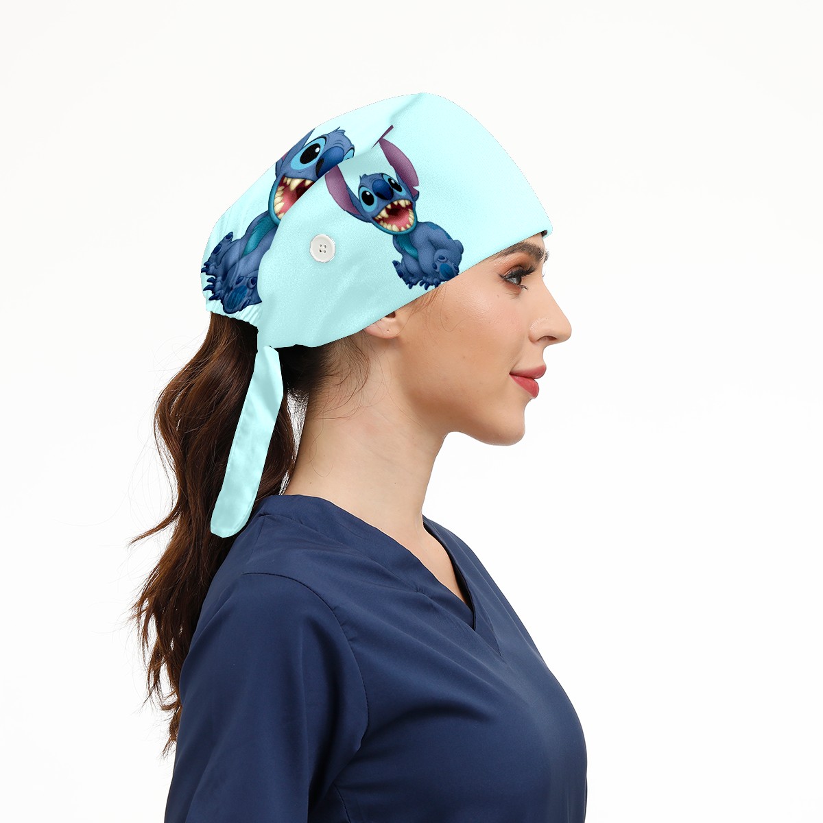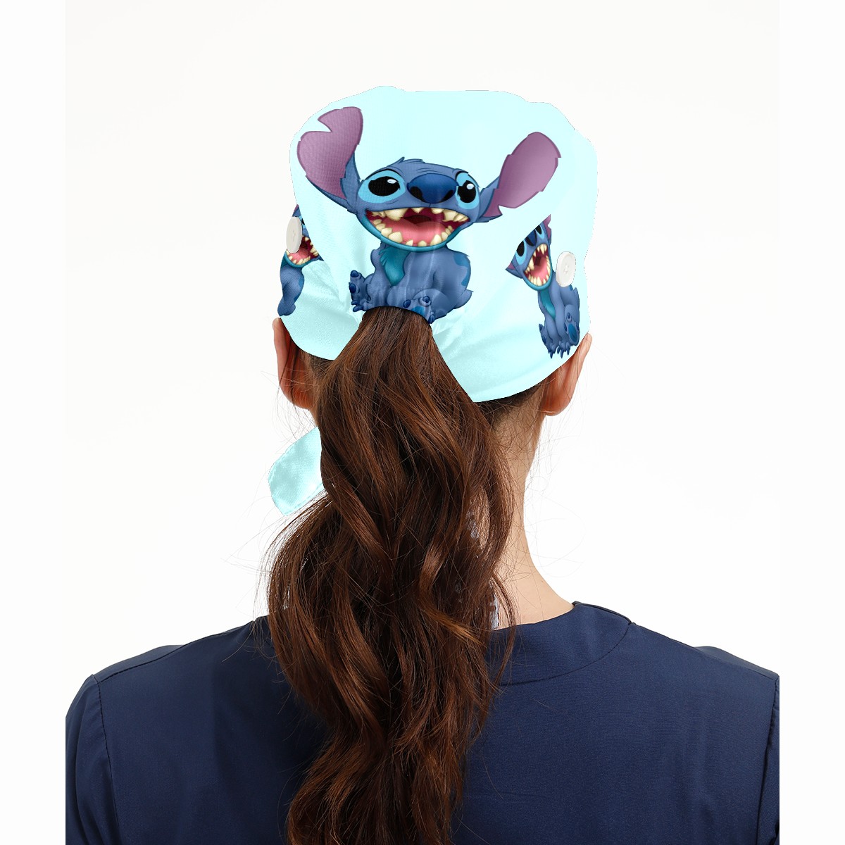 Fashion Working Cap Button and Sweatband Adjustable Elastic Lilo Stitch Head Cover Hair Tie Back Work Hats for Women Men