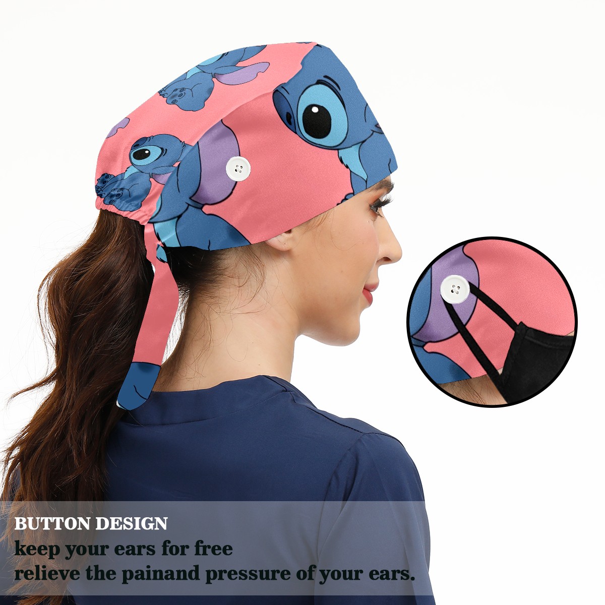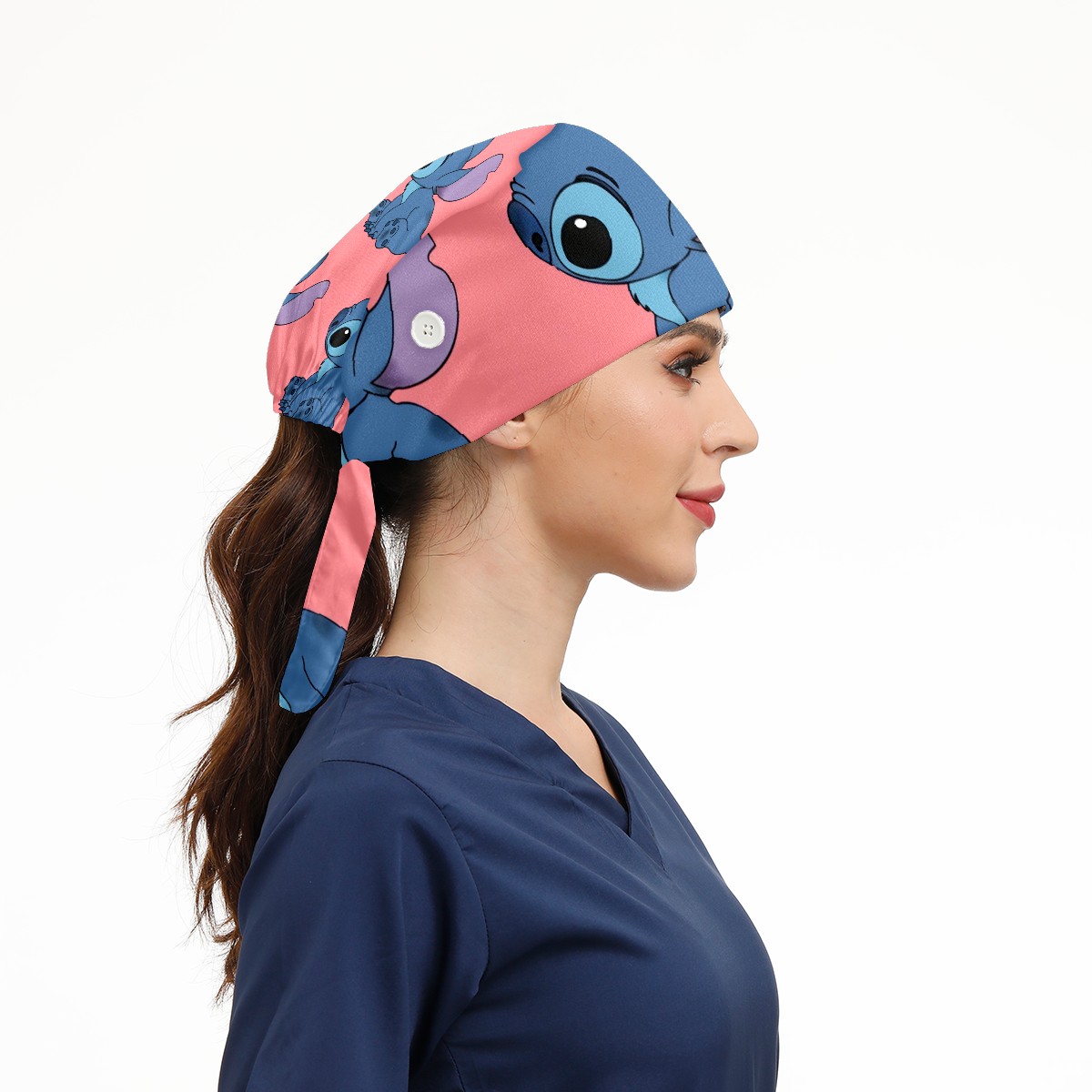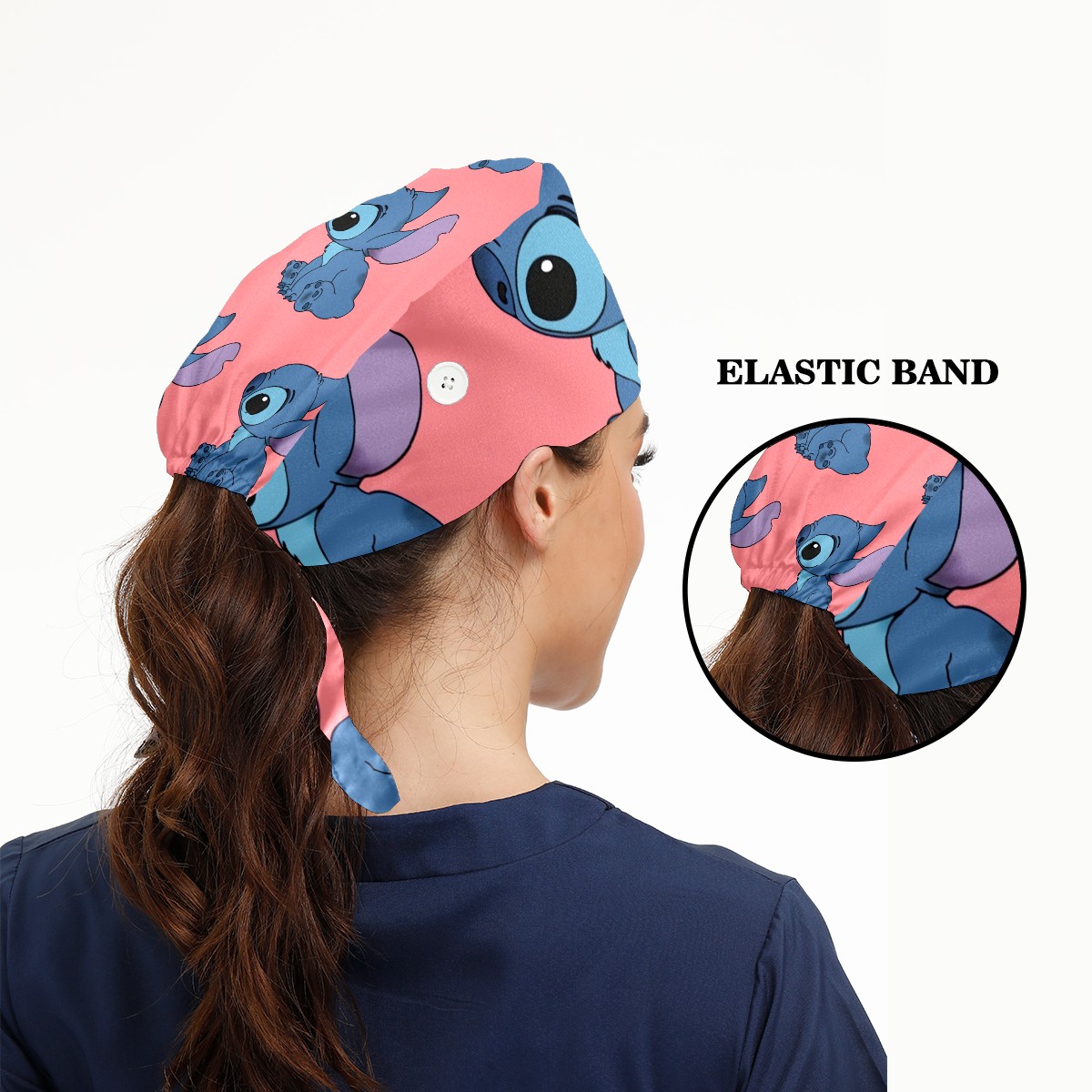 Fashion Working Cap Button and Sweatband Adjustable Elastic Cute Blue Lilo Stitch Head Cover Hair Tie Back Work Hats for Women Men