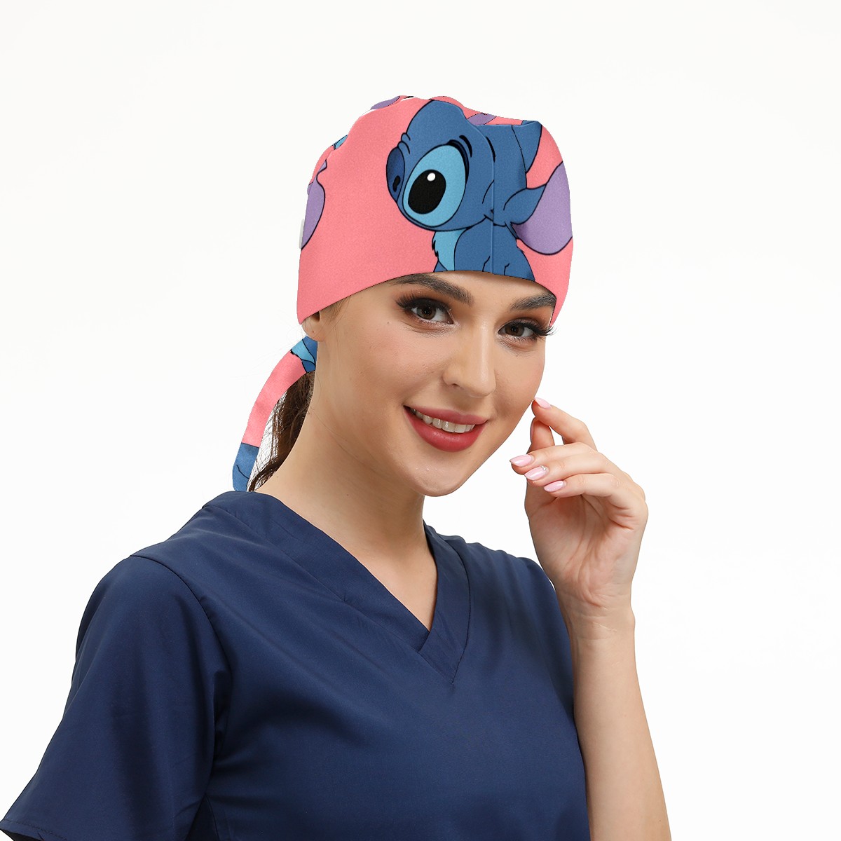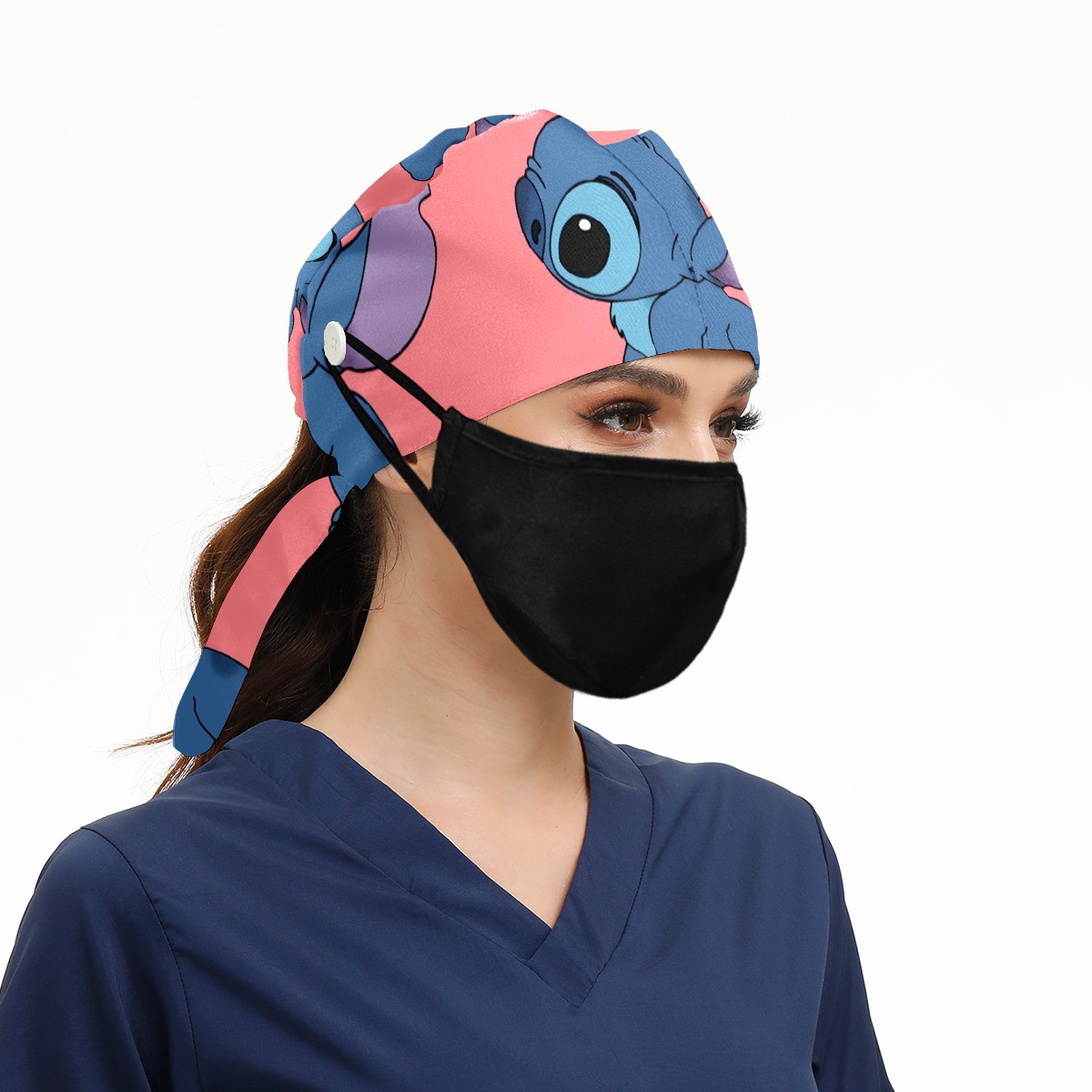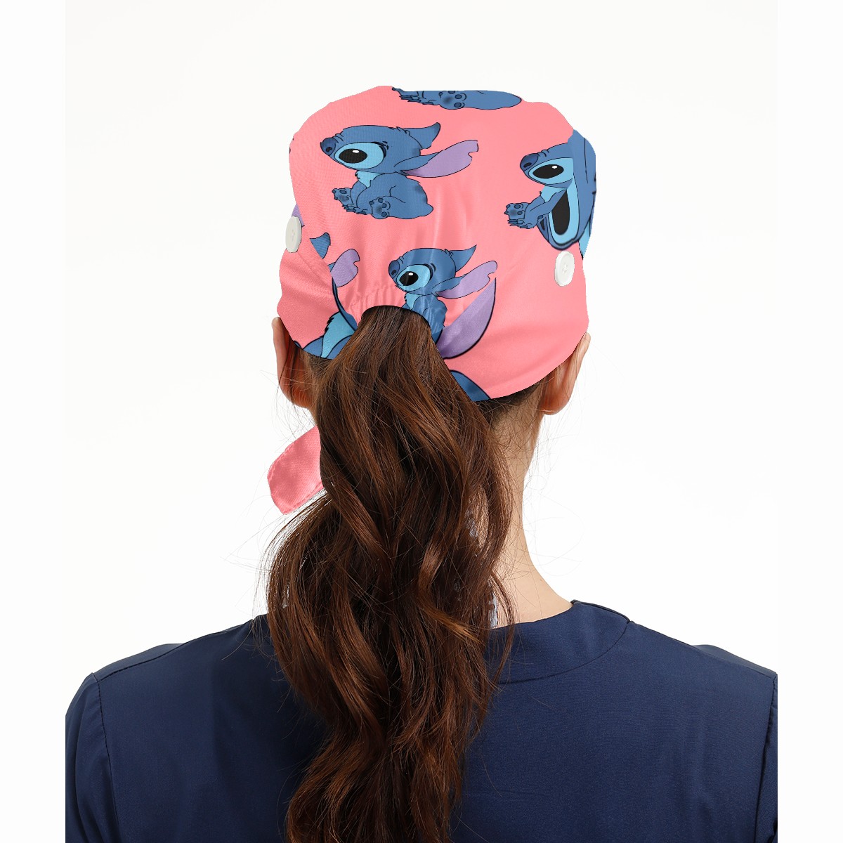 Fashion Working Cap Button and Sweatband Adjustable Elastic Cute Blue Lilo Stitch Head Cover Hair Tie Back Work Hats for Women Men