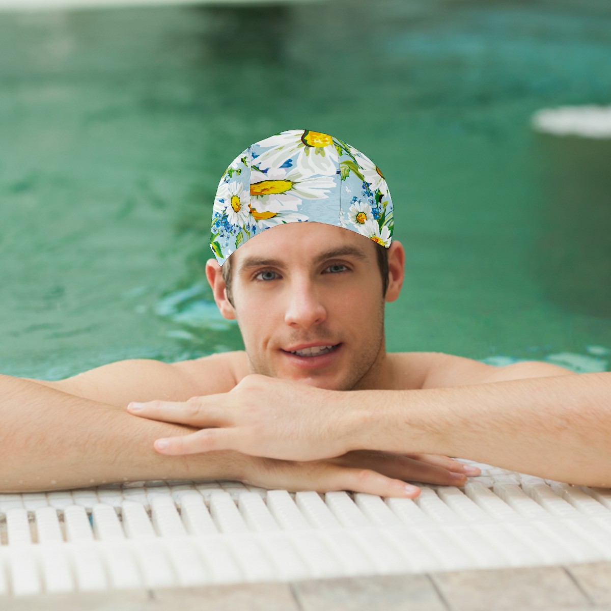 Swim Caps Watercolor Daisy Flower Pattern Swimming Cap Hat Bathing Shower Hair Cover for Adult Men Women Girls Boys