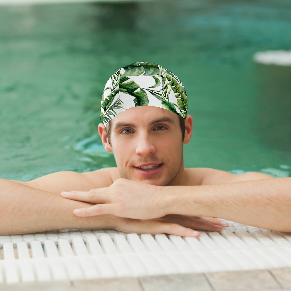 Swim Caps Retro Green Palm Tropical Swimming Cap Hat Bathing Shower Hair Cover for Adult Men Women Girls Boys
