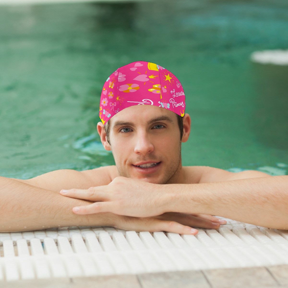 Swim Caps Princess Crown Heart Love Stars Pink Pattern Swimming Cap Hat Bathing Shower Hair Cover for Adult Men Women Girls Boys