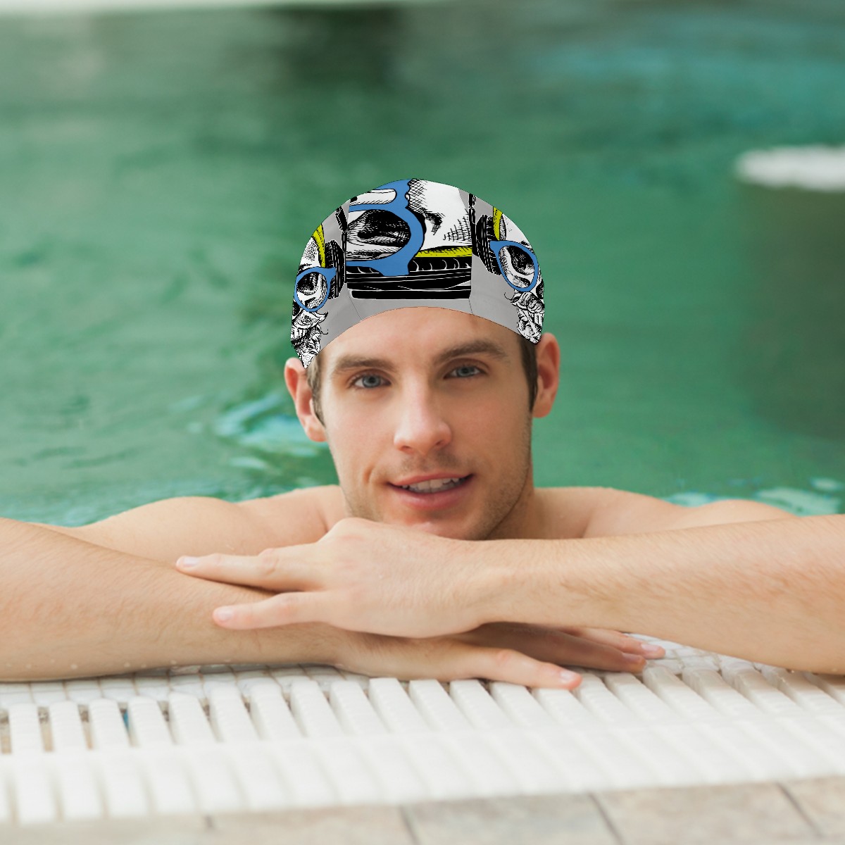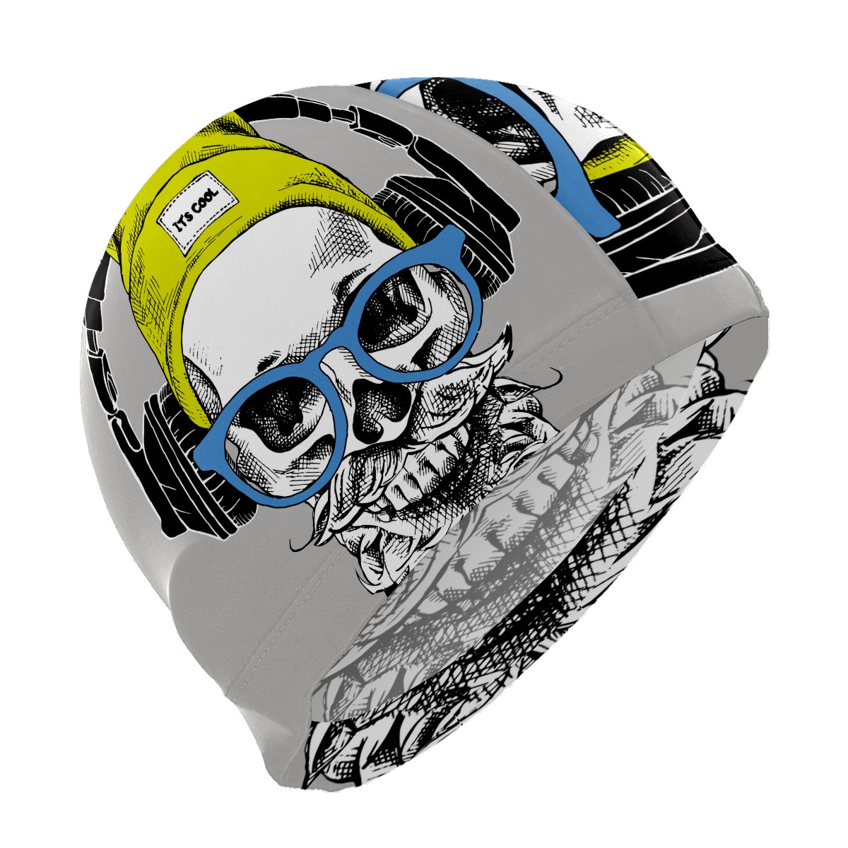 Swim Caps Cool Skull With Headphone Swimming Cap Hat Bathing Shower Hair Cover for Adult Men Women Girls Boys